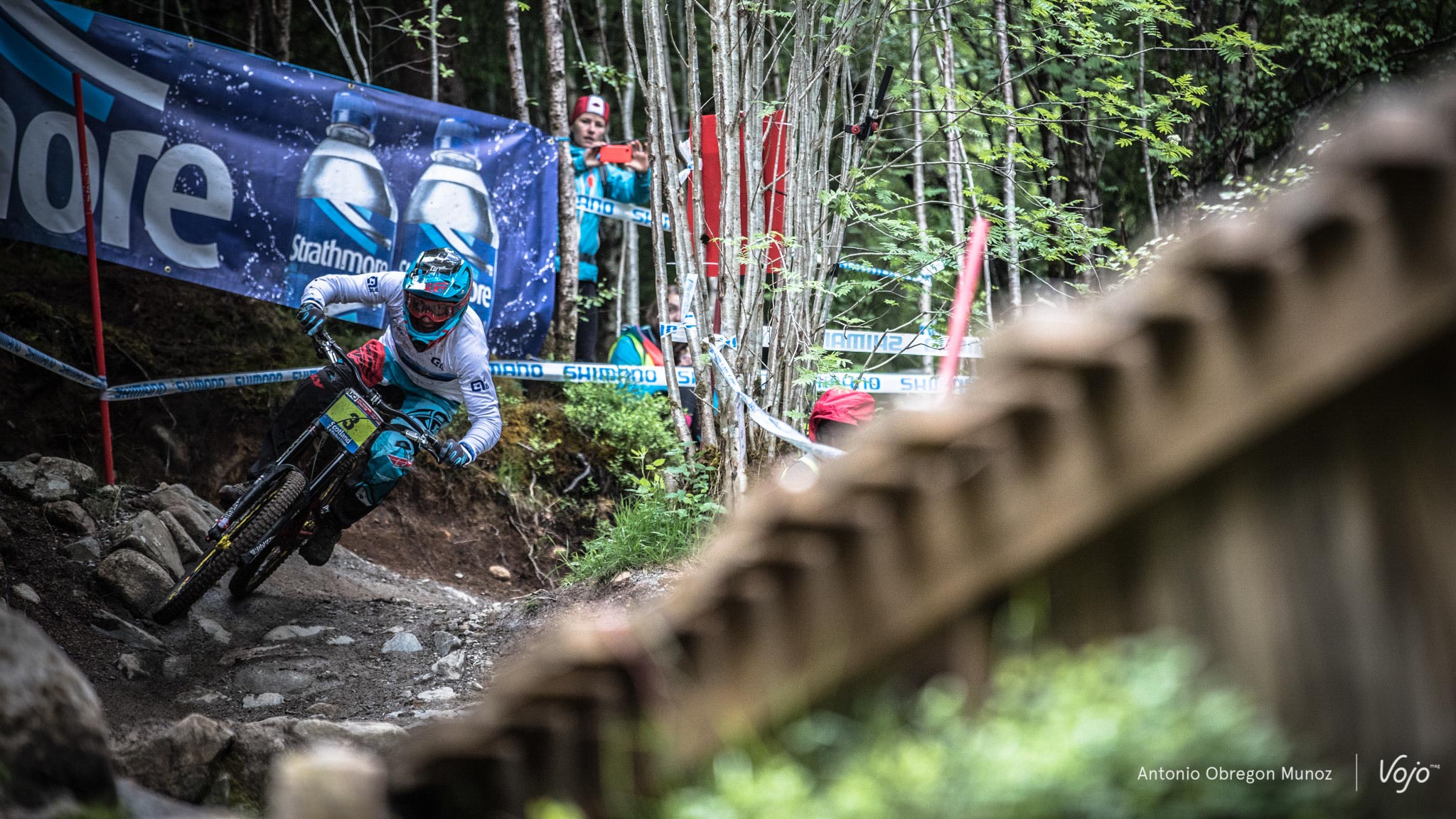 Un point clé du tracé était probablement le bourbier en bas du tracé. Chaque année, une section dans les bois vient casser la vitesse des pilotes. Pour l’édition 2017, cette section a été très controversée et Tahnée Seagrave n’a pas manqué de le faire remarquer aux organisateurs qui sont restés de marbre face aux sollicitations des pilotes tout au long des entraînements. Même les meilleurs pilotes du top 20 n’arrivaient pas à traverser cette section qui n’avait aucun intérêt sur le plan sportif. Loïc Bruni et Danny Hart font partie de ceux qui se sont fait piéger par le bois.