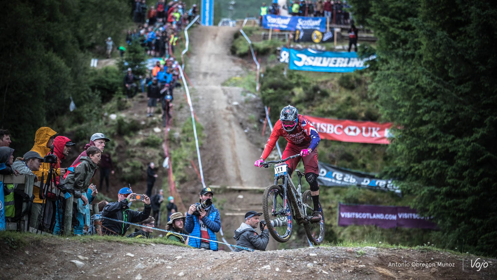 Piste emblématique du tracé de coupe du Monde, la descente de Fort William est un passage obligé pour tous les descendeurs. Longue, physique, technique et rapide, la piste a connu des aménagements cette année et à vu triompher Greg Minnaar et Tracey Hannah. Retour en images sur un dimanche de finale :