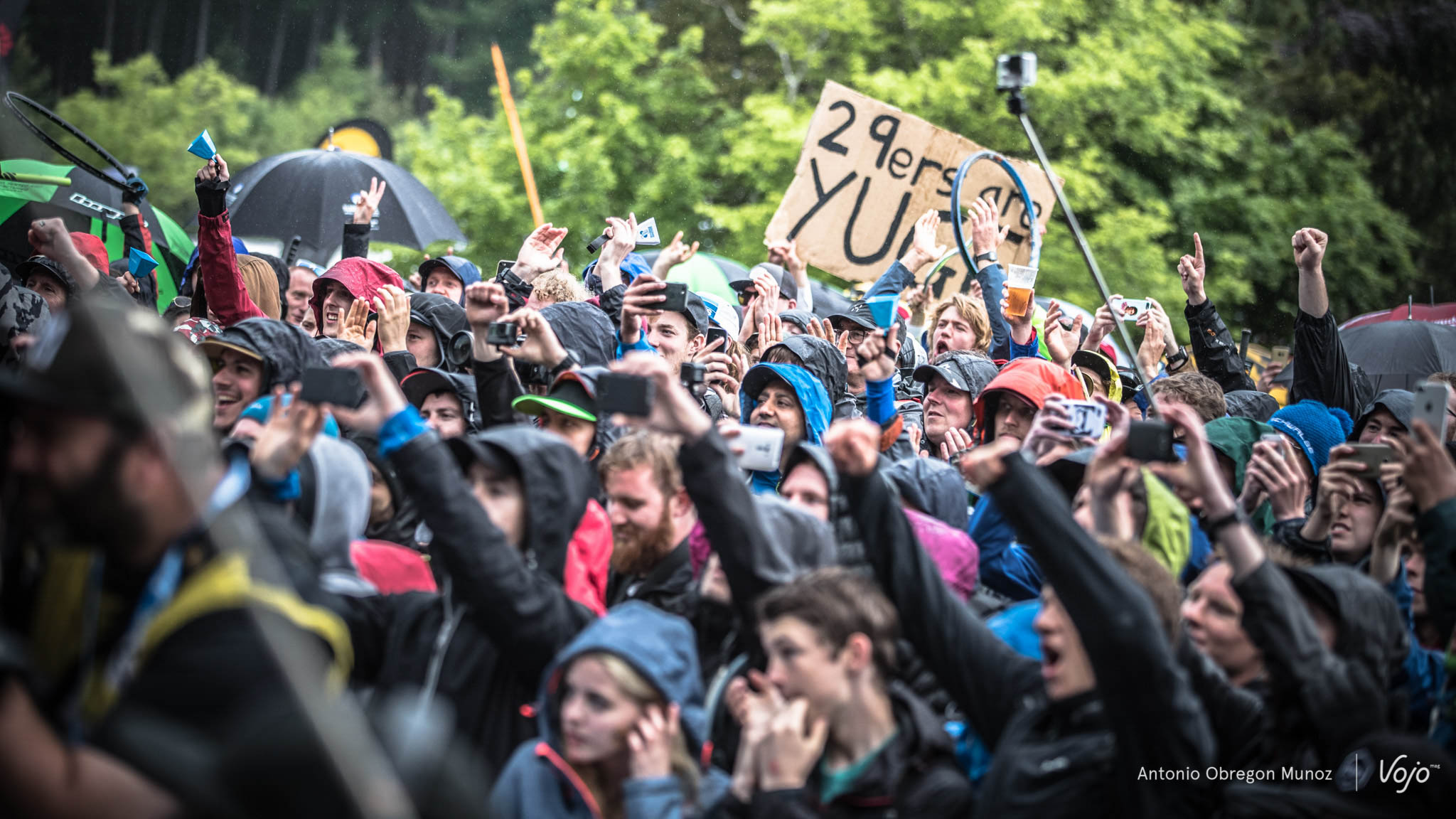La réponse tombe rapidement, non ! Aaron Gwin roule vite et passe devant. Juste avant que la pluie commence à tomber. Tout le monde a en tête la course de Lourdes où les 15 derniers pilotes se sont fait piéger par la pluie, et personne ne voulait retrouver ce scénario.