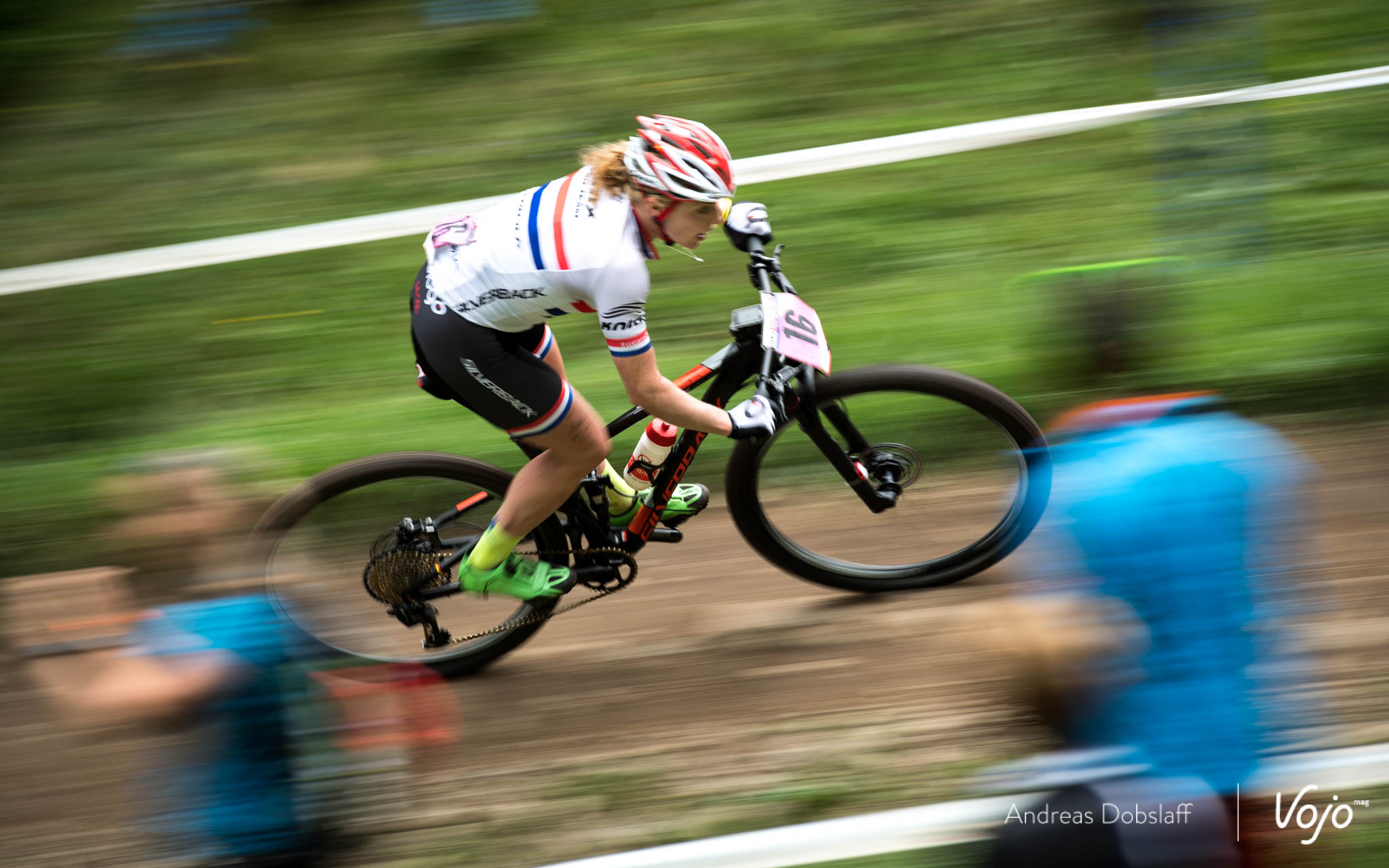 Il faut dire aussi que le parcours a été légèrement remanié pour offrir encore plus de visibilité au public et, pour l’avoir roulé en 2016 lors d’une présentation, on peut vous dire que c’est un parcours de pur vtt où les obstacles artificiels sont rares. Malgré quelques passerelles pour franchir des portions trop difficiles à aménager, la nouvelle mouture reste dans la même veine, entre rochers, humus et racines… et c’est tant mieux. Tiens, en passant, observez bien cette image : c’est la seule dont nous disposons avec Annika Langvad. Grippée, elle a préféré renoncer.