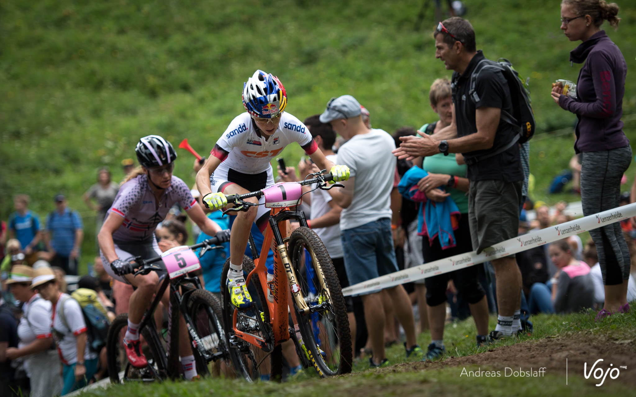 Non loin de là, sa coéquipière Maja Wloszczowska (dont nous mettons toujours un bon moment à orthographier correctement le nom même après toutes ces années) fait une nouvelle fois preuve d’une belle régularité aux avant-postes, ce qui lui permet de pointer à la 2e place du général provisoire.