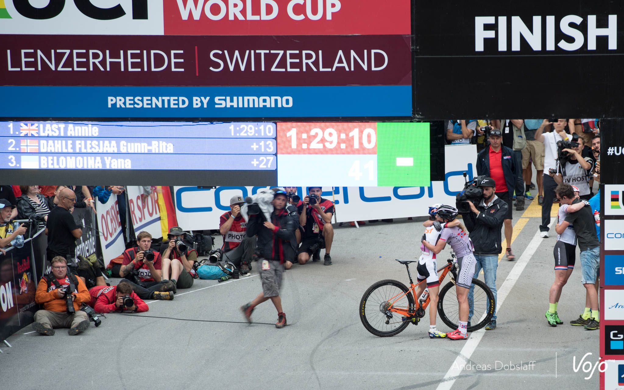 Devant un public très nombreux et sur un magnifique circuit légèrement remanié, la coupe du Monde de Lenzerheide, en Suisse, a réservé un spectacle nettement plus intense qu’à Vallnord une semaine plus tôt. Entre Annie Last vainqueur surprise mais ô combien méritée et un Nino Schurter qui, bien que victorieux, a été attaqué de toutes parts et jusque dans les derniers mètres par un grand Kulhavy, c’est sans conteste une des plus belles courses de l’année que nous venons de vivre. Et que nous vous proposons de revivre avec notre portfolio.