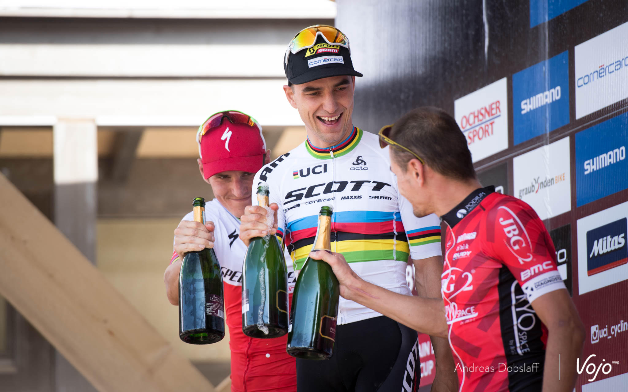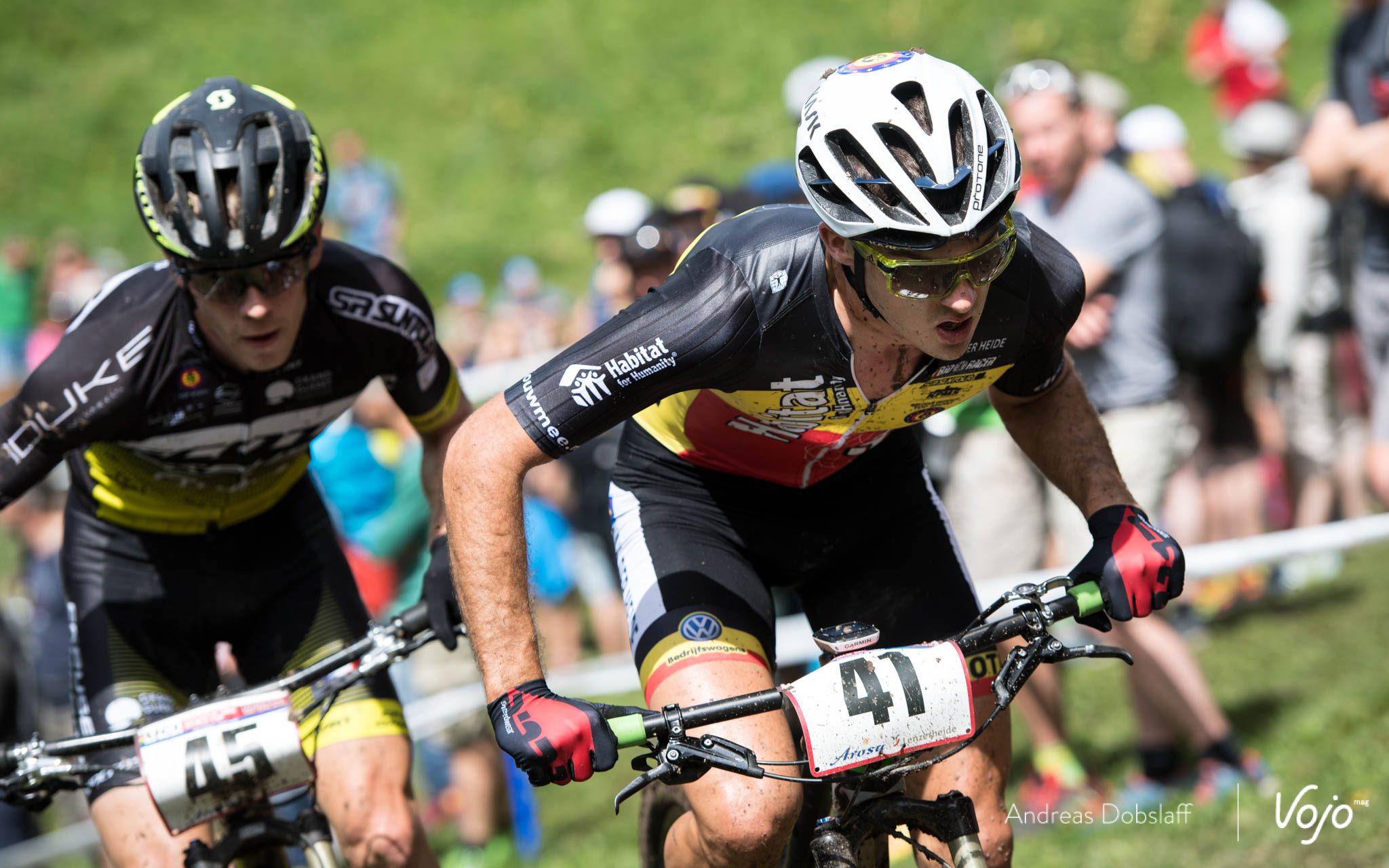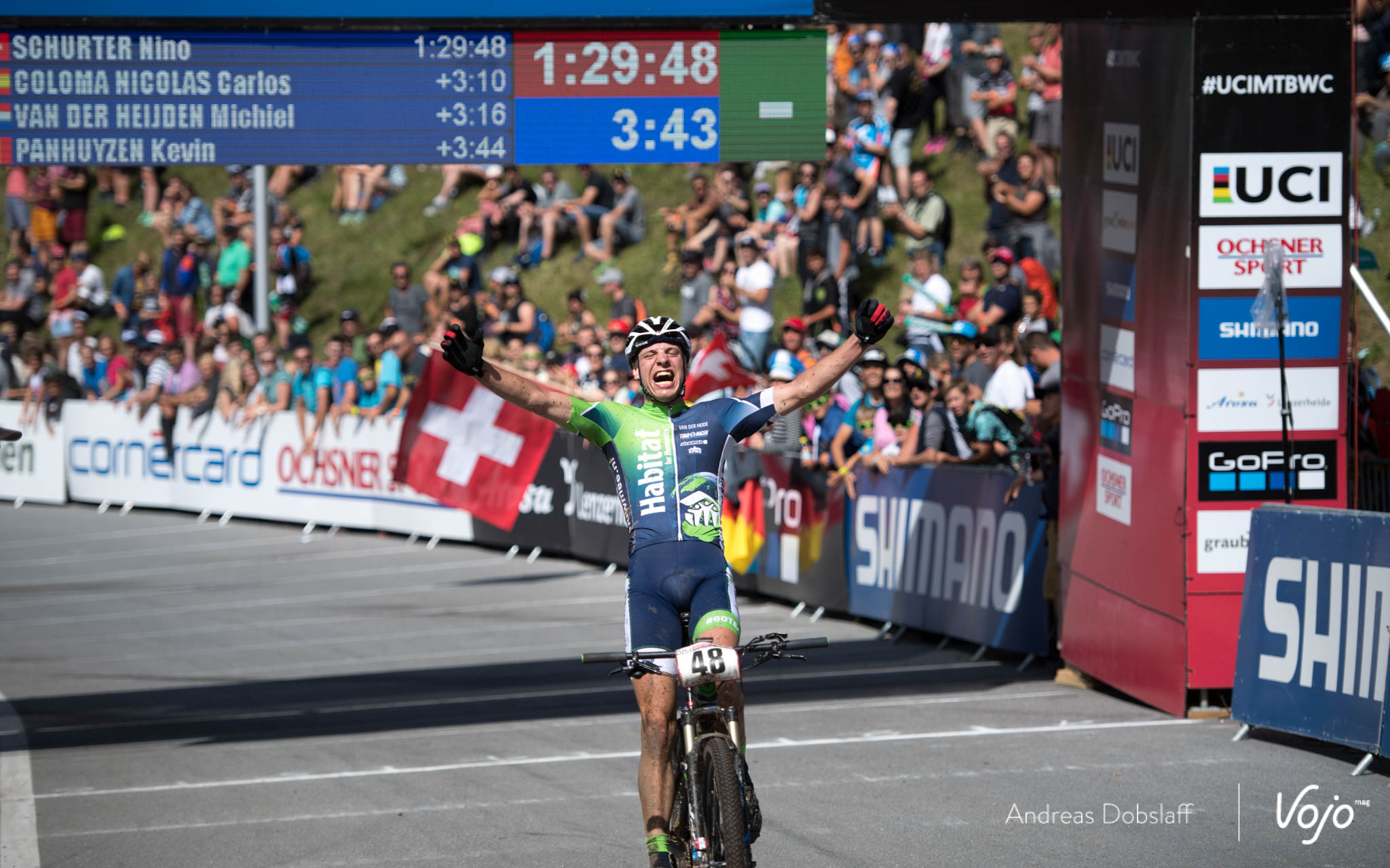 Prenant enfin la mesure du danger, Schurter en remet une couche et sprinte jusqu’à la ligne. « Oui, j’ai eu chaud ! J’ai mis du temps à me rendre compte que Jaro revenait si fort. Et quand il est comme cela, je sais que je dois me méfier », dit-il après la ligne en se souvenant sans doute vaguement d’une certaine course du côté de Londres en 2012.