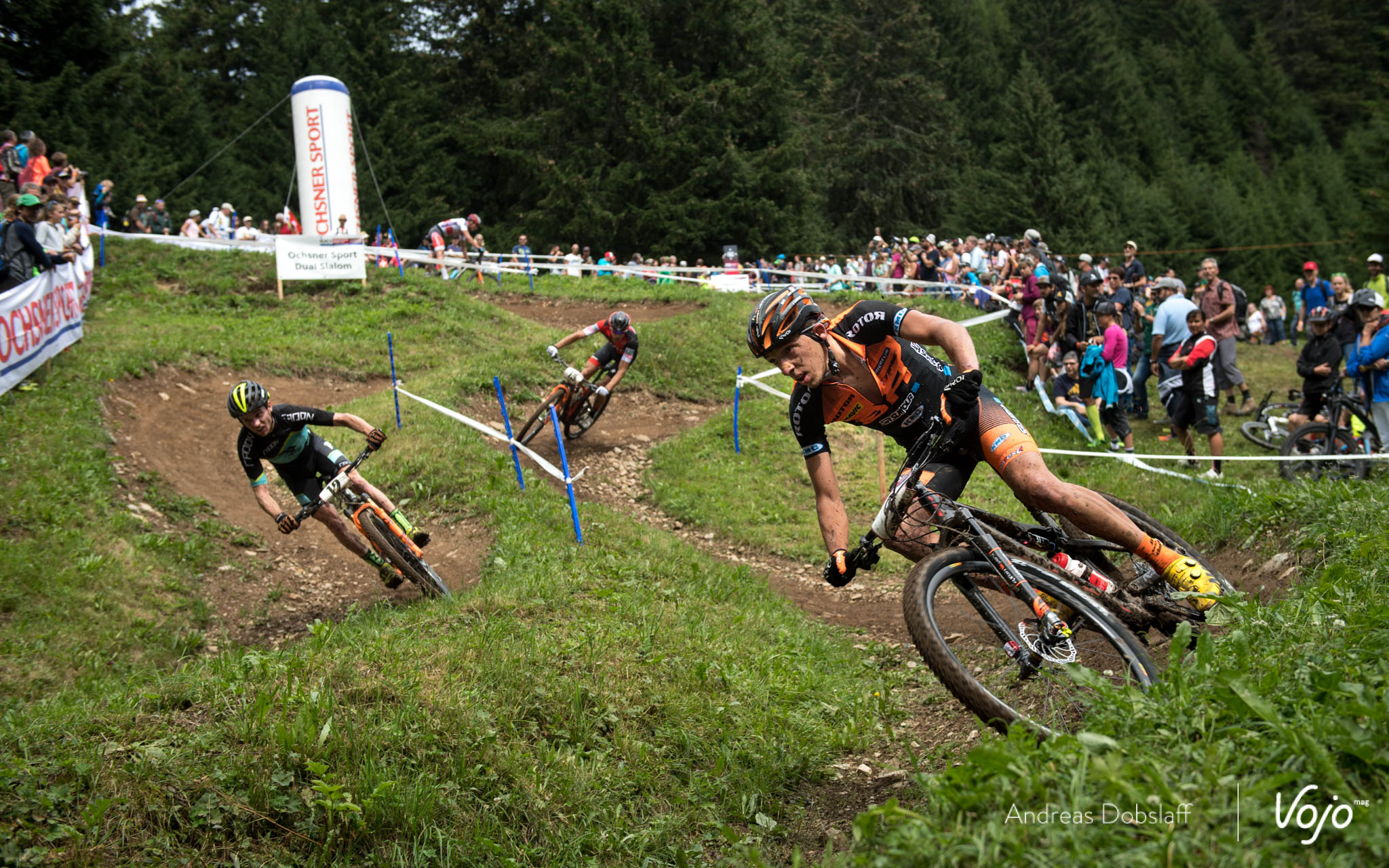 Finalement, la menace va venir de là où on ne l’attendait plus : Jaroslav Kulhavy ! Absent depuis deux courses, le géant tchèque en a fini avec ses problèmes de côtes (fracturées aux entraînements à Nove Mesto) et ses jambes peuvent enfin s’exprimer pleinement. A coup de records du tour, il croque ses adversaires comme s’il leur prenait un tour… et il remonte dangereusement sur Schurter !