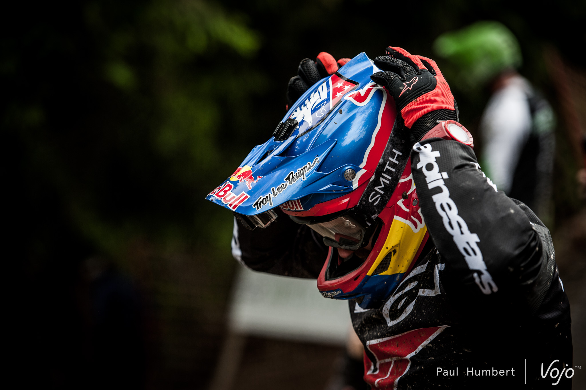 Fidèle à lui même, Aaron Gwin réalise des descentes très calculées et, à chaque arrêt, il passe un long moment à analyser ses lignes.