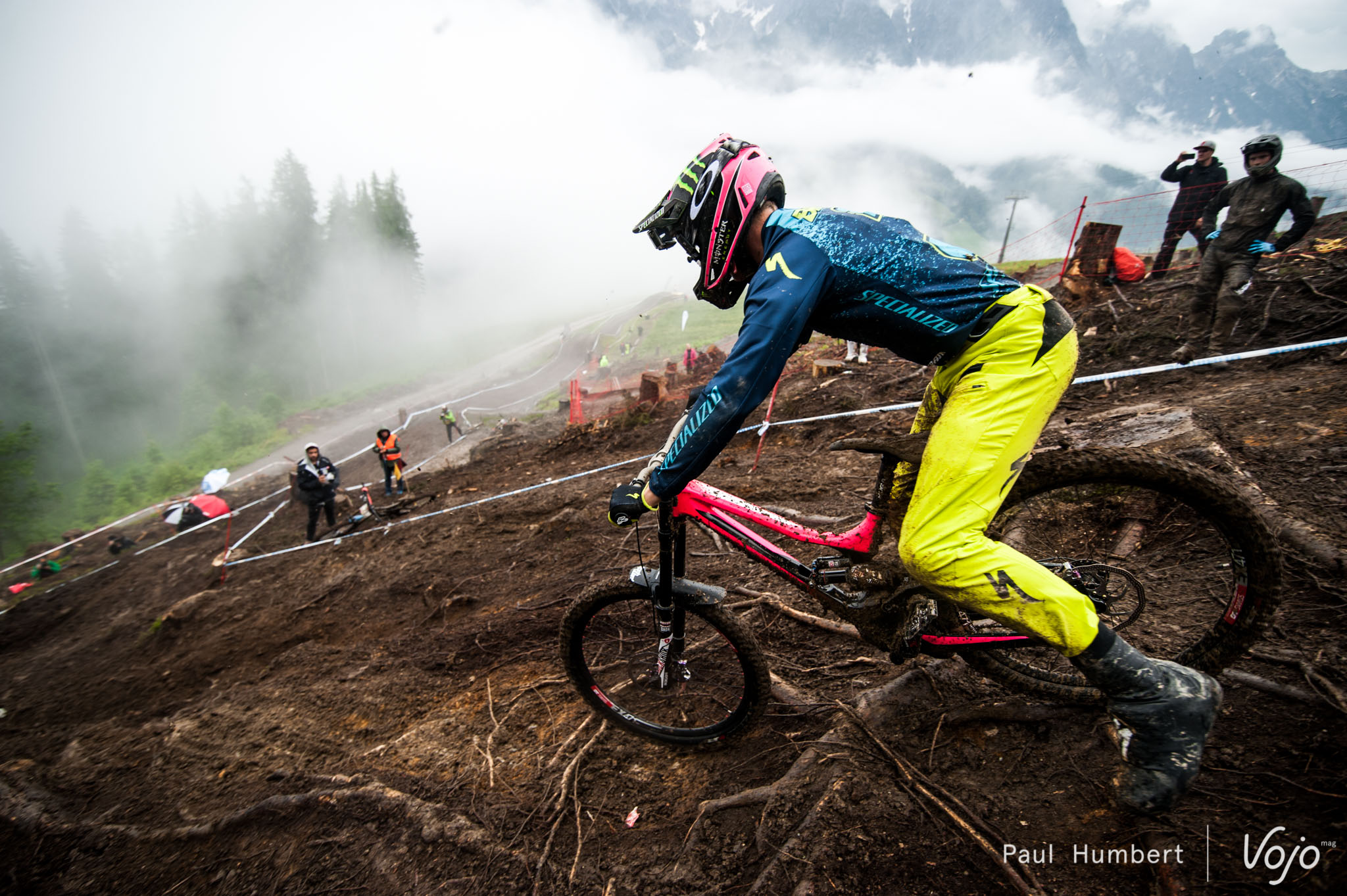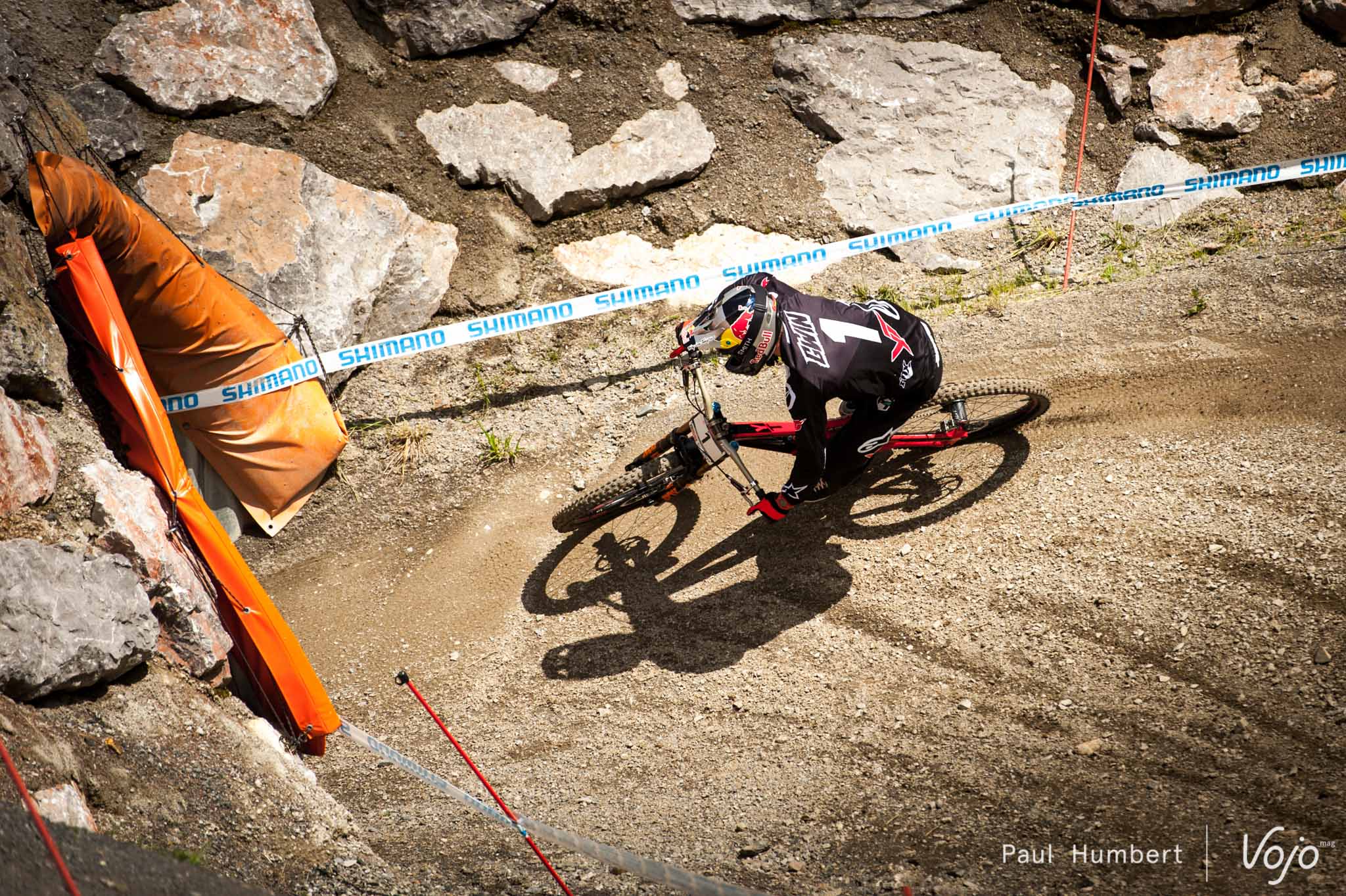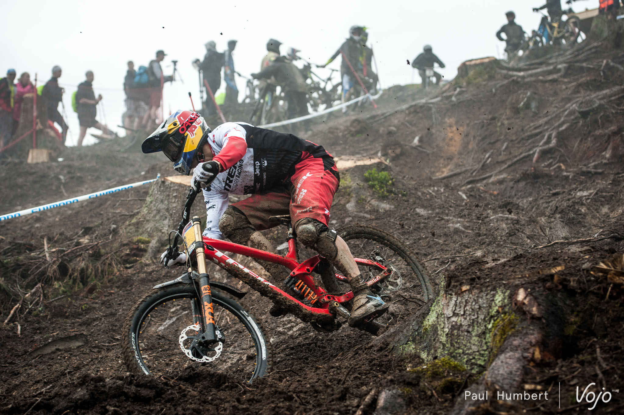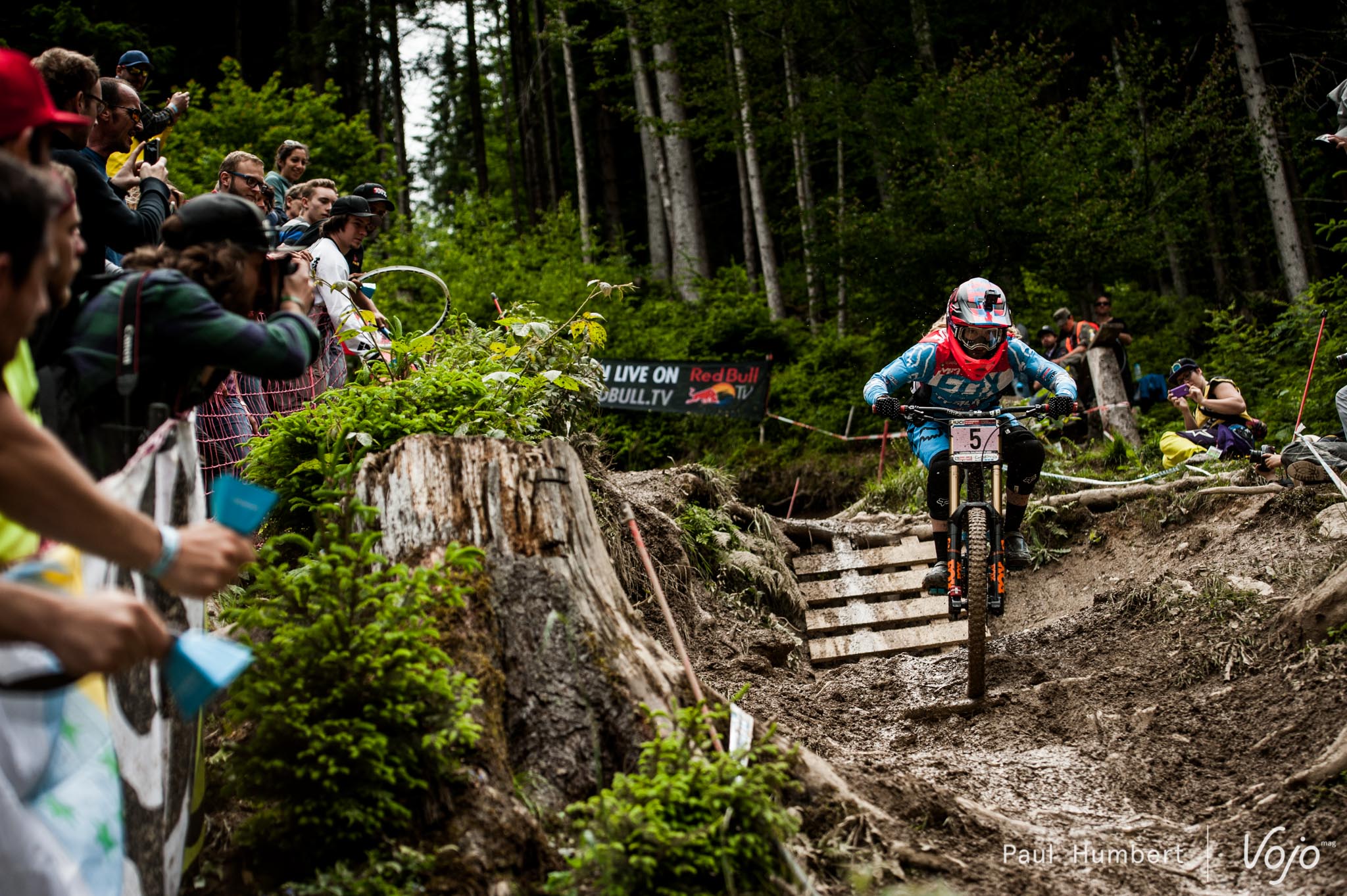 En début d’après-midi, les pilotes s’élancent pour les qualifications. Aaron Gwin et Rachel Atherton prennent facilement la tête.