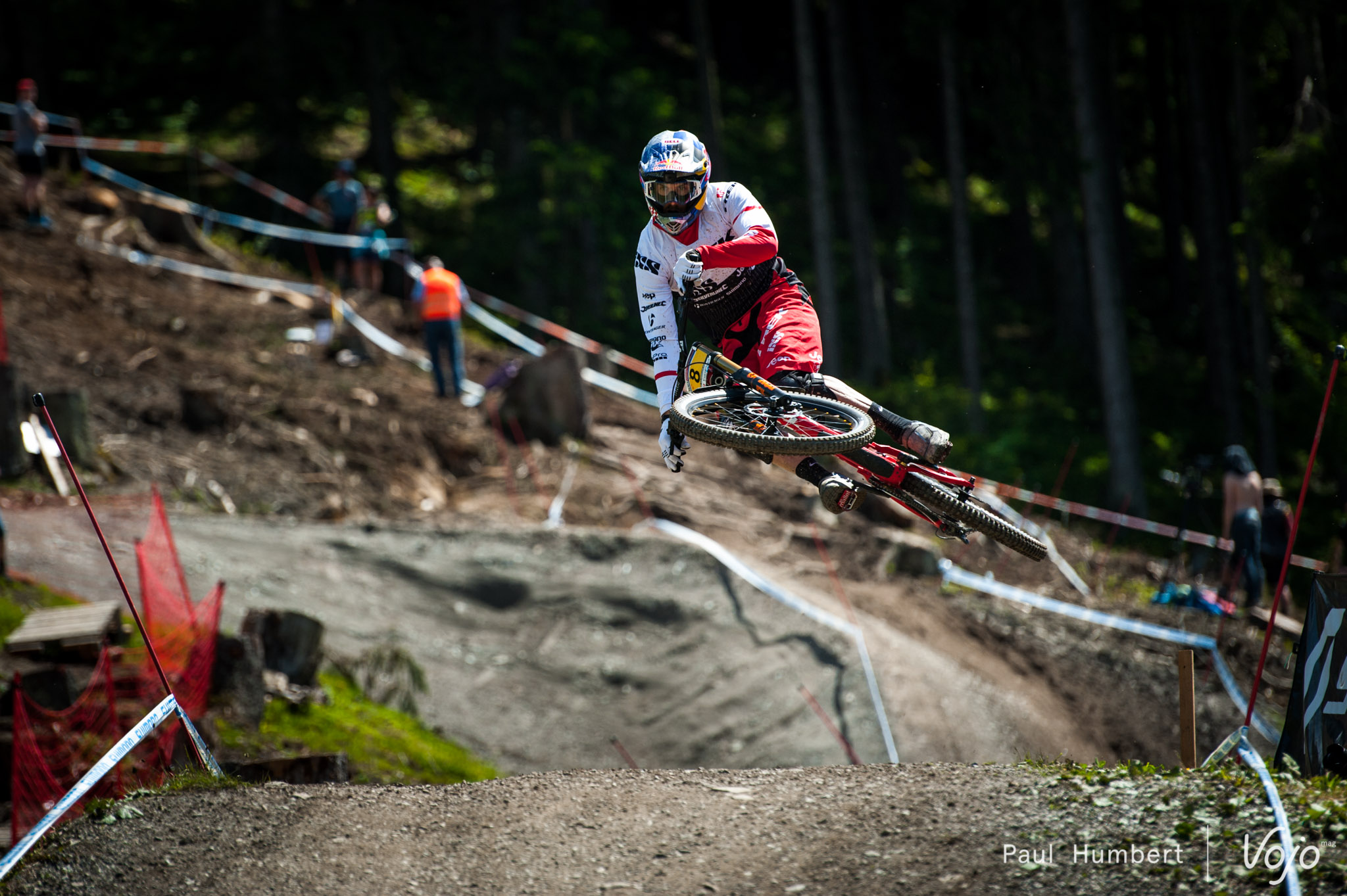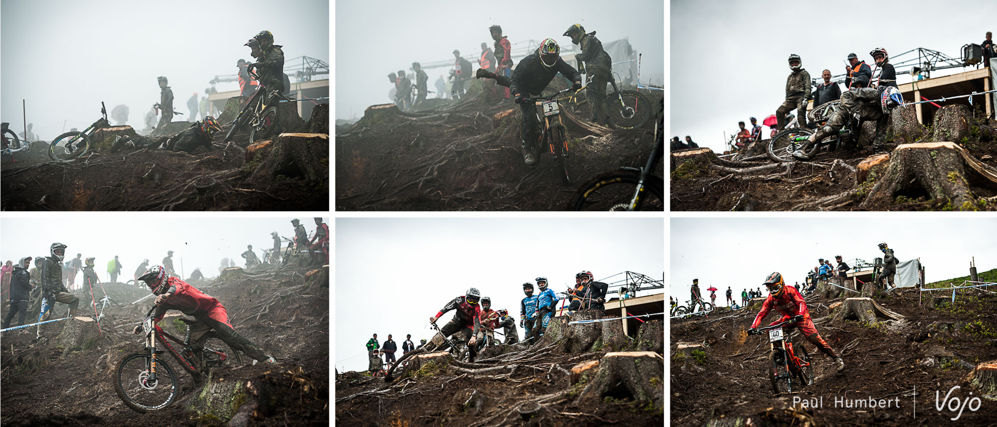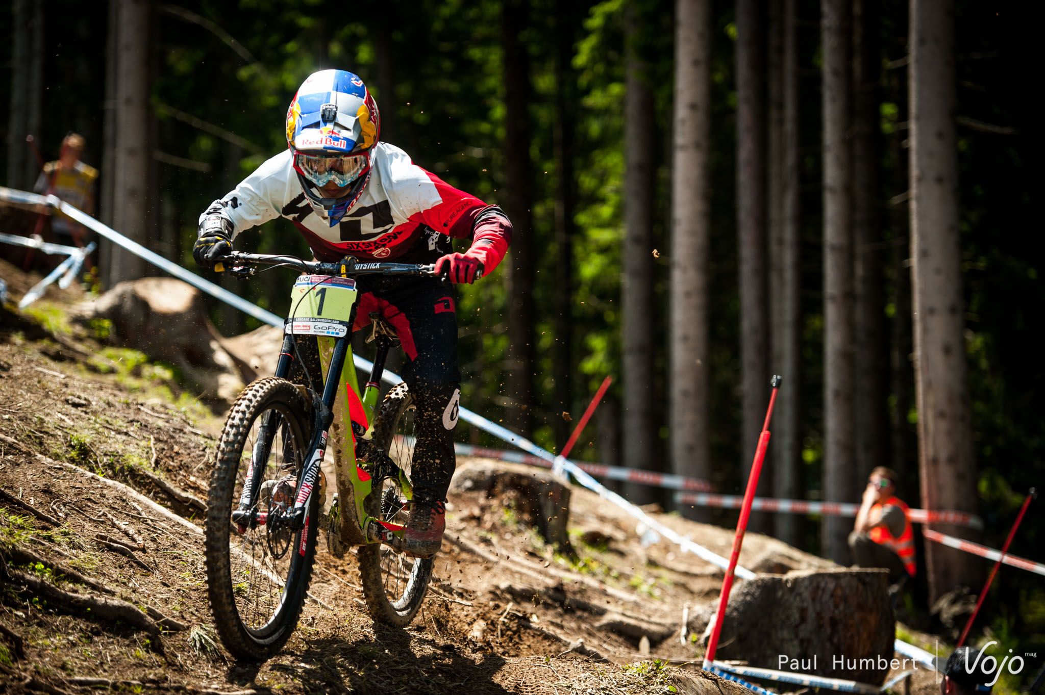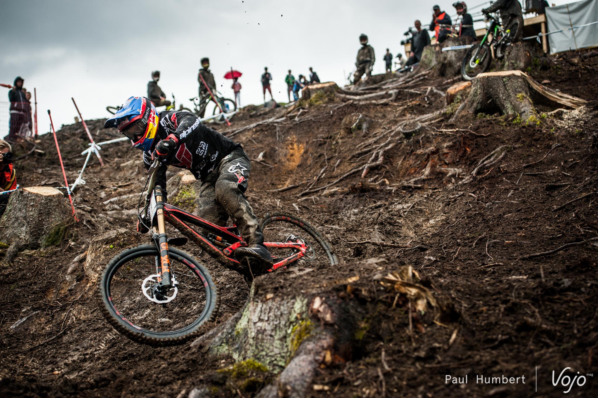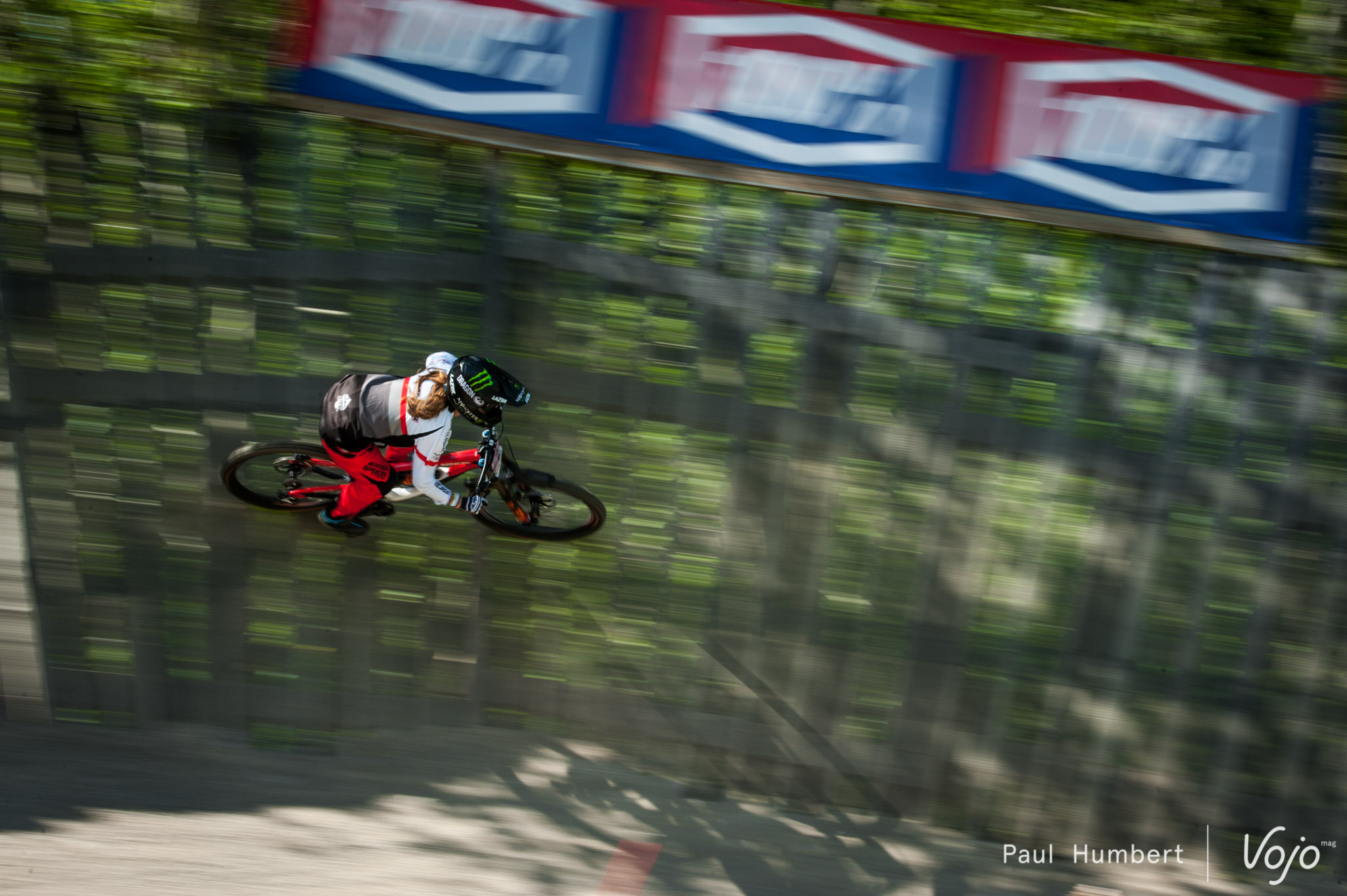En début d’après-midi, les pilotes s’élancent pour les qualifications. Aaron Gwin et Rachel Atherton prennent facilement la tête.