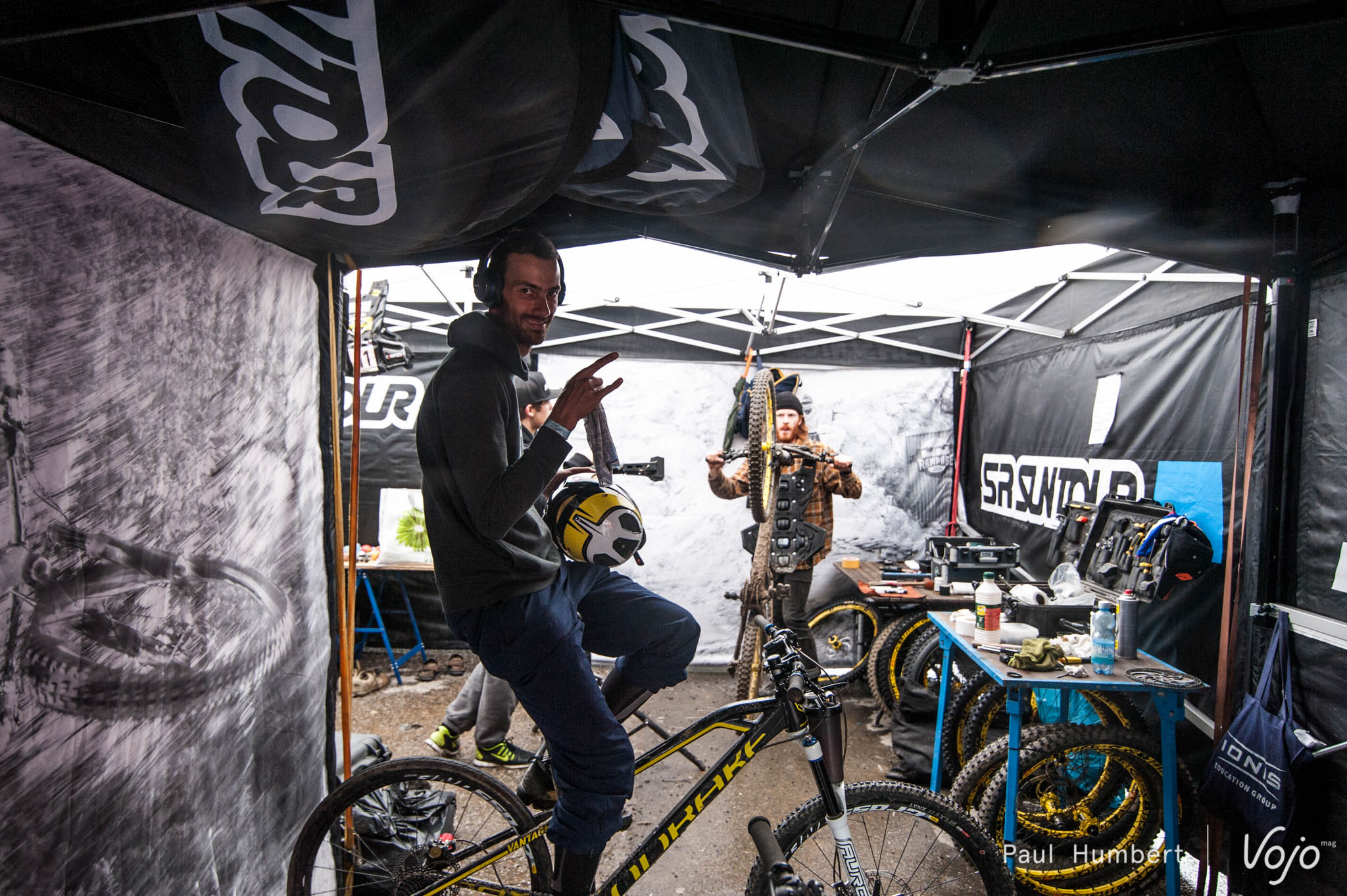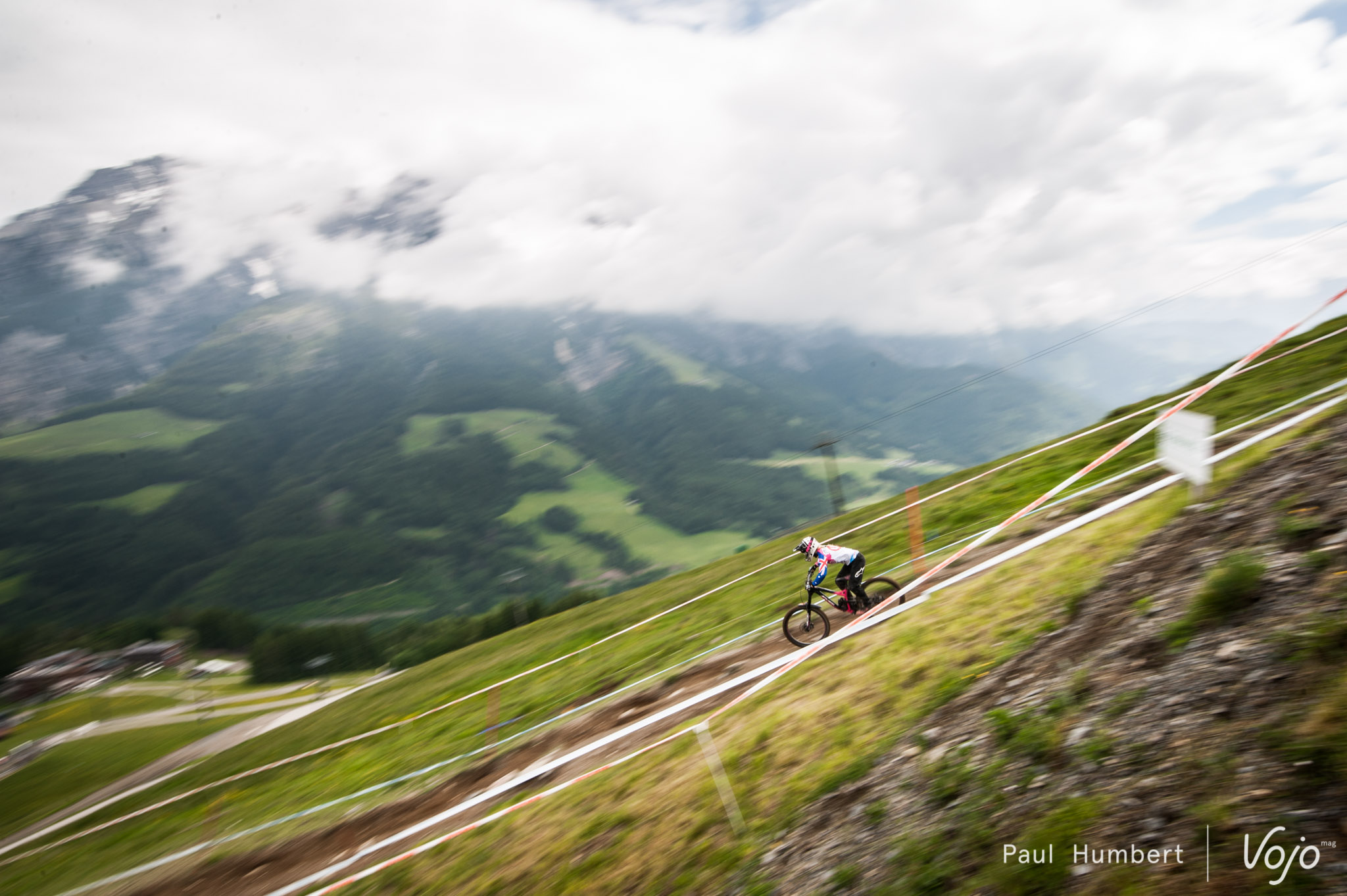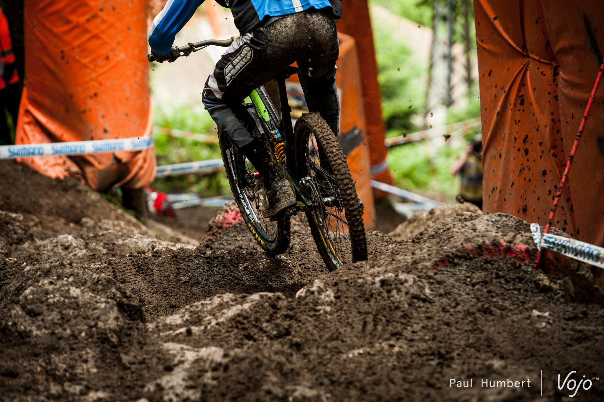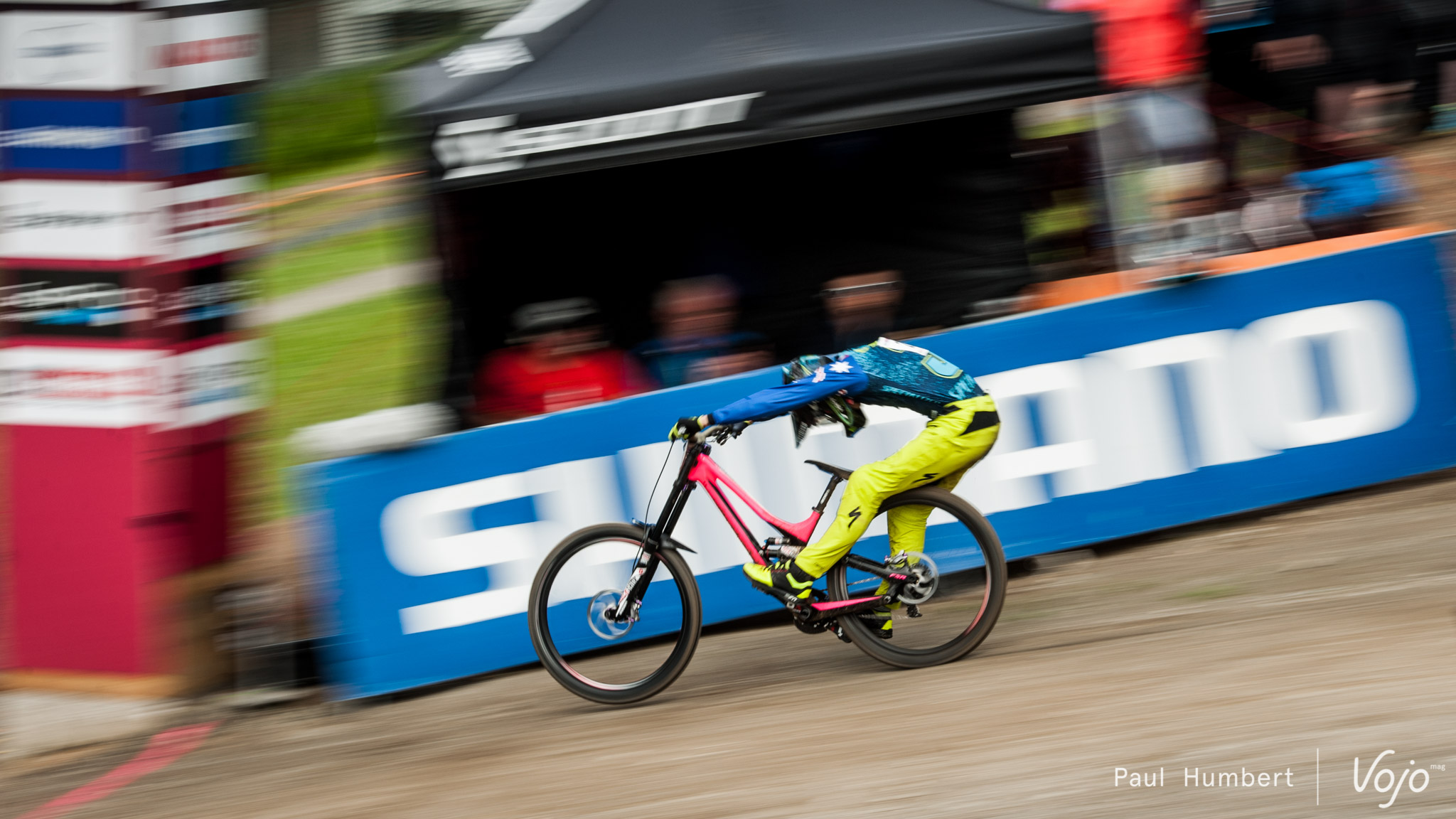 En début d’après-midi, les pilotes s’élancent pour les qualifications. Aaron Gwin et Rachel Atherton prennent facilement la tête.