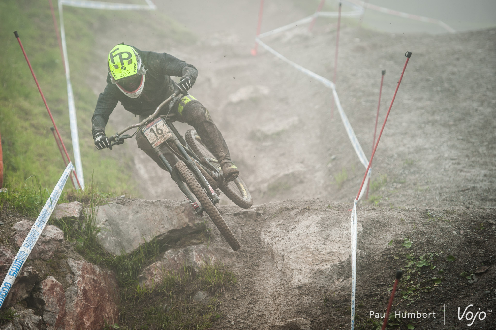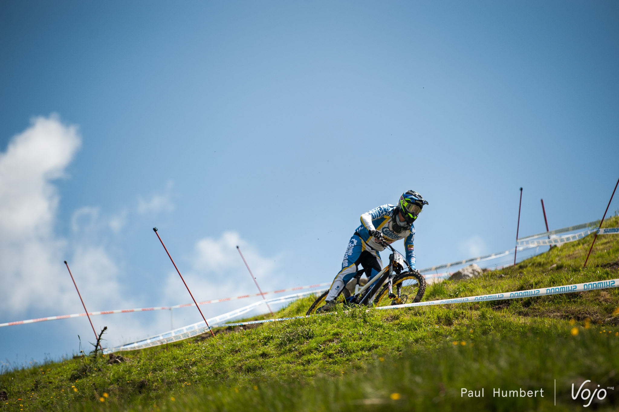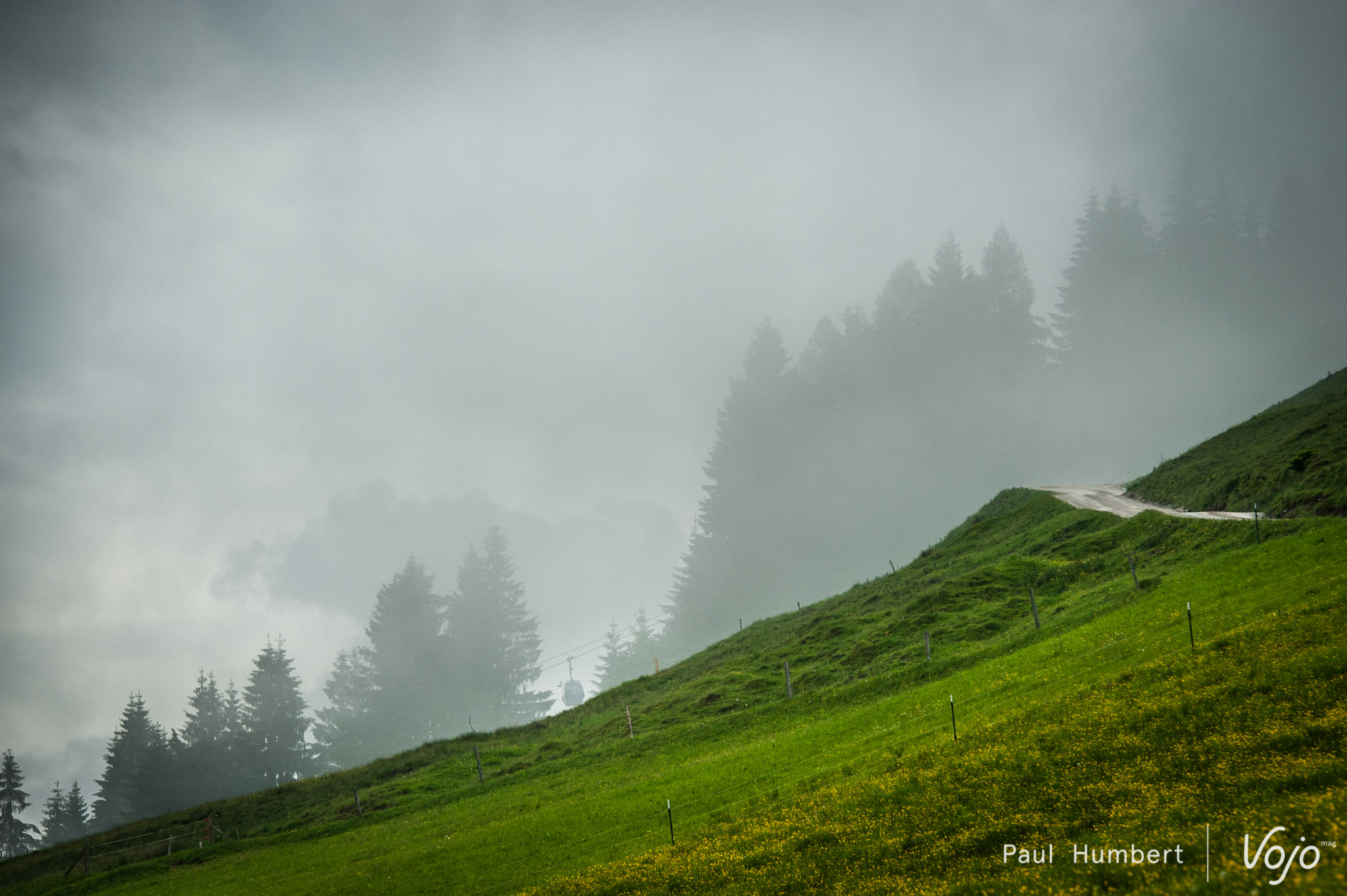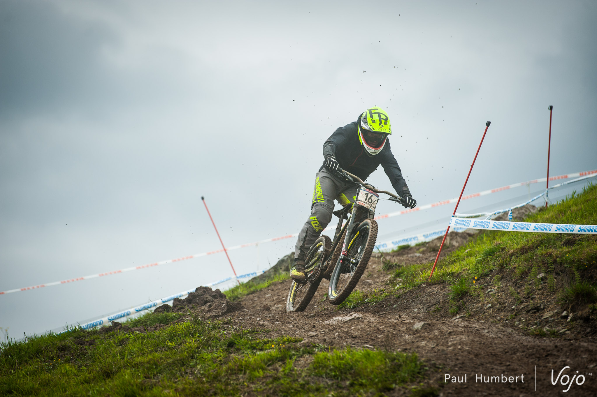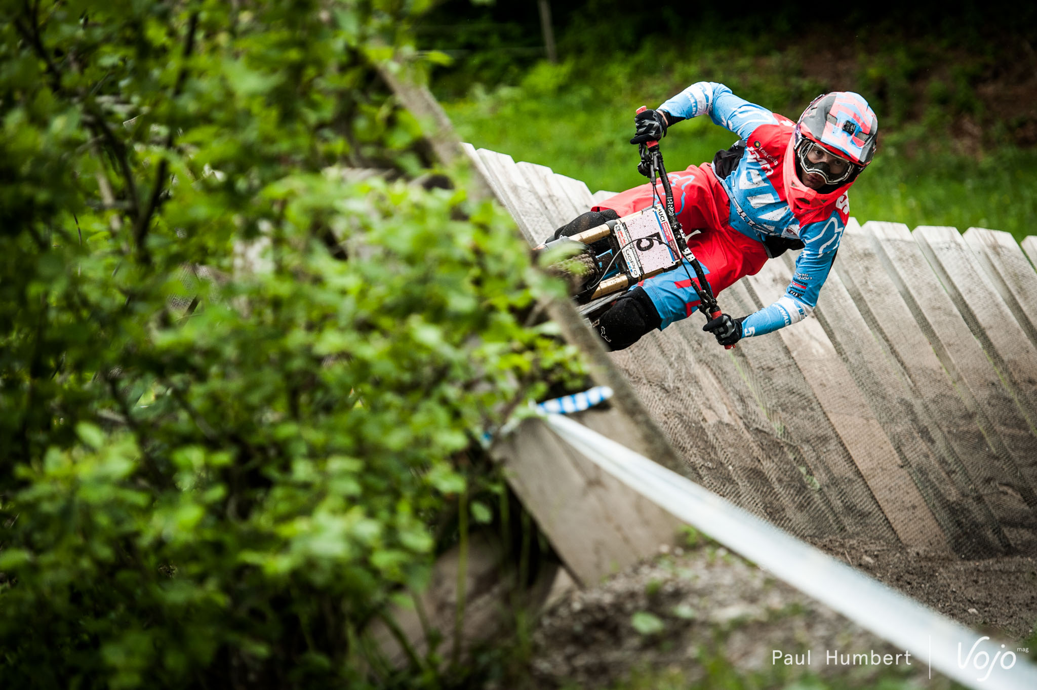 Dimanche matin, 8h. Les Dames et les Juniors s’entraînent une dernière fois sur la piste avant de redescendre attendre leur run de finale. Le terrain est encore humide mais la terre commence à sécher.
