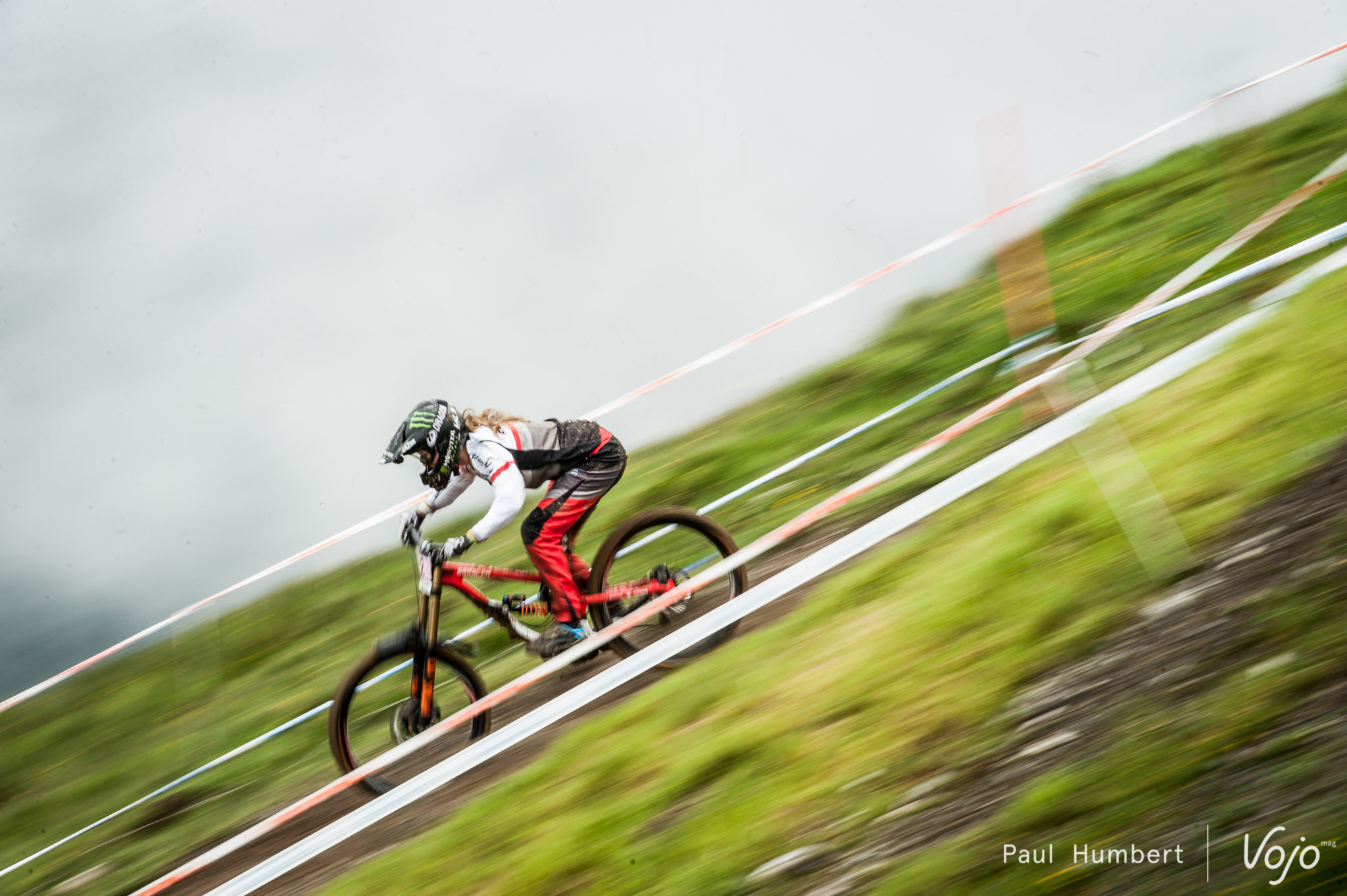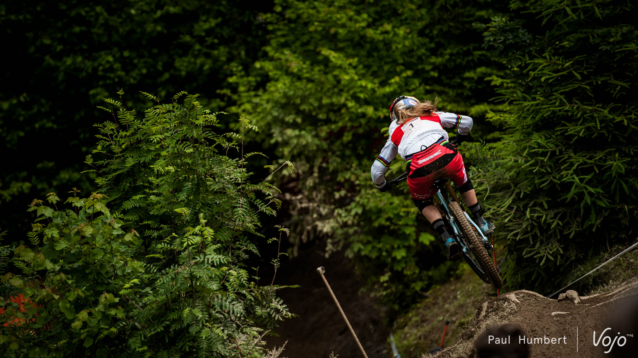 Sur le bas du parcours, elle est la seule avec Rachel Atherton à passer la table d’arrivée.