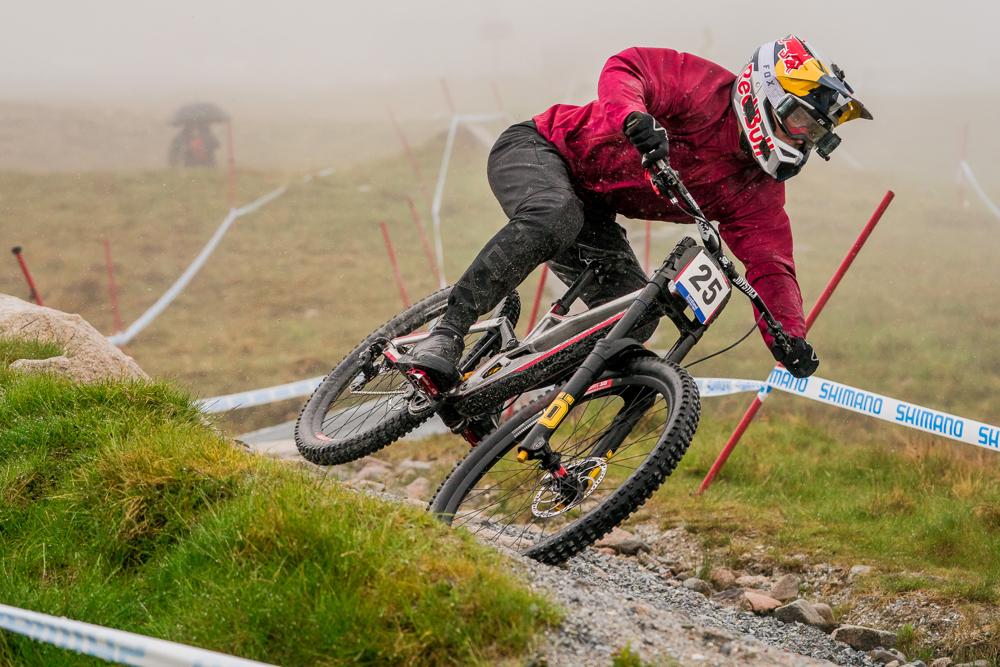Alors que le soleil brillait un peu partout sur le vieux continent, l’Ecosse n’a pas failli à sa réputation avec du brouillard, du vent et de la pluie au menu de cette deuxième manche de la coupe du monde DH 2019. De quoi livrer encore une fois du grand spectacle !