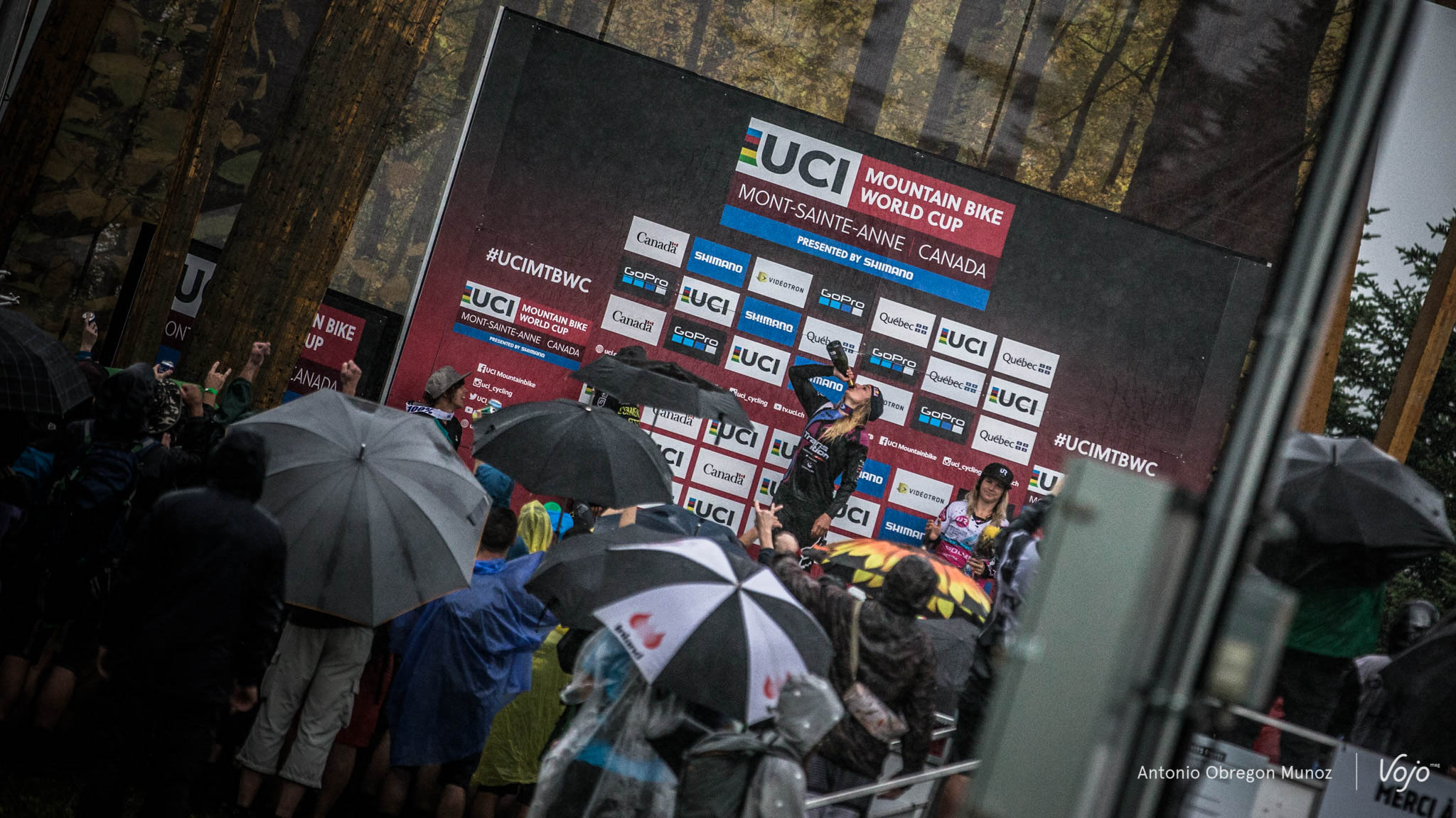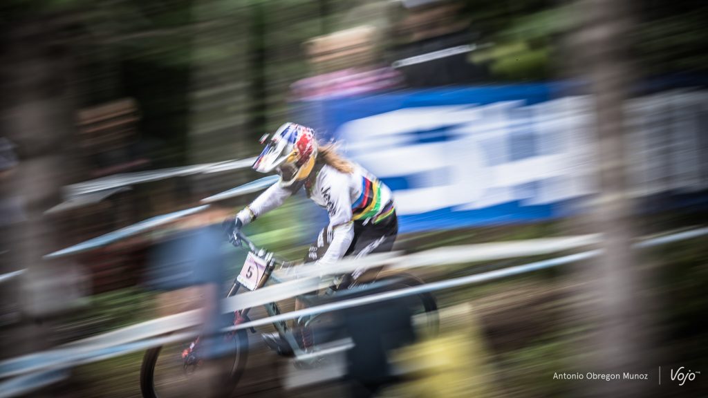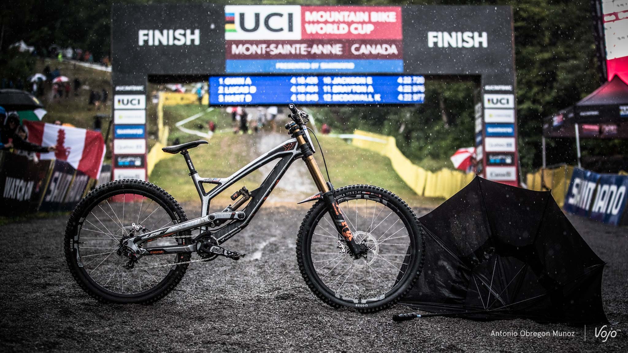 La célèbre piste de Mont-Sainte-Anne a offert un spectacle de premier choix aux amateurs de VTT de descente. Sous une pluie diluvienne, les meilleurs descendeurs et descendeuses de la planète se sont affrontés. Chez les hommes, alors qu’on pensait la course terminée au moment où la pluie redoublait de violence, Aaron Gwin est venu rappeler à tout le monde pourquoi il restait l’homme fort de notre sport. Découvrez nos plus belles images des victoires de l’américain et de Tahnée Seagrave signées Antonio Obregon :