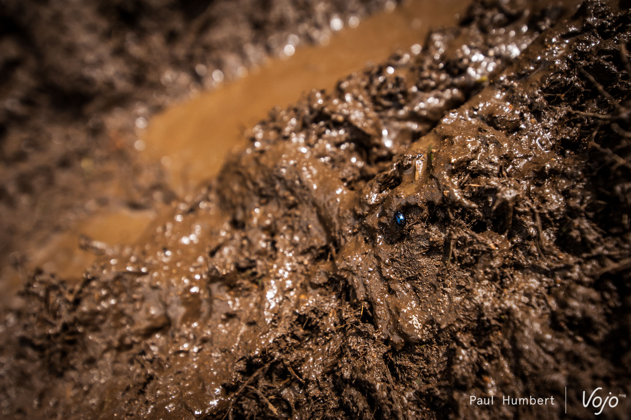 Bien remué par la pluie de la nuit et par les coureurs précédents, il est difficile de tenir sa ligne dans la boue de La Bresse.