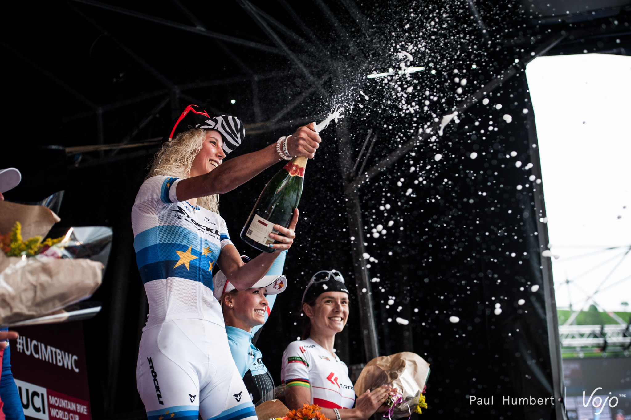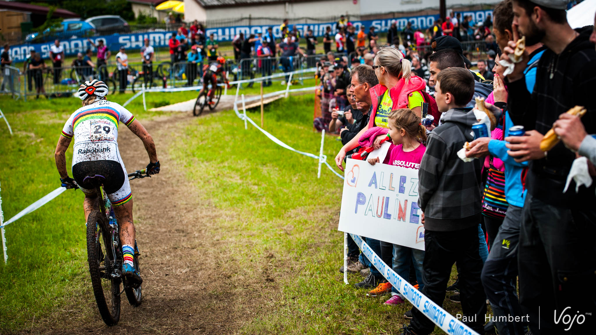 Non loin d’elle, c’est Sabrina Enaux, Julie Bresset et Pauline Ferrand-Prevot qui sont acclamées par le public.