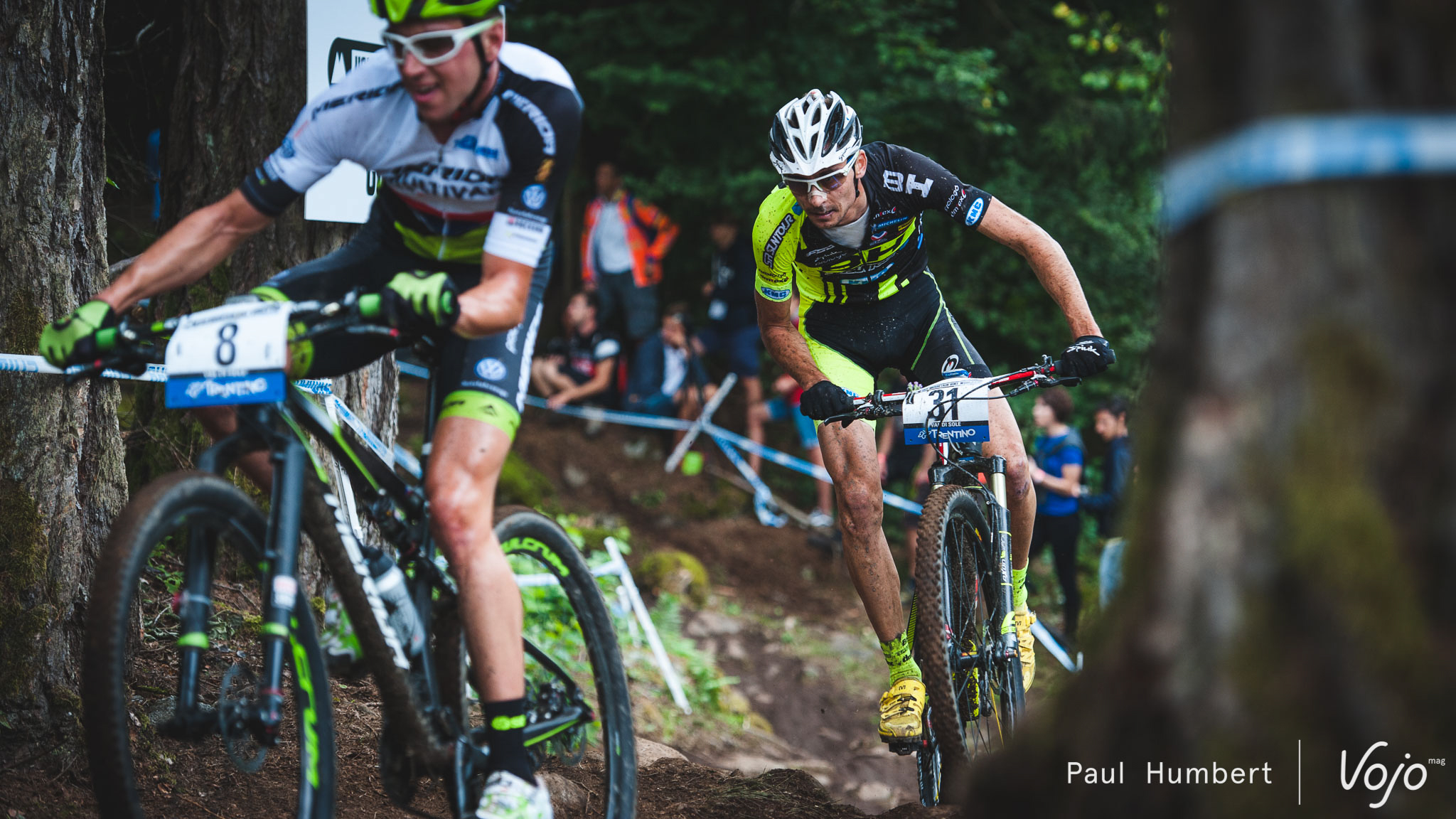 Après Mont-Sainte-Anne et Windham, c’est la troisième fois d’affilée que Julien Absalon et Nino Schurter offrent un spectacle d’anthologie en tête d’une Coupe du Monde. Sans oublier bien sûr Albstadt un peu plus tôt dans la saison, où le duel avait tourné court suite à une chute du prodige suisse à quelques centaines de mètres de l’arrivée. Mais, après trois deuxièmes places successives en début de saison, Nino Schurter a débloqué les compteurs au Canada et plus rien ne l’arrête. Pas même un Julien Absalon au sommet de sa forme mais, il est vrai, un peu diminué cette fois par un pneu avant mollasson. Revivons en images cette finale de la Coupe du Monde XC 2015, qui fait aussi office de répétition générale à deux semaine des Worlds d’Andorre.