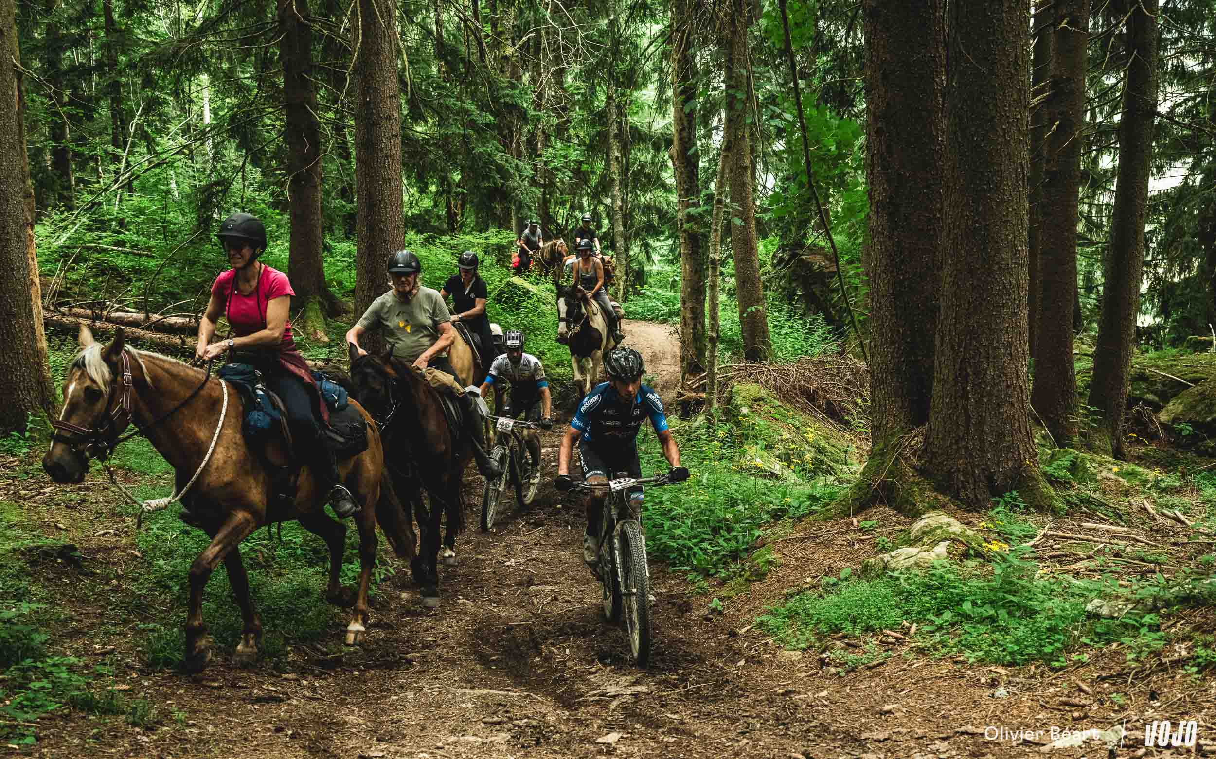 Gardez bien cette photo en mémoire pour la sortir à tous ceux qui diraient que la cohabitation entre usagers est impossible ! Des sourires, des grands « bonjour », des encouragements et des coureurs du top mondial attentifs à ne pas effrayer les chevaux et à respecter les consignes des cavaliers même en pleine coupe du monde : voilà un exemple qui fait plaisir à voir !
