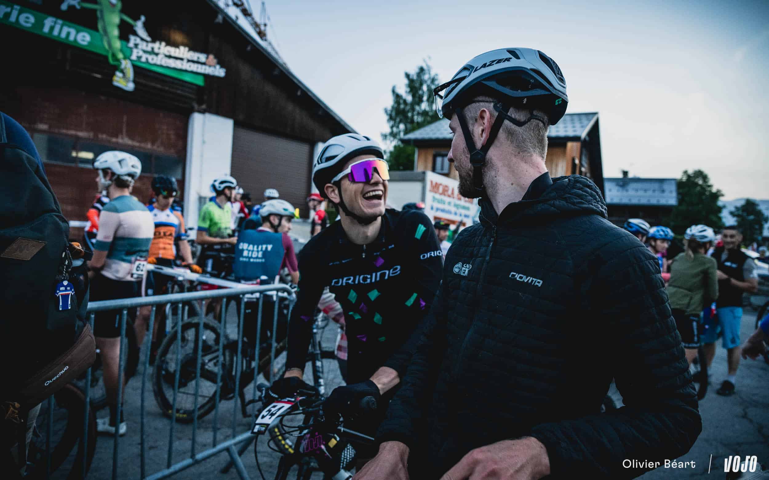 On retrouve aussi Basile Allard et Rémi Groslambert au départ, les deux membres du team Origine-Vojo qui jouent ici quasiment à domicile ! Ils auront l’occasion de vous raconter plus en détail leurs aventures sur cette course dans un article plus complet, vu de l’intérieur.