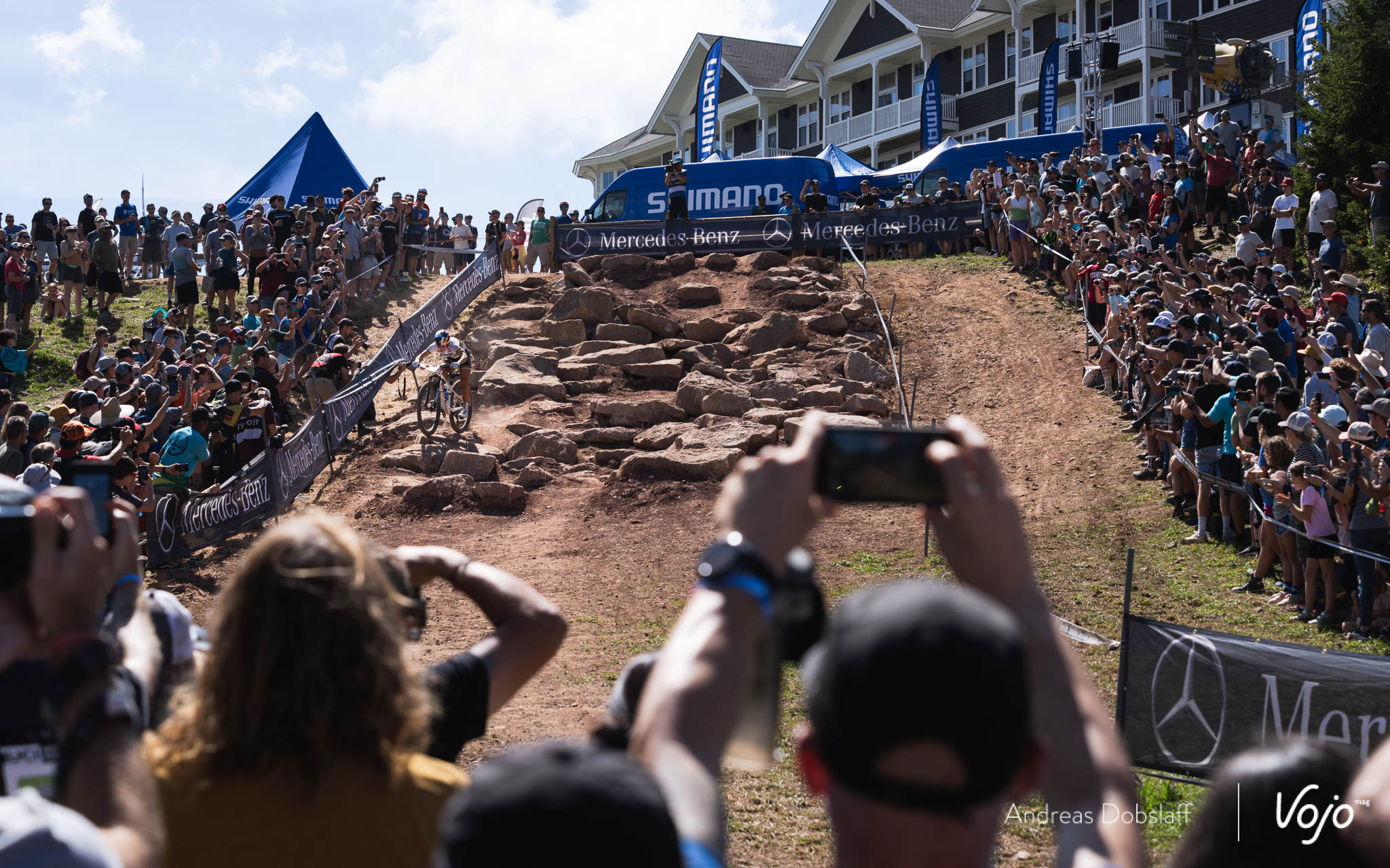 Bienvenue à Snowshoe, aux USA, pour le retour de la coupe du monde VTT Outre-Atlantique, après un an de pause en 2020 pour cause de Covid ! Et en plus, cerise sur le gâteau, ce retour s’est fait en présence d’un public venu en nombre dans cette station de ski de l’état de Virginie.