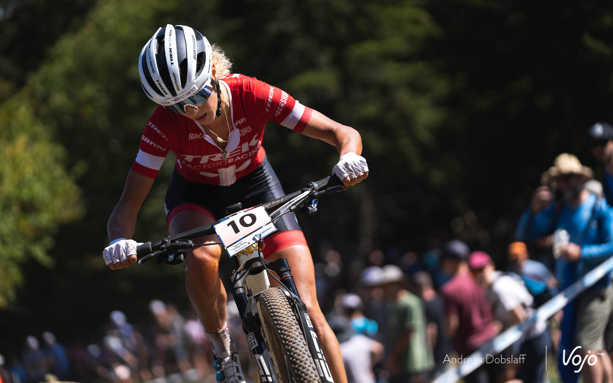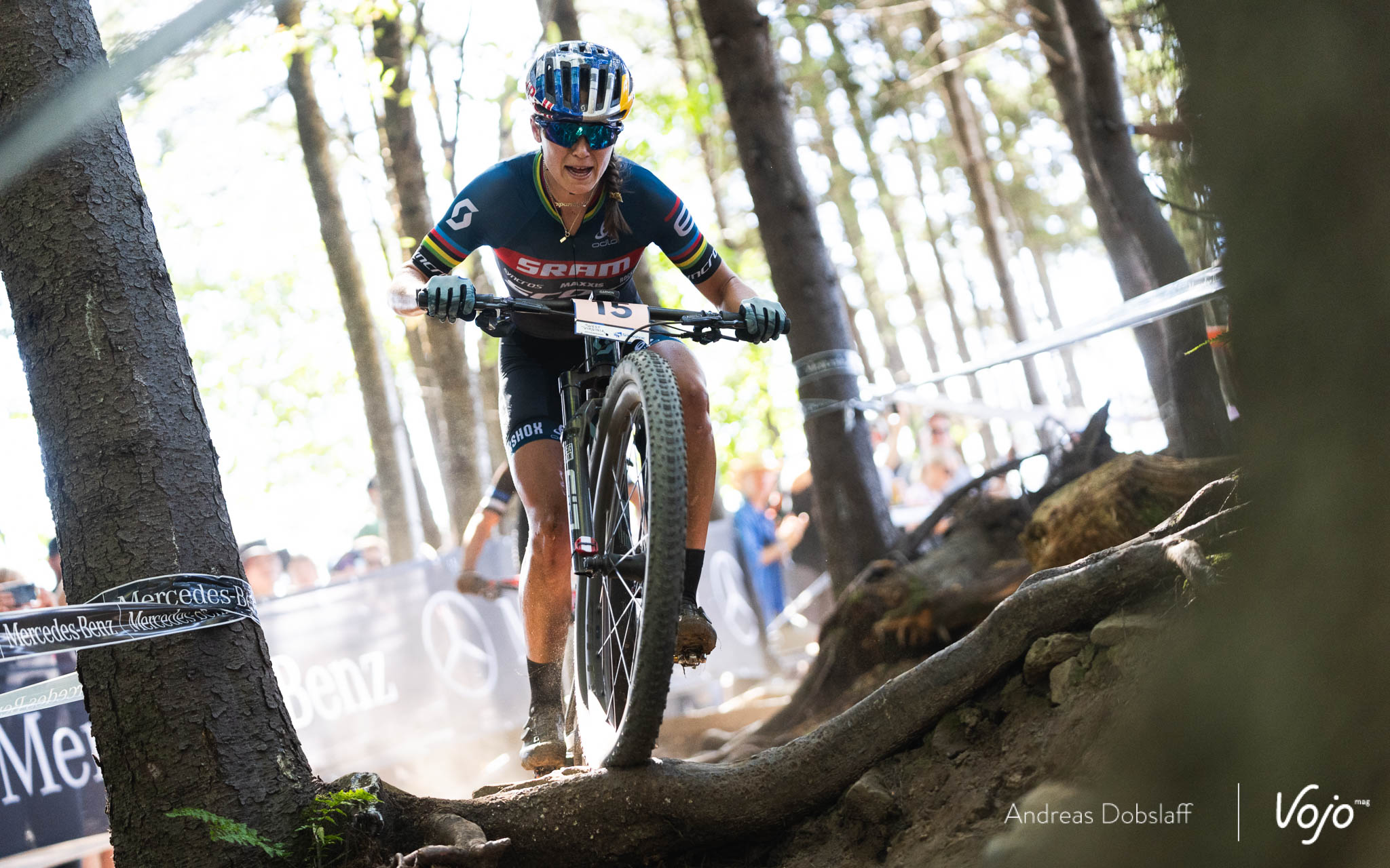 Devant son public, Kate Courtney a hélas connu un week-end particulièrement compliqué. Après sa chute lors du short-track, elle a abandonné le dimanche peu avant la mi-course…