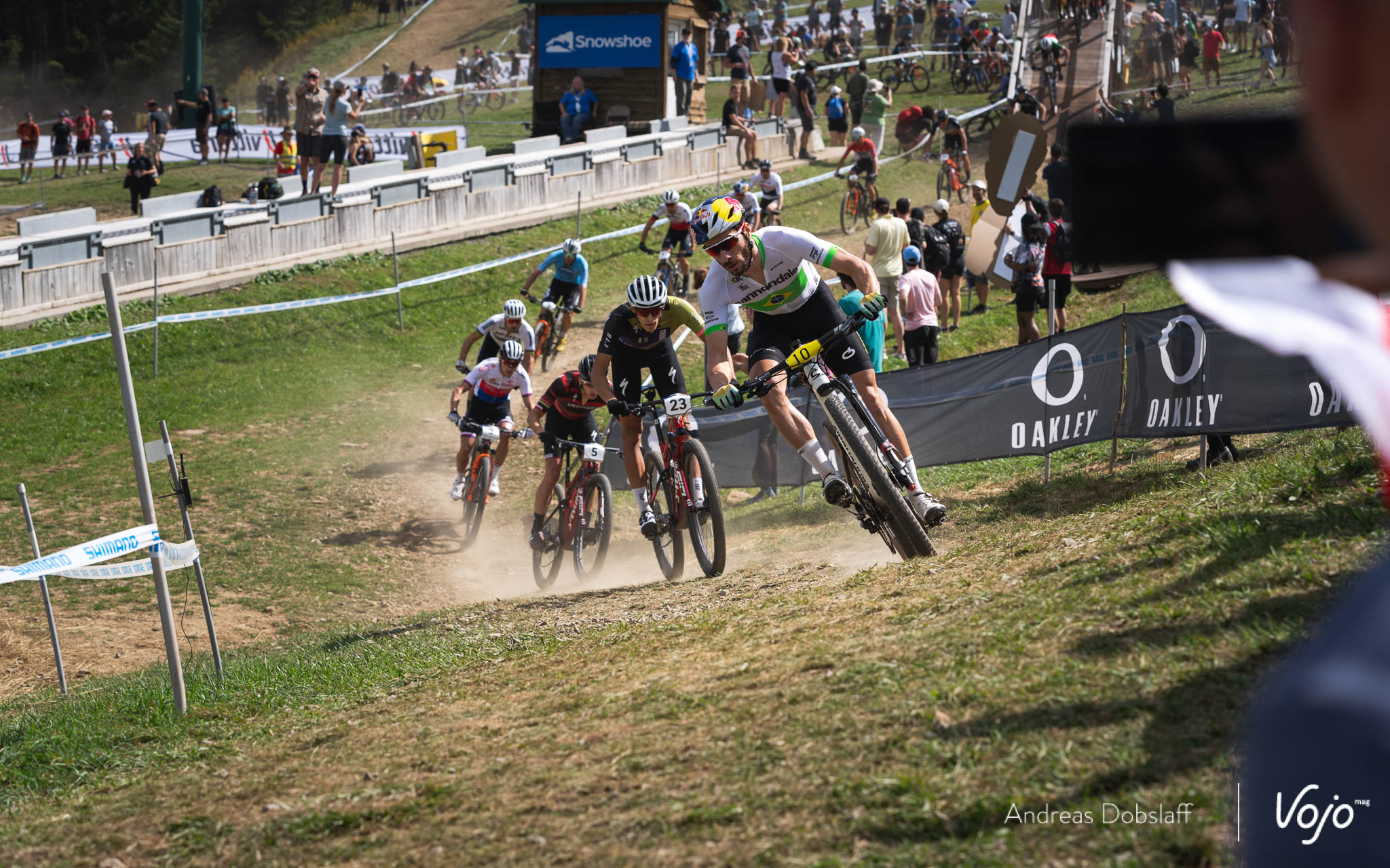 Retour dans la course à l’avant, où un groupe de 5 coureurs caracole en tête de l’épreuve, sous l’impulsion d’Ondrej Cink, qui entend bien remonter à la 2e place du général final, position qu’il a occupée une bonne partie de la saison avant d’en être dépossédé par Koretzky. Avancini tient bon, tout comme Schurter, Blevins et un invité « surprise », Luca Braidot, qui est en train de réussir sa meilleure course de la saison.