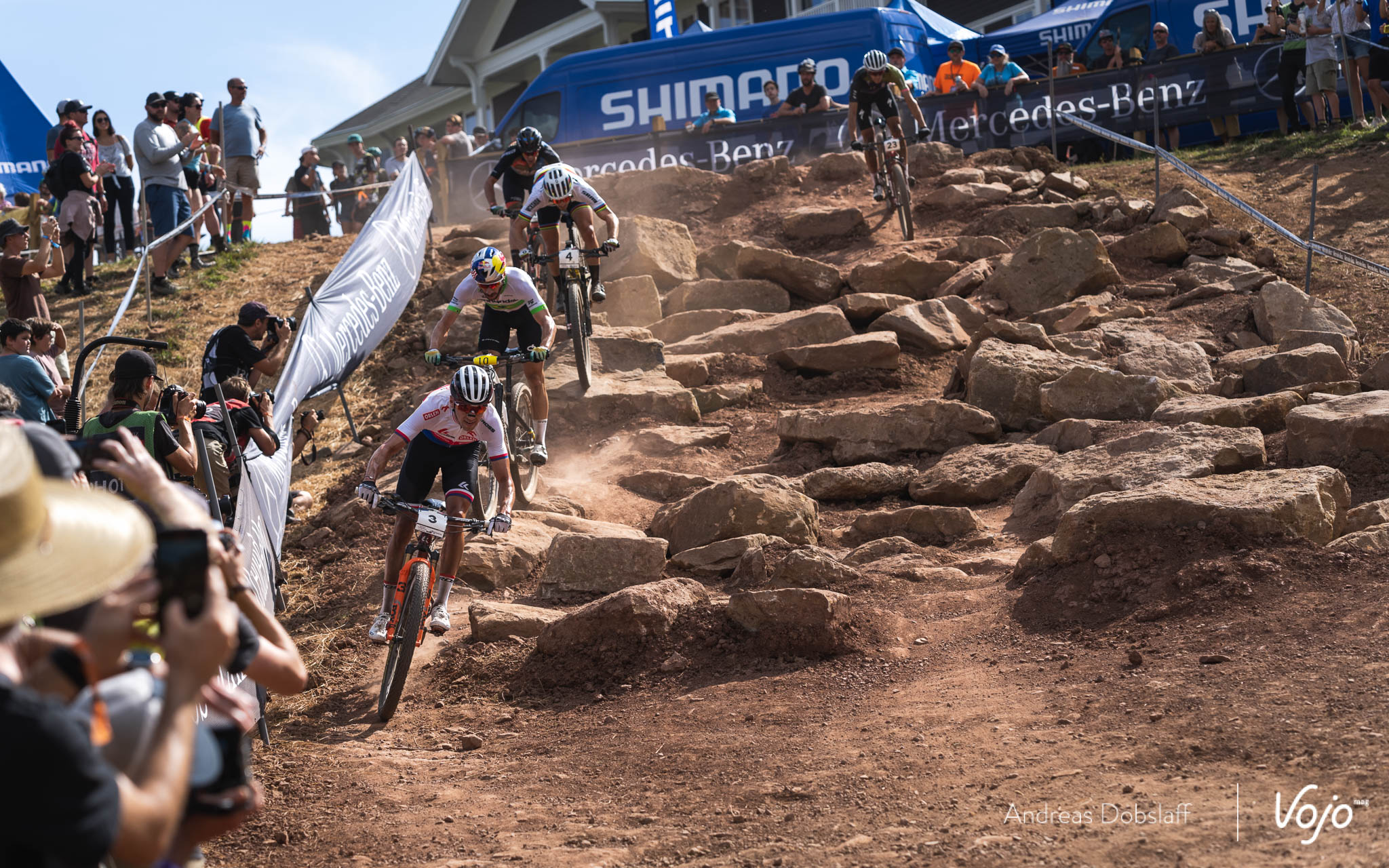 Comme souvent, c’est le Brésilien Enrique Avancini qui met le feu au poudre directement. Dans sa roue, il emmène Jordan Sarrou, Ondrej Cink, Nino Schurter et Victor Koretzky, mais aussi un certain Christopher Blevins, le champion du monde de short-track, qui aimerait bien réaliser un exploit devant son public et mettre fin à près de 30 ans de disette pour les coureurs américains en coupe du monde XC !