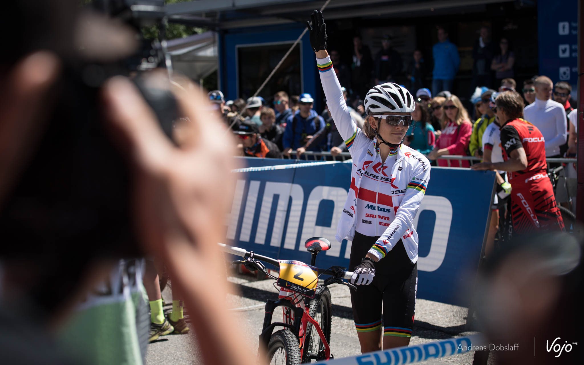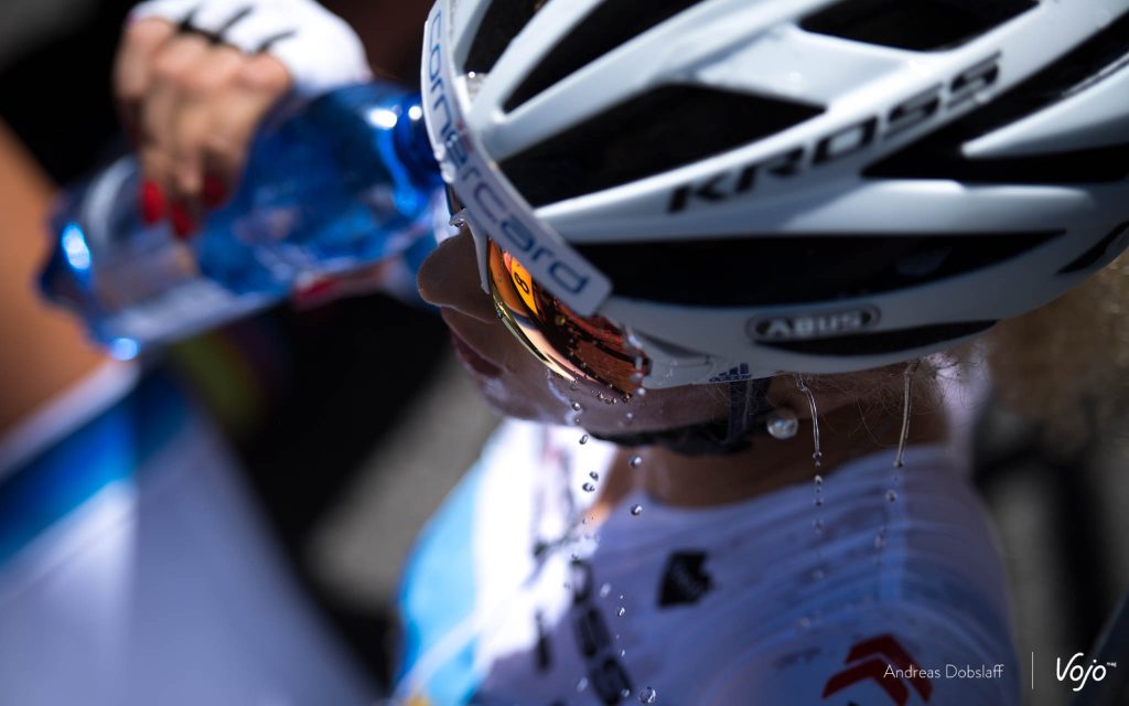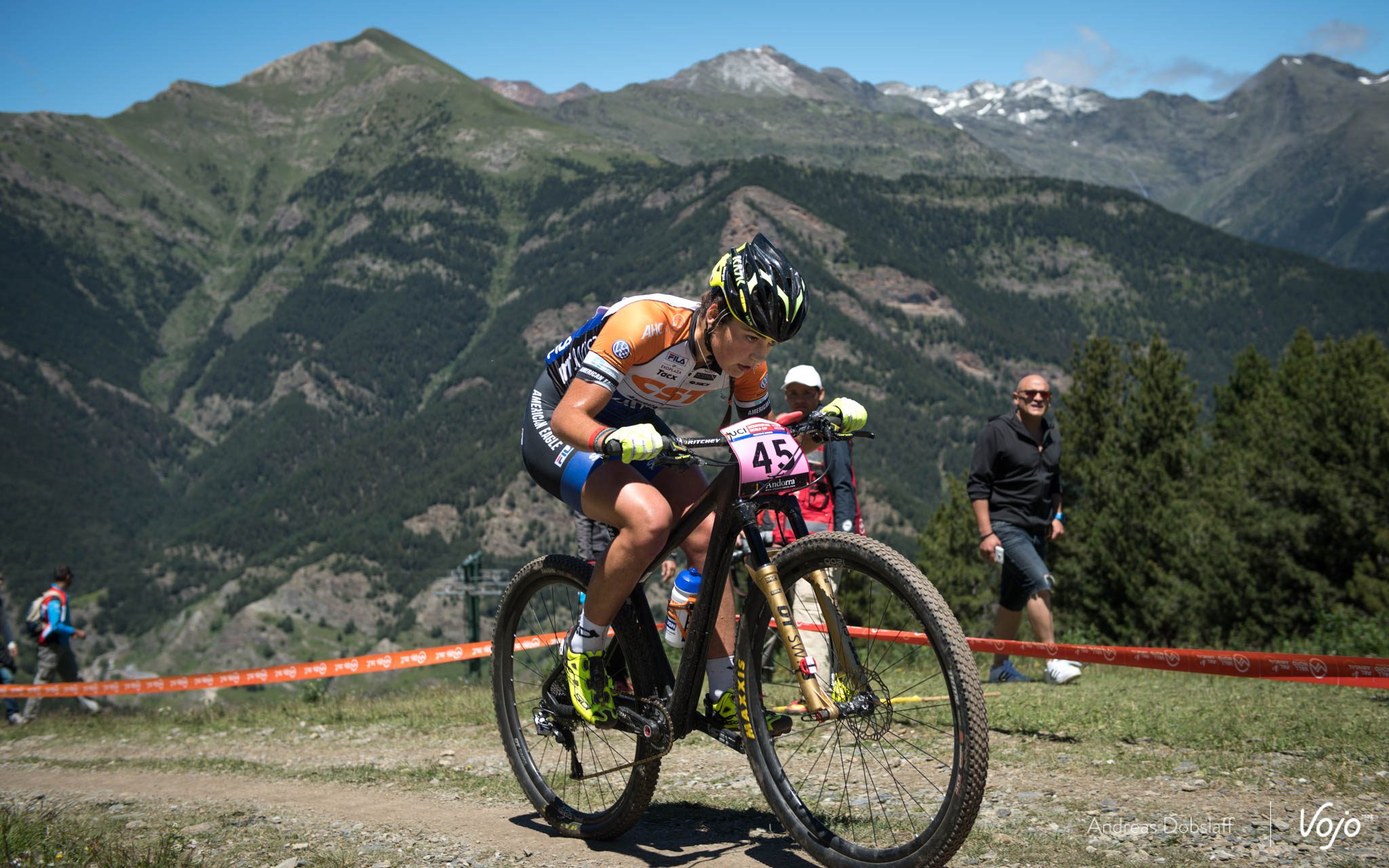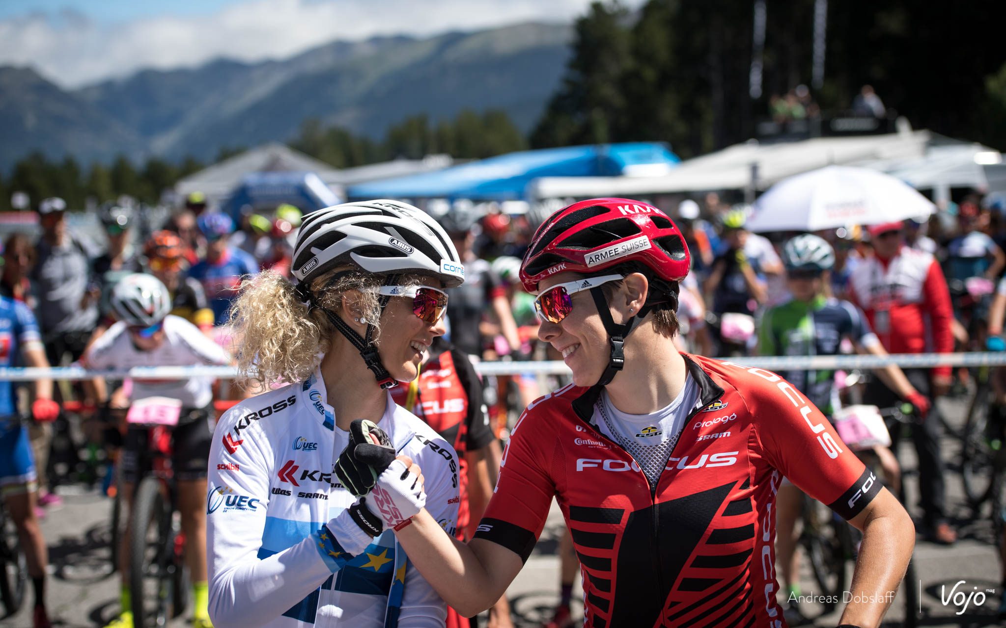 Sur le coup de midi, le start est donné sous le soleil et, malgré l’altitude, la chaleur se fait sentir. Fidèle à son habitude, Jolanda Neff fait le holeshot. Mais l’ange blond n’est plus aussi dominant qu’à une certaine époque.