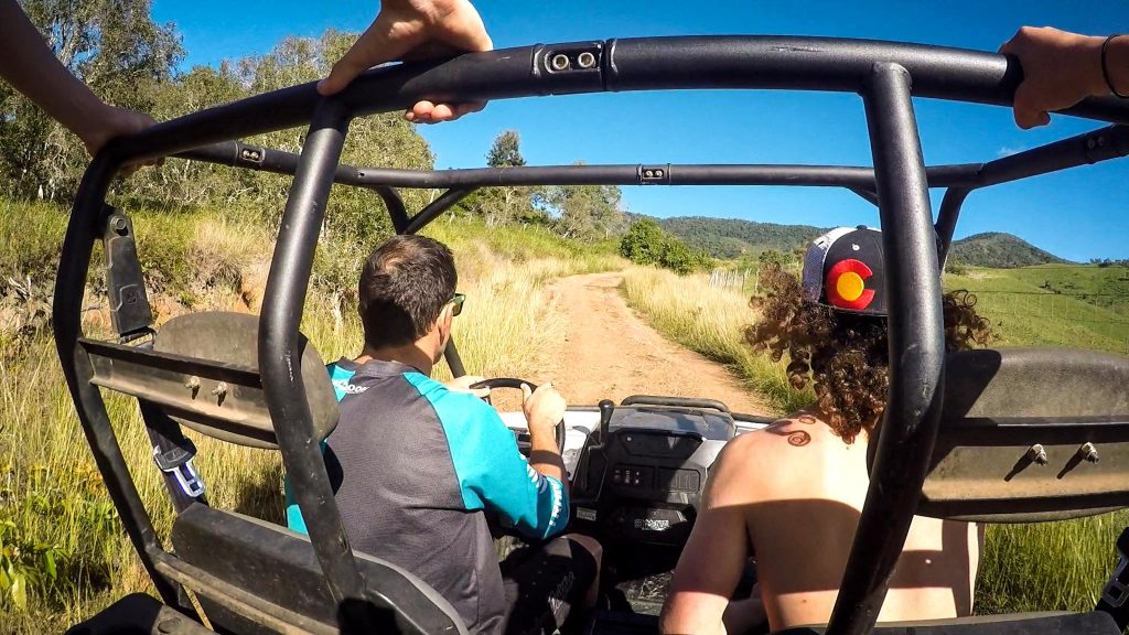 Les dernières minutes en pick-up ont été quelques peu mouvementées sur des pistes cabossées. Pioupiou, le gestionnaire de la propriété nous accueille. 5 maisonnettes au milieu d’une végétation tropicale et verdoyante nous attendent, au pied des montagnes. À côté de la pumptrack construite par PEF, le décor est planté !