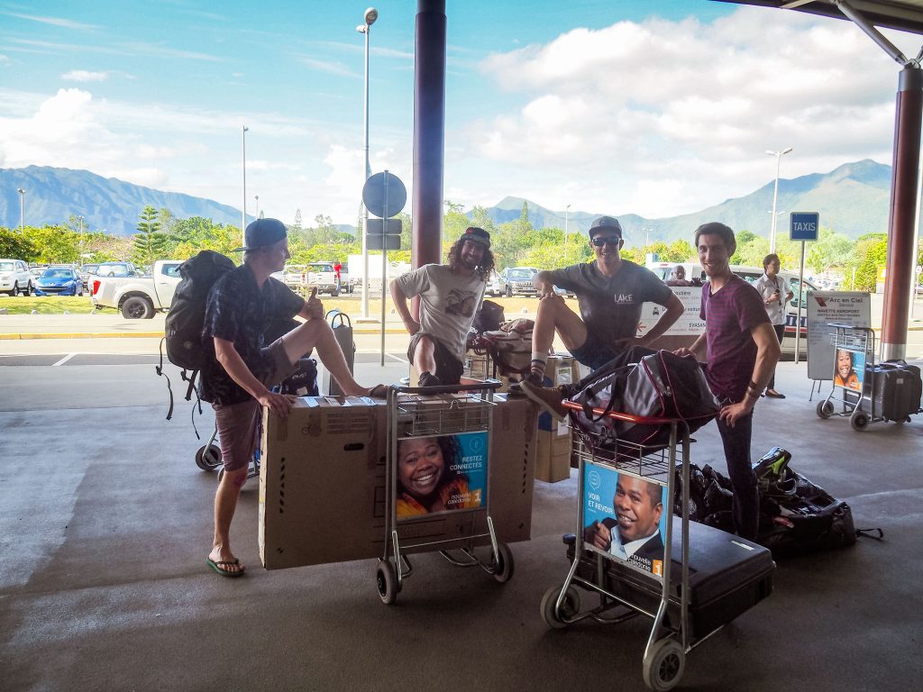 Le 29 avril 2016, je me retrouve à l’aéroport d’Auckland avec une bande de 3 copains : Nico, Florian et Obi. C’est parti pour deux semaines en Nouvelle-Calédonie ! Dès l’atterrissage, le changement de décor est saisissant, on est en plein milieu de la pampa, il fait hyper chaud et humide. Olivier vient nous chercher avec un gros pick-up, en mode américain. Direction Ouenghi à 1h au nord de Nouméa, dans la brousse.