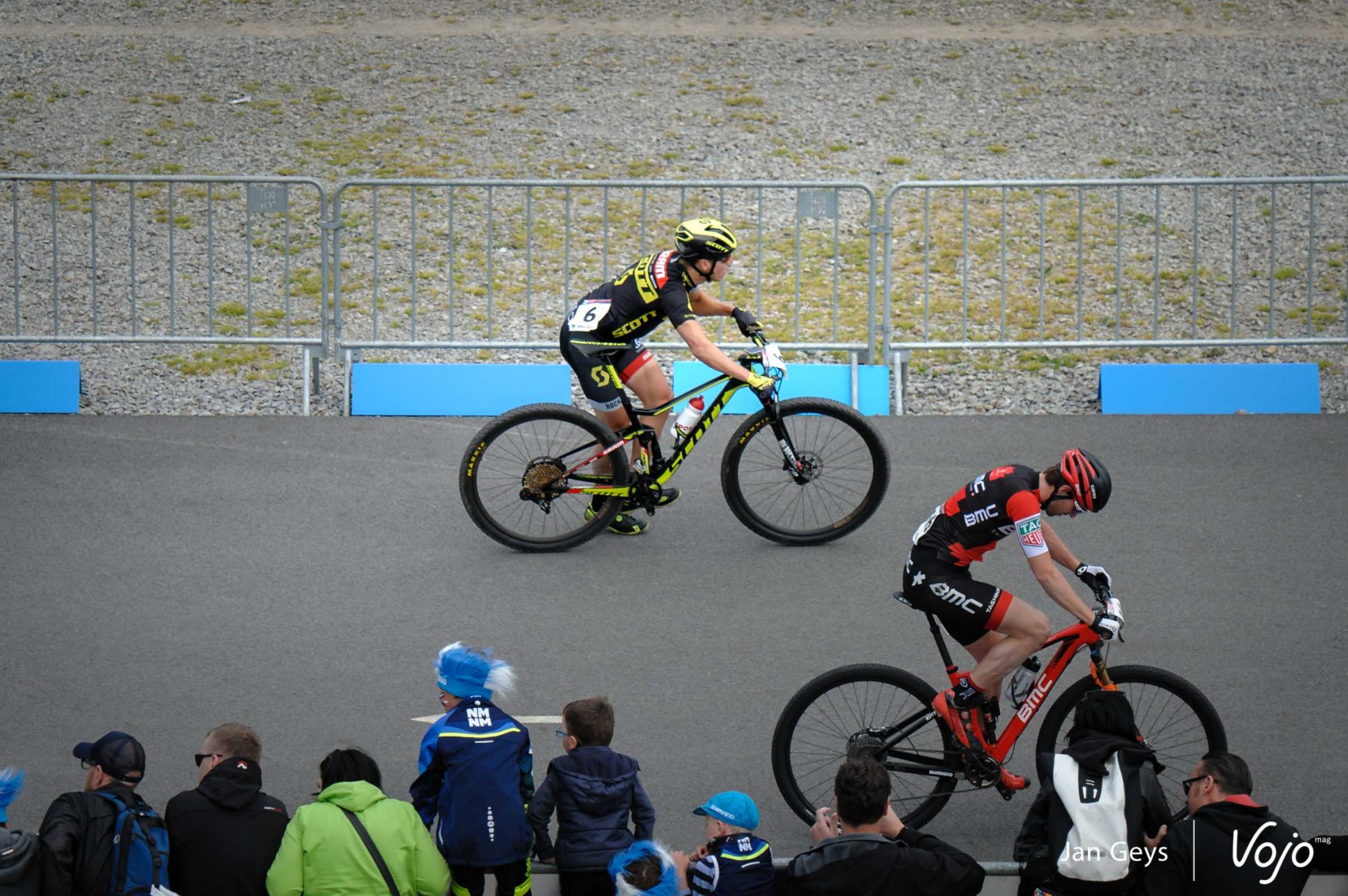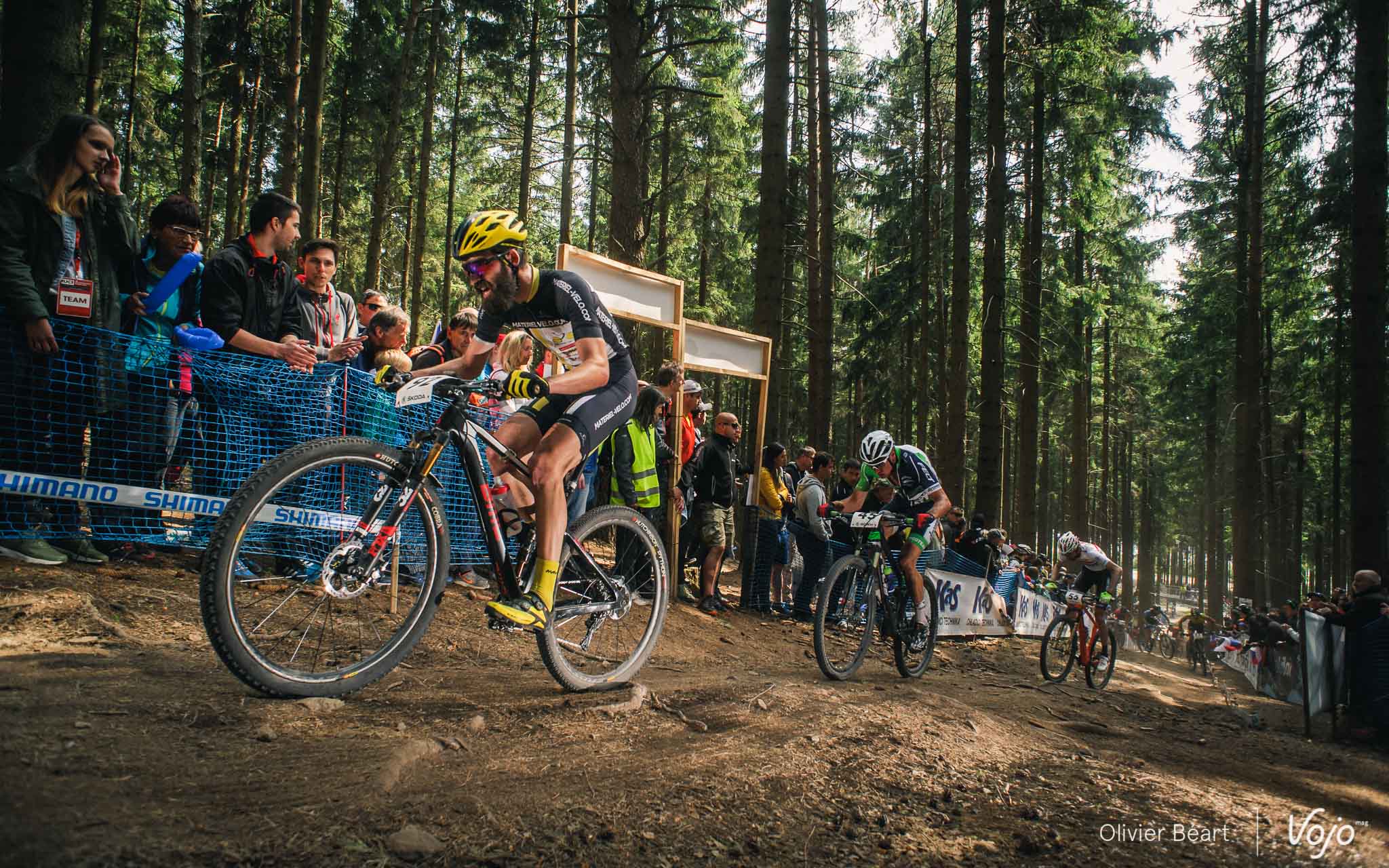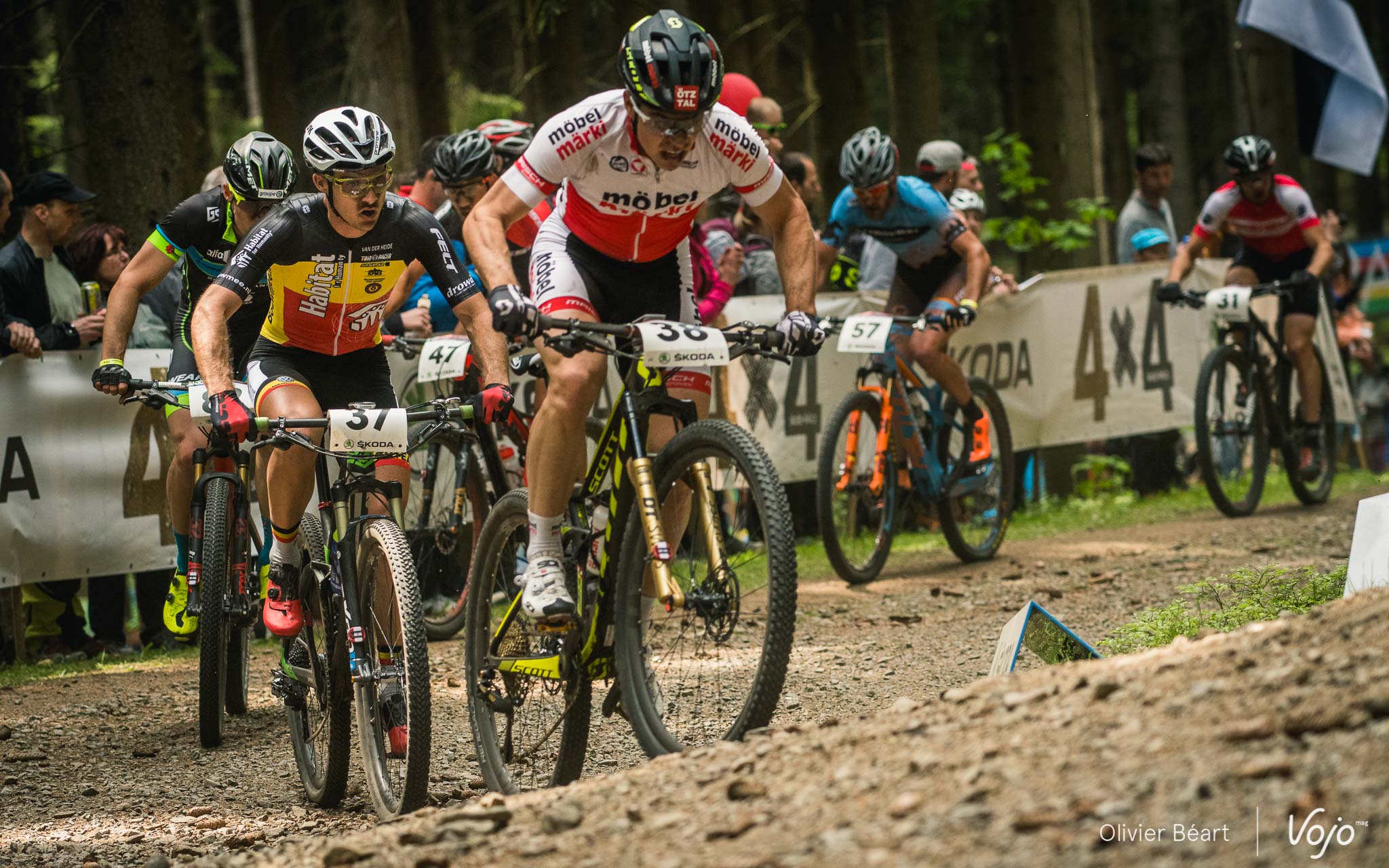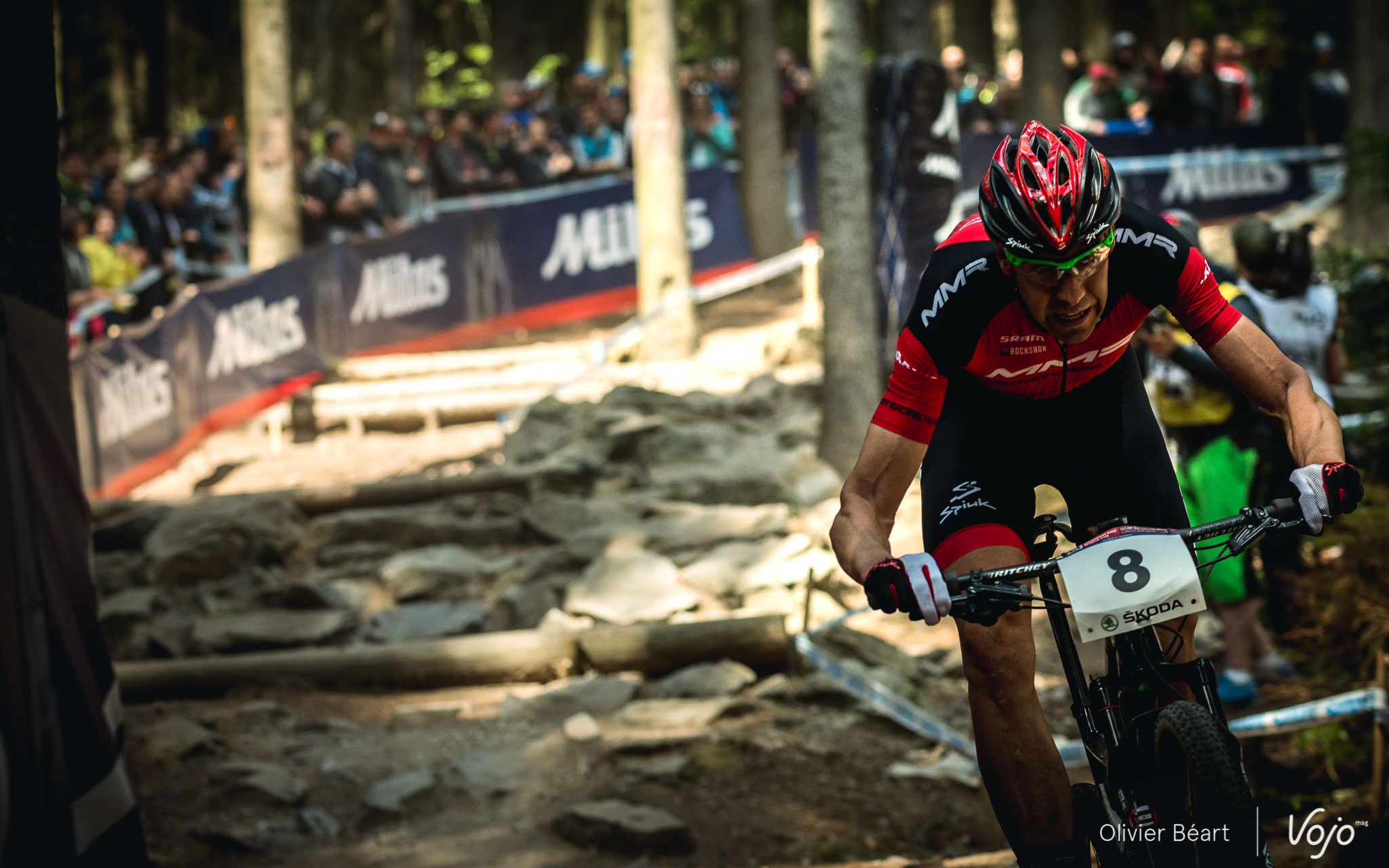 Maxime Marotte, Jordan Sarrou et Stéphane Tempier sont bien là aussi. Par contre, Julien Absalon ne semble pas en mesure de suivre le rythme dans les premiers kilomètres et on redoute que ses allergies lui jouent encore des tours car ici, la saison du pollen est encore loin d’être finie et, faute d’un bagage perdu, il n’a pas pu prendre son traitement les jours qui précèdent l’épreuve.