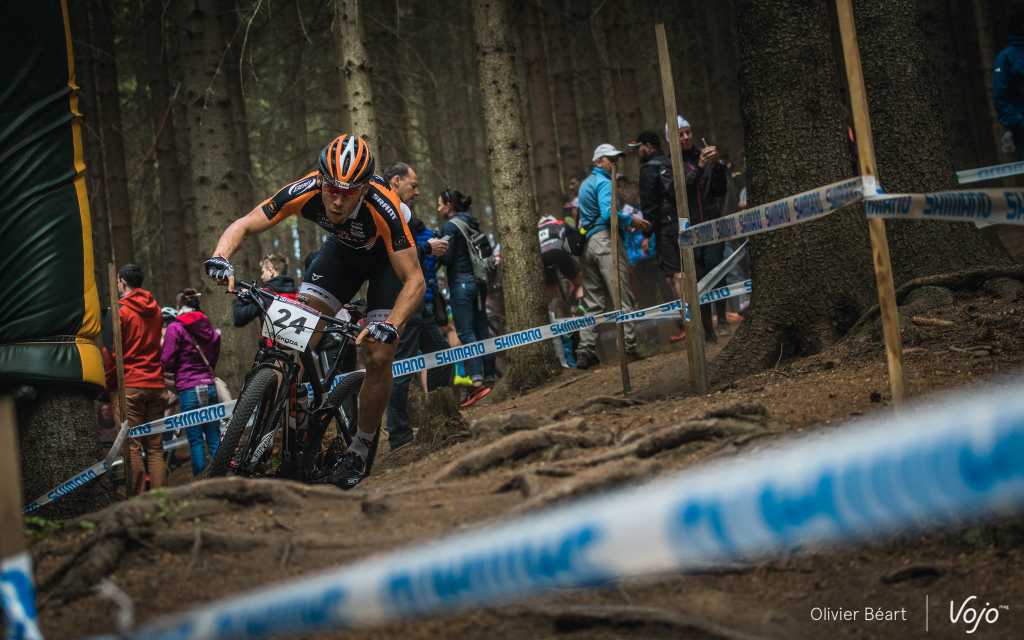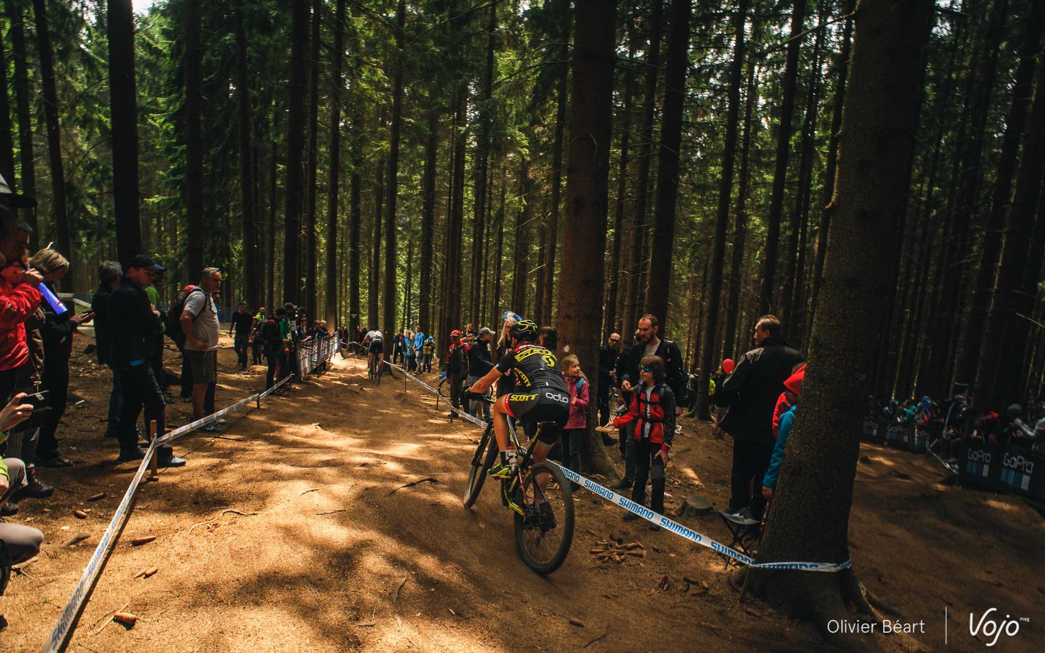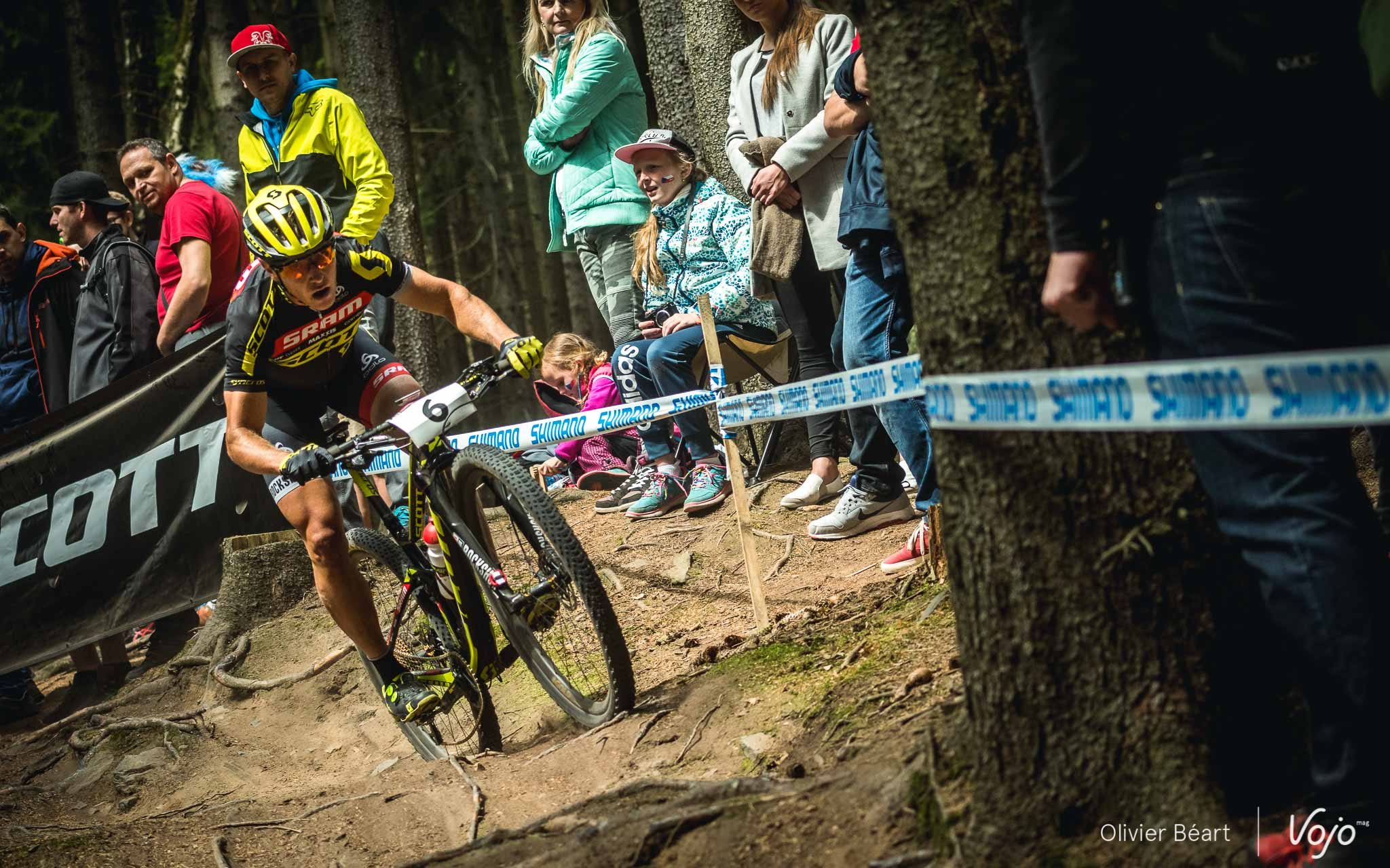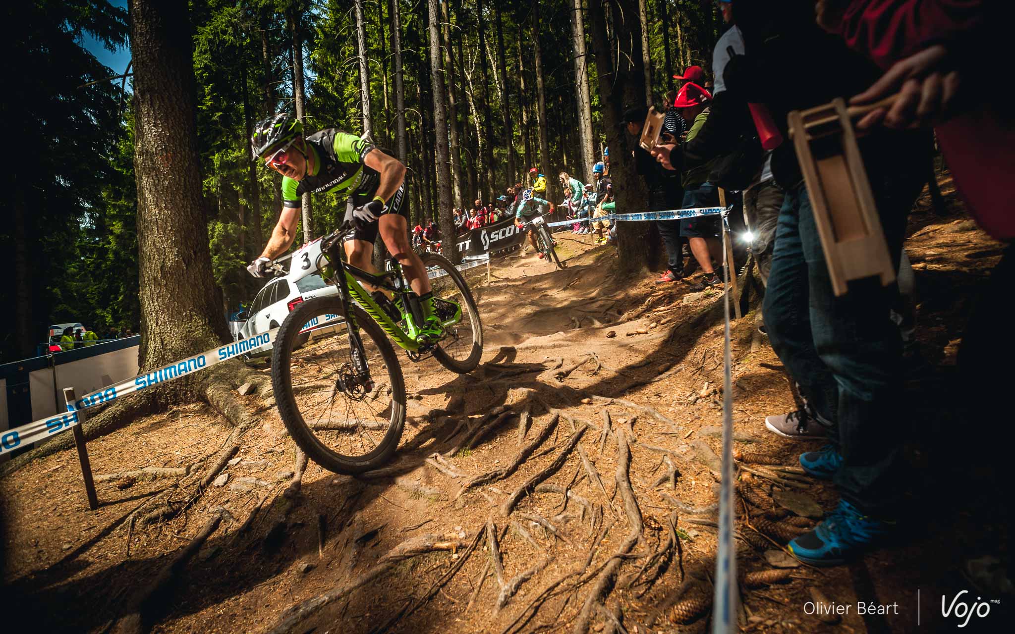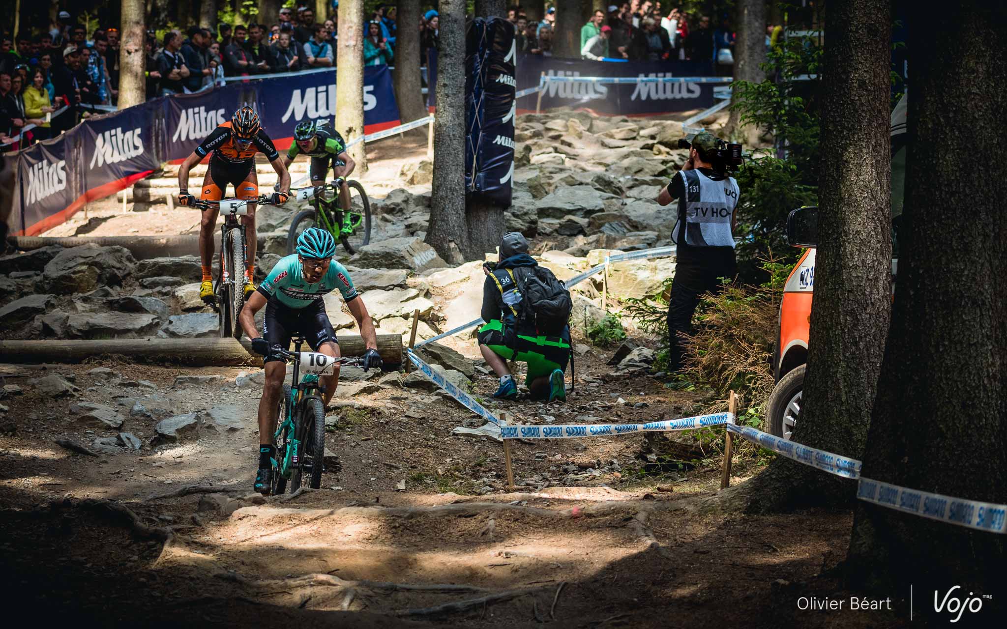 Heureusement, Marotte a de très bonnes jambes et il va vite retrouver sa place. « Je n’ai pas perdu beaucoup de temps mais la selle était un peu tournée et l’énergie dépensée pour revenir dans le groupe de tête m’aurait bien servi plutôt pour essayer de rentrer sur Schurter et Valero », dit-il avec philosophie mais en en râlant tout de même un peu sur lui-même.