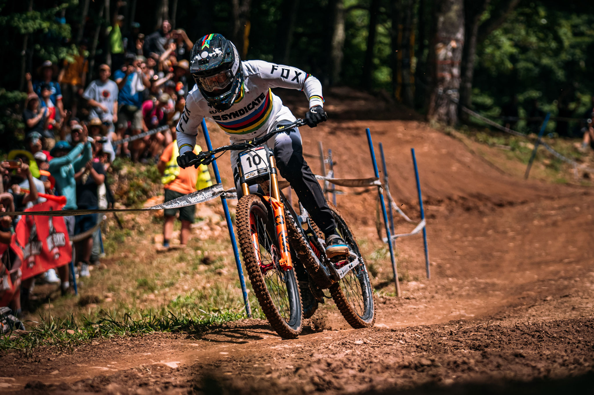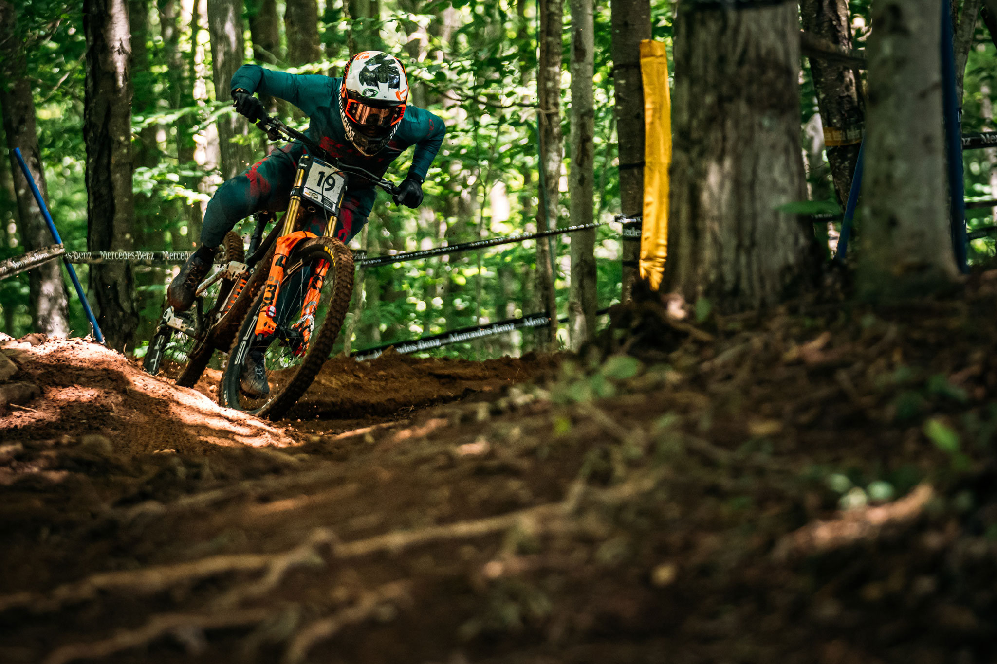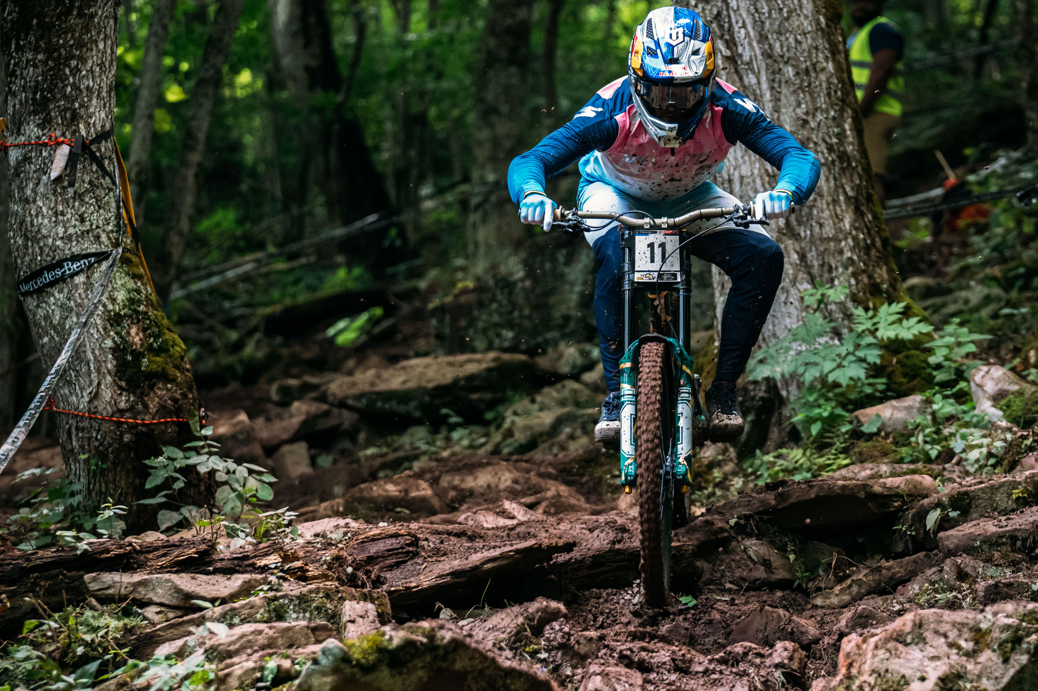 Un début de piste bien flow typé bikepark, suivi d’une nouvelle section intermédiaire plutôt intéressante mais plate et rendue très physique par la boue, puis une longue portion constituée d’une multitude de pierriers ultra-délicats à négocier, et enfin un final à nouveau flow et rapide : tout était réuni à Snowshoe (USA) pour qu’on vive une finale spectaculaire (et stressante). On n’a pas été déçus…