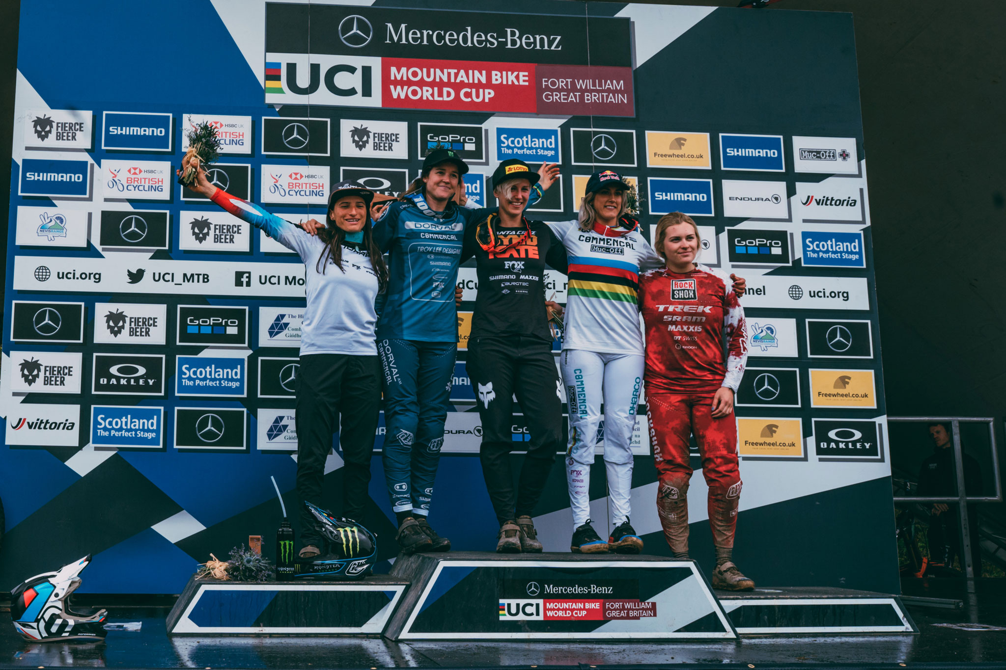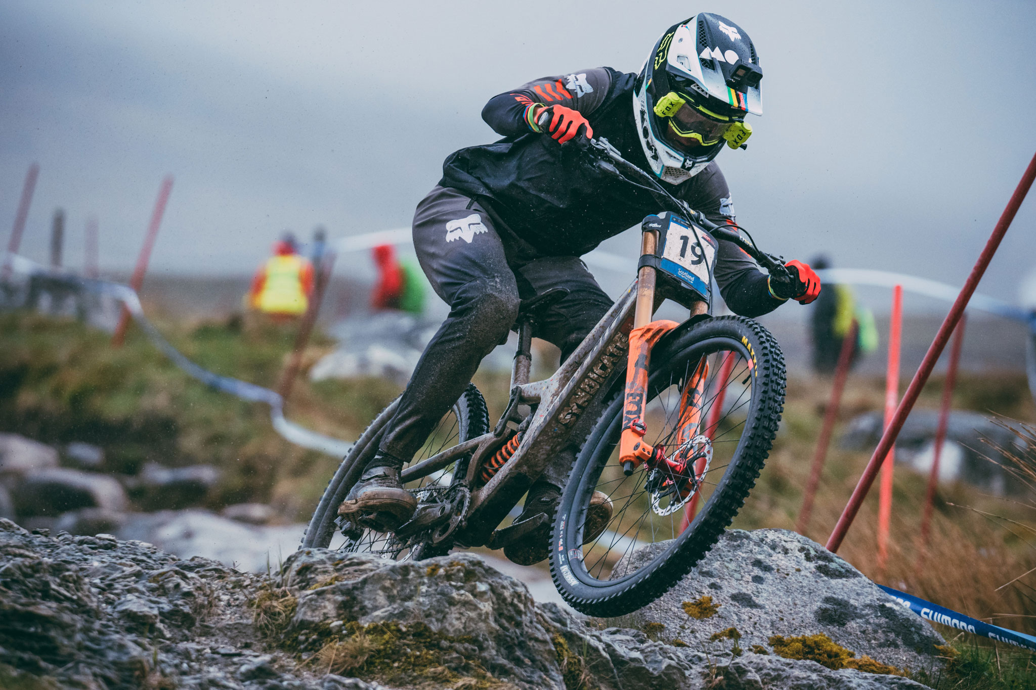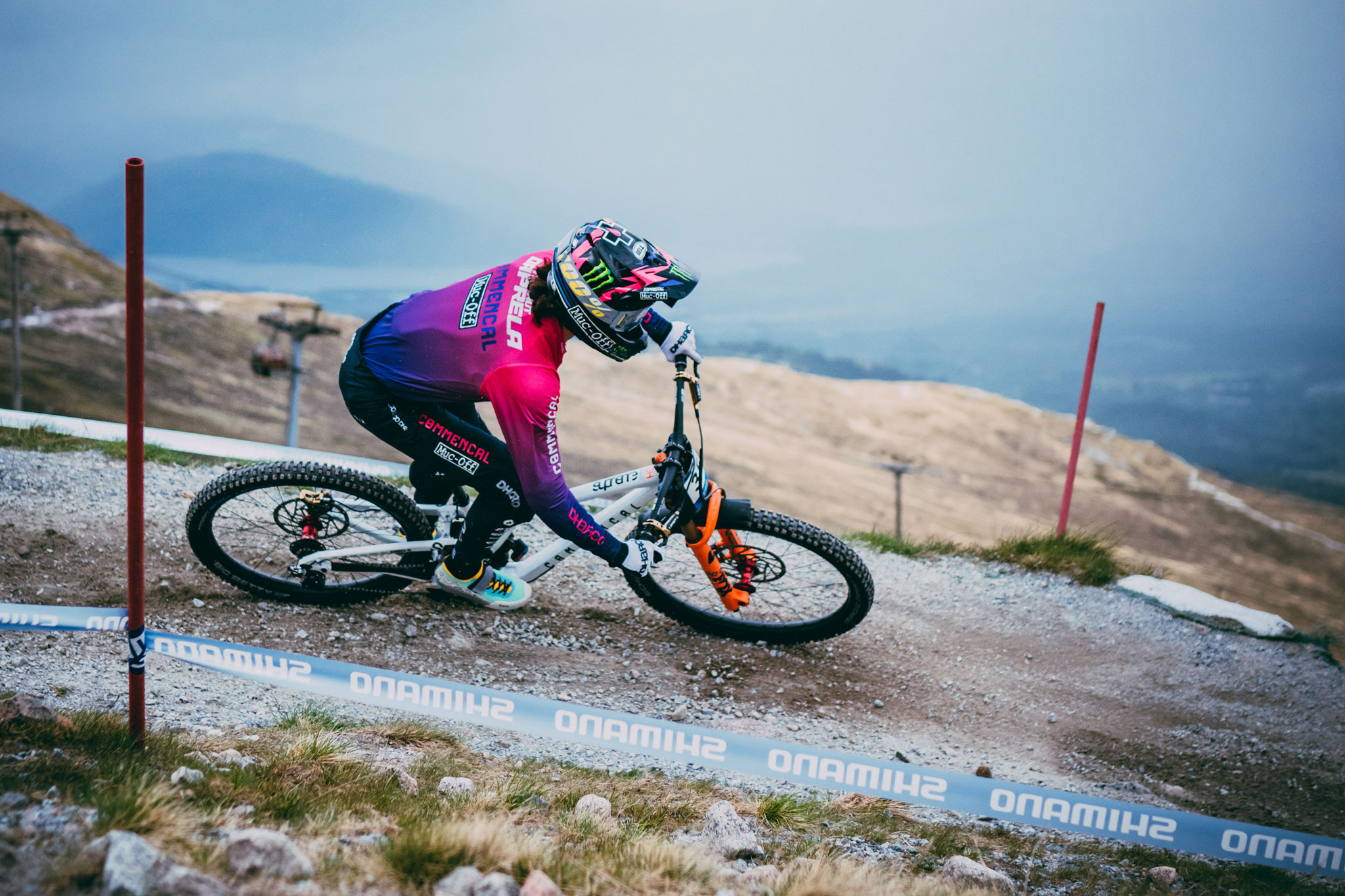 N’ayons pas peur des mots, la piste de Fort William est un véritable monstre. Il y a les chiffres d’abord : 2.8km de long pour un dénivelé négatif de 550 mètres. Il y a aussi ces rochers, énormes, âpres, innombrables, qui brassent les organismes sur une bonne partie de la descente. Ajoutez à ça le climat écossais fait de pluie, de vent et de froid – exacerbés sur les pentes du Ben Nevis qui n’est autre que le point culminant des îles britanniques avec ses 1345 mètres -, et tout est réuni pour faire de chaque manche disputée à Fort William une course d’anthologie. Et ce fut encore le cas cette année !