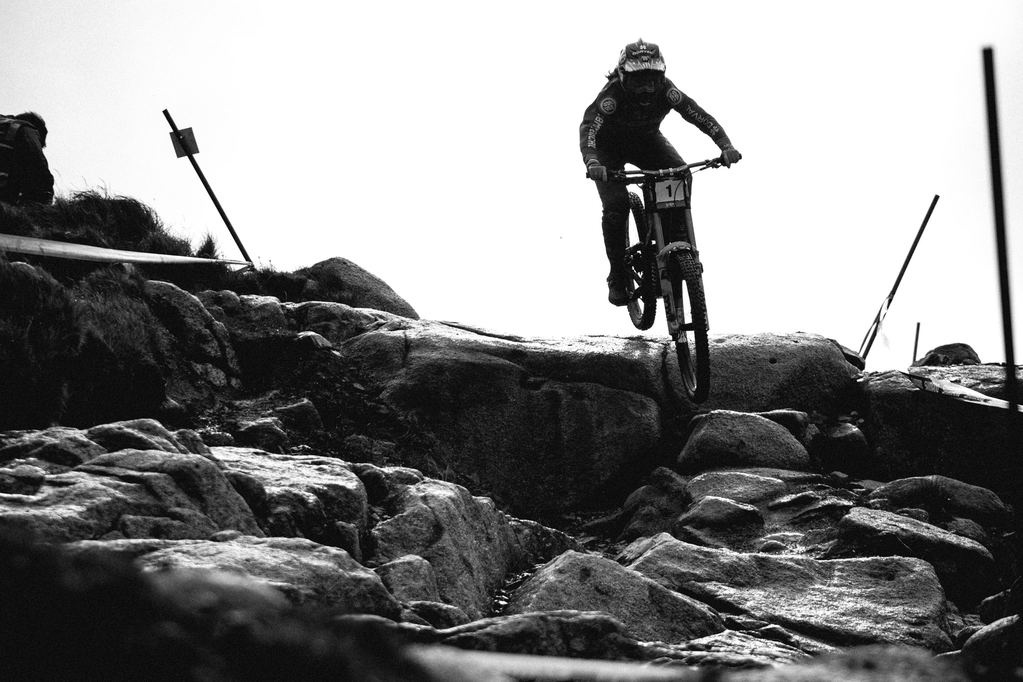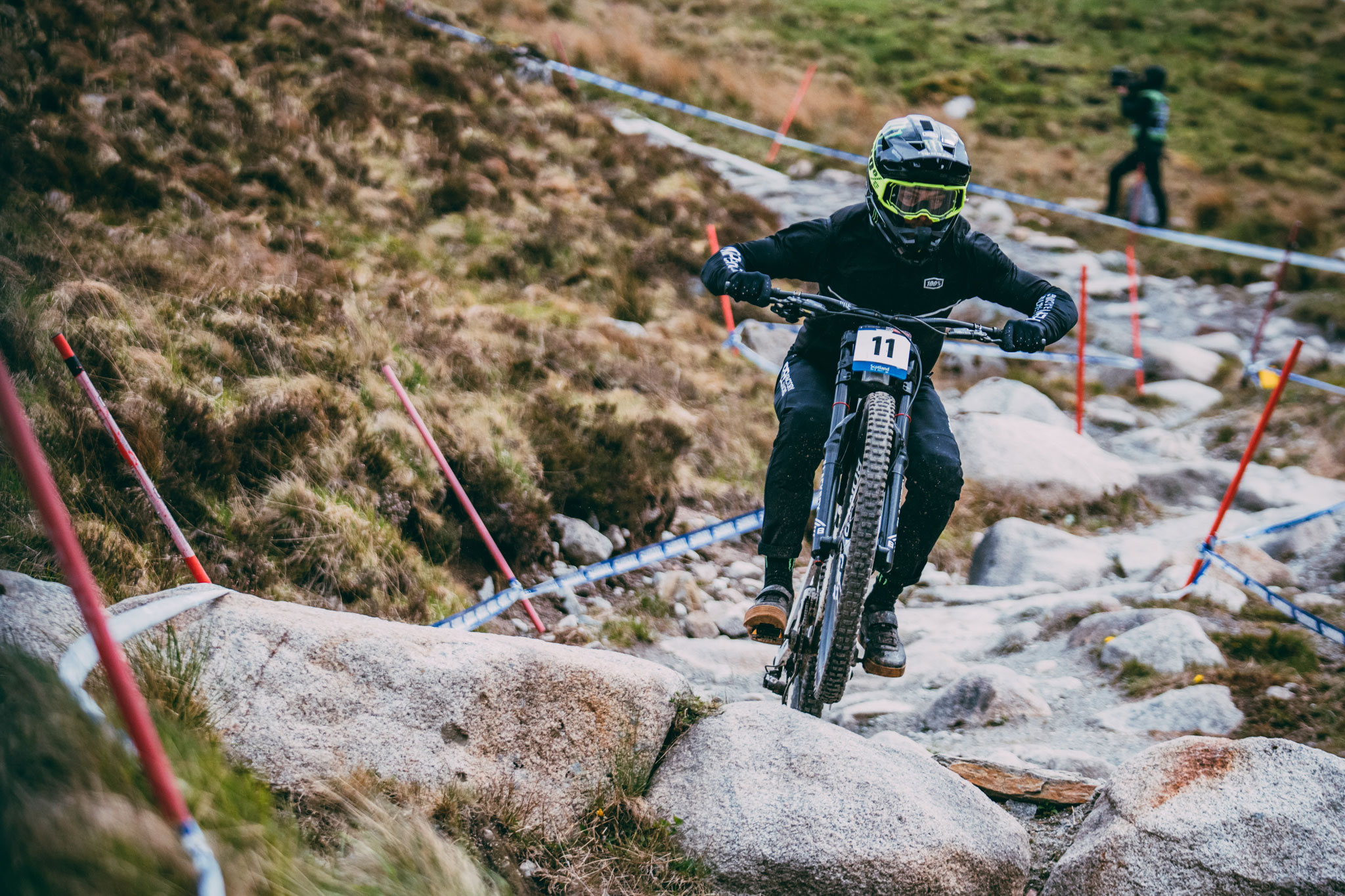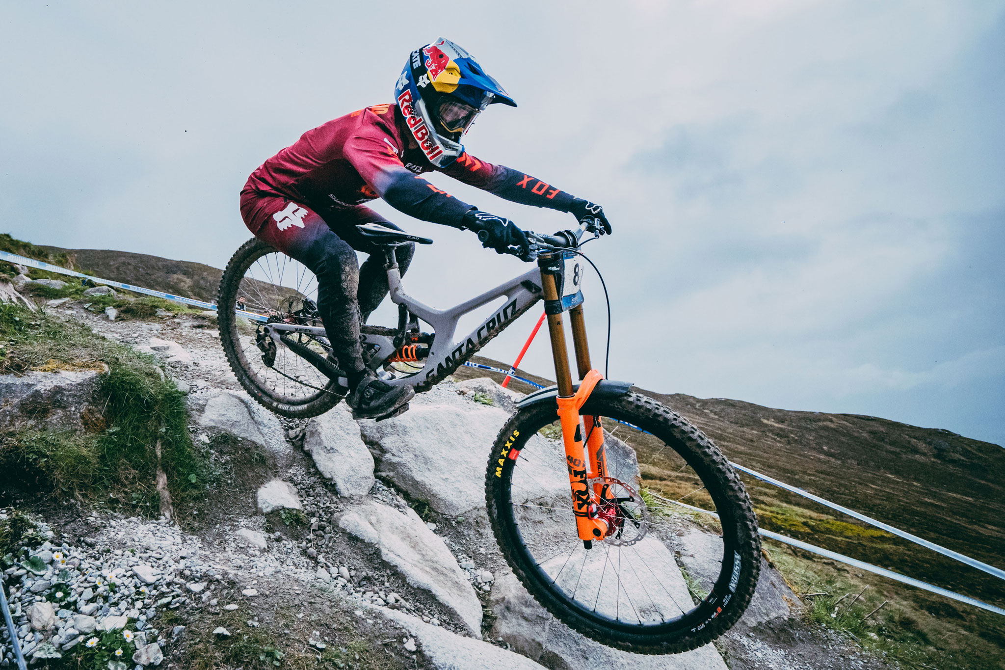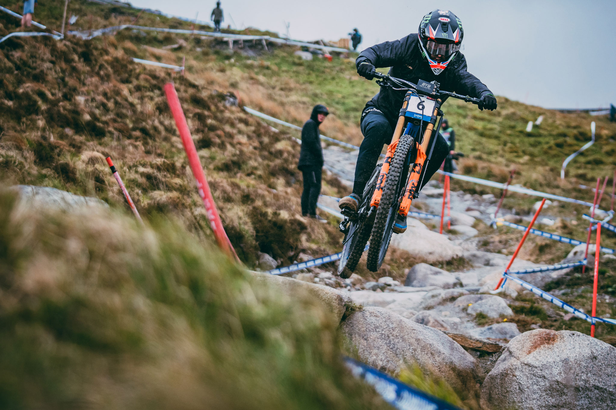 N’ayons pas peur des mots, la piste de Fort William est un véritable monstre. Il y a les chiffres d’abord : 2.8km de long pour un dénivelé négatif de 550 mètres. Il y a aussi ces rochers, énormes, âpres, innombrables, qui brassent les organismes sur une bonne partie de la descente. Ajoutez à ça le climat écossais fait de pluie, de vent et de froid – exacerbés sur les pentes du Ben Nevis qui n’est autre que le point culminant des îles britanniques avec ses 1345 mètres -, et tout est réuni pour faire de chaque manche disputée à Fort William une course d’anthologie. Et ce fut encore le cas cette année !