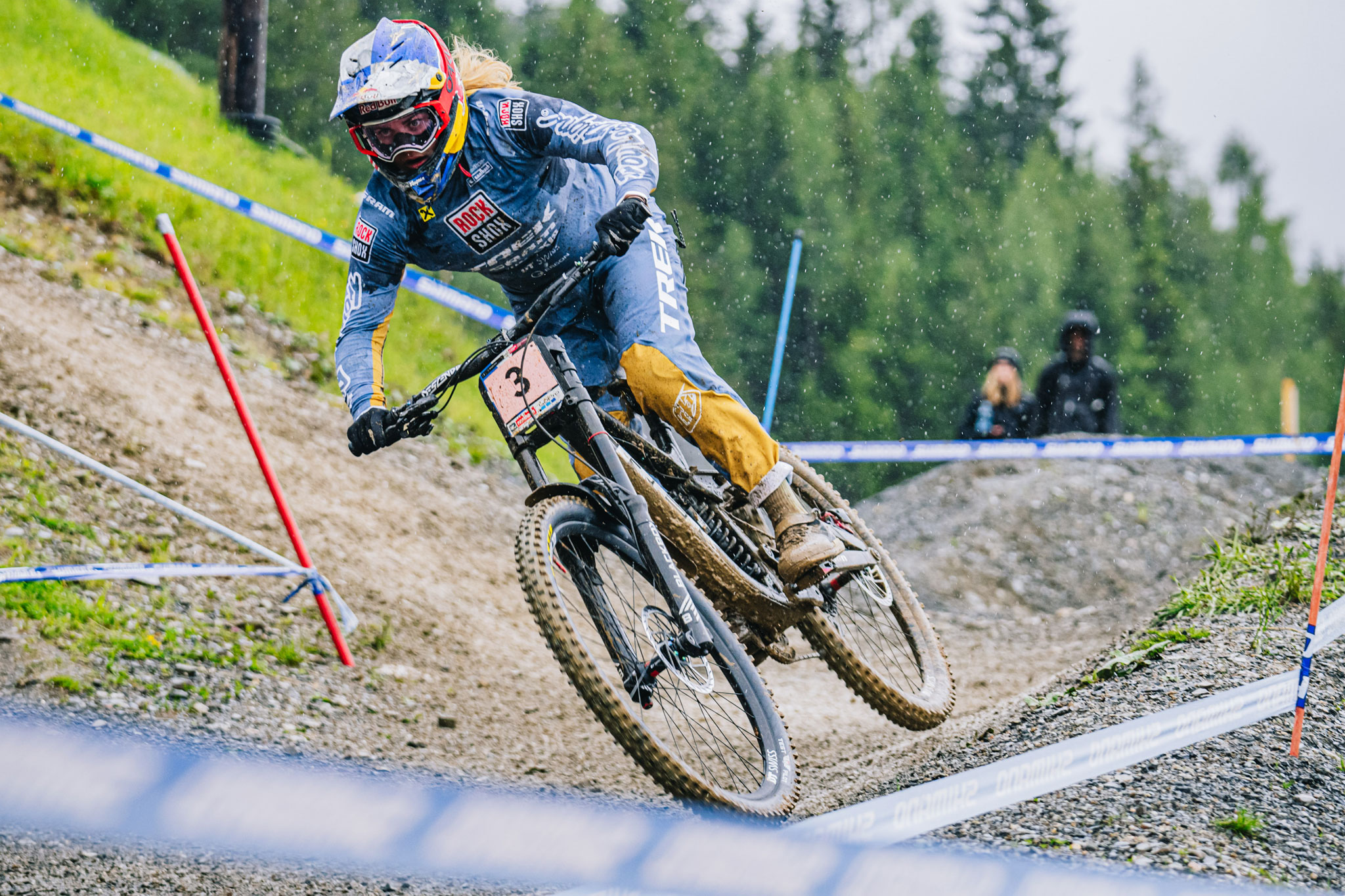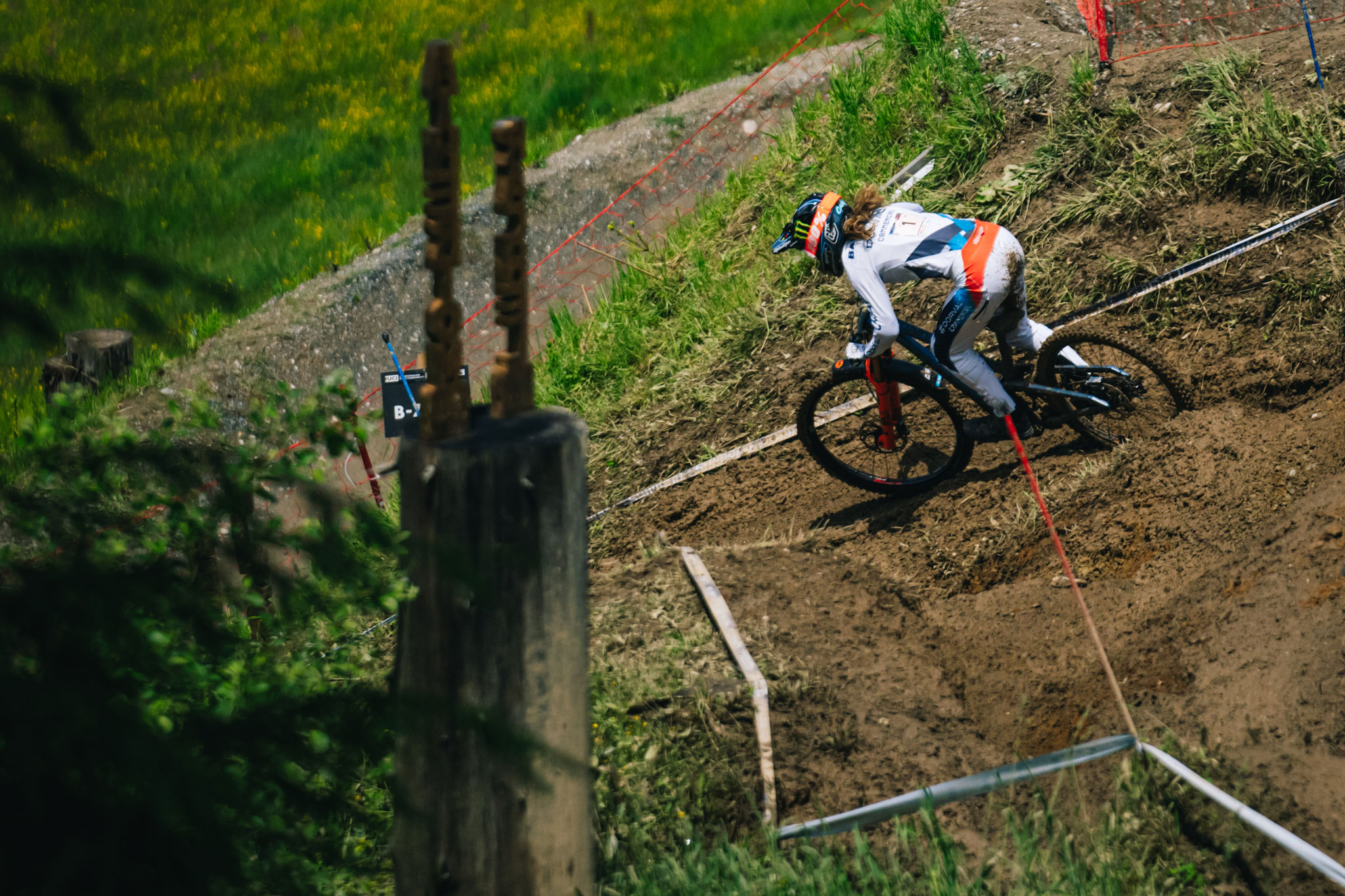 Après plusieurs jours de pluie, le soleil est enfin de retour à Leogang ! Résultat, la piste est bien plus rapide que lors des qualifications. Les portions techniques restent malgré tout très délicates à négocier, surtout la section de souches en première partie de descente et le bois final pentu, bourré de racines et toujours bien glissant, poussant de nombreuses pilotes à la faute. Comme ces dernières années, ce seront les véritables juges de paix de la course…