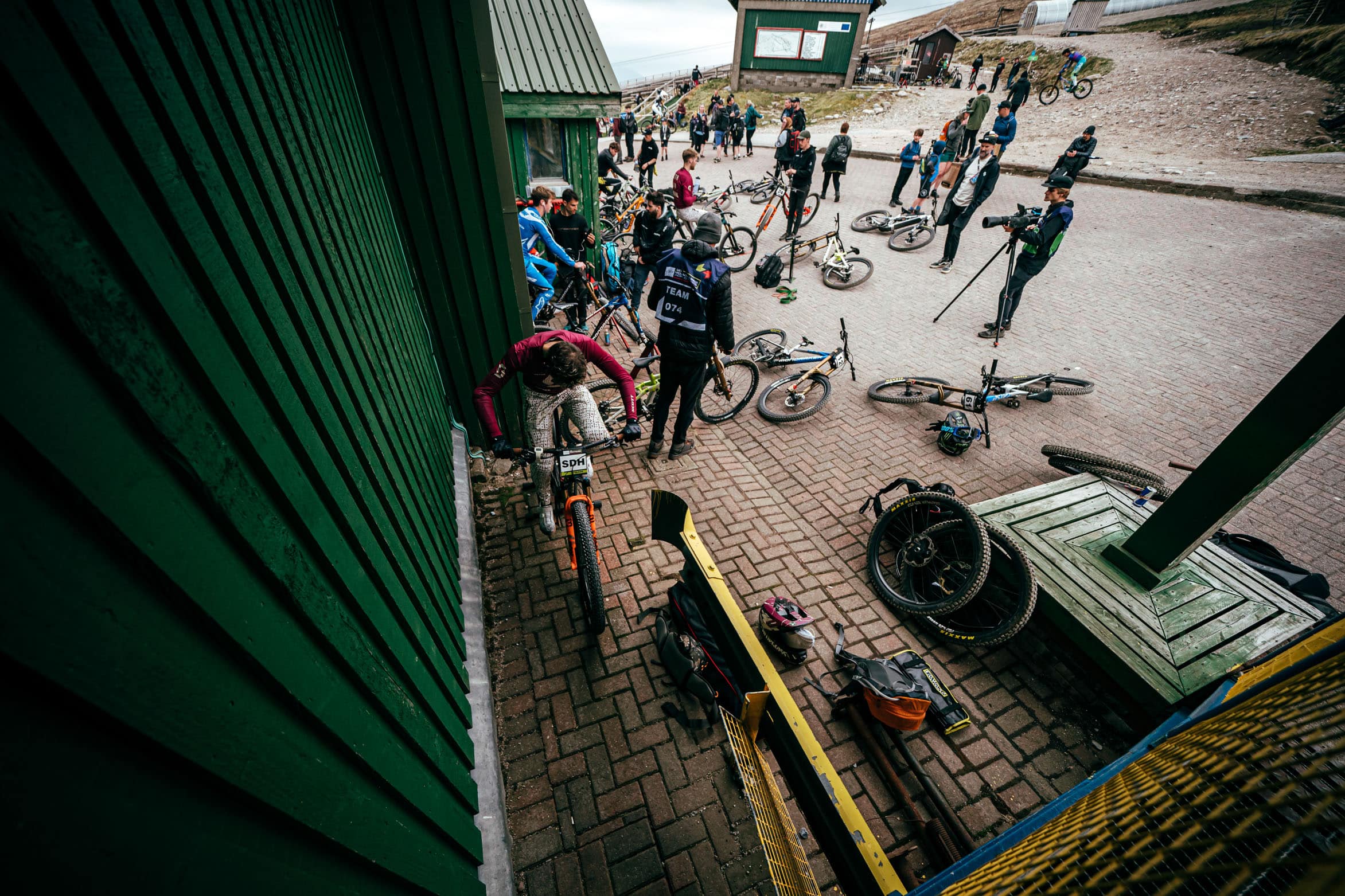 Avec un nouvel agencement de week-end de course pour cette année, le programme du samedi était particulièrement chargé pour les pilotes Élites à la veille de la manche finale, enchaînant la manche de qualifications (14h) et les demi-finales directement dans la foulée (16h). Une organisation qui laisse peu de marge aux pilotes et à leurs mécaniciens pour travailler sur le vélo, mais également pour tout le travail de débriefing avec le reste de l’équipe, etc. Pour rappel, les qualifications réduisent le nombre de pilotes prenant le départ des demi-finales à 60, tandis que les demi-finales portent ce nombre à 30 pilotes pour les Hommes et 10 chez les Femmes.