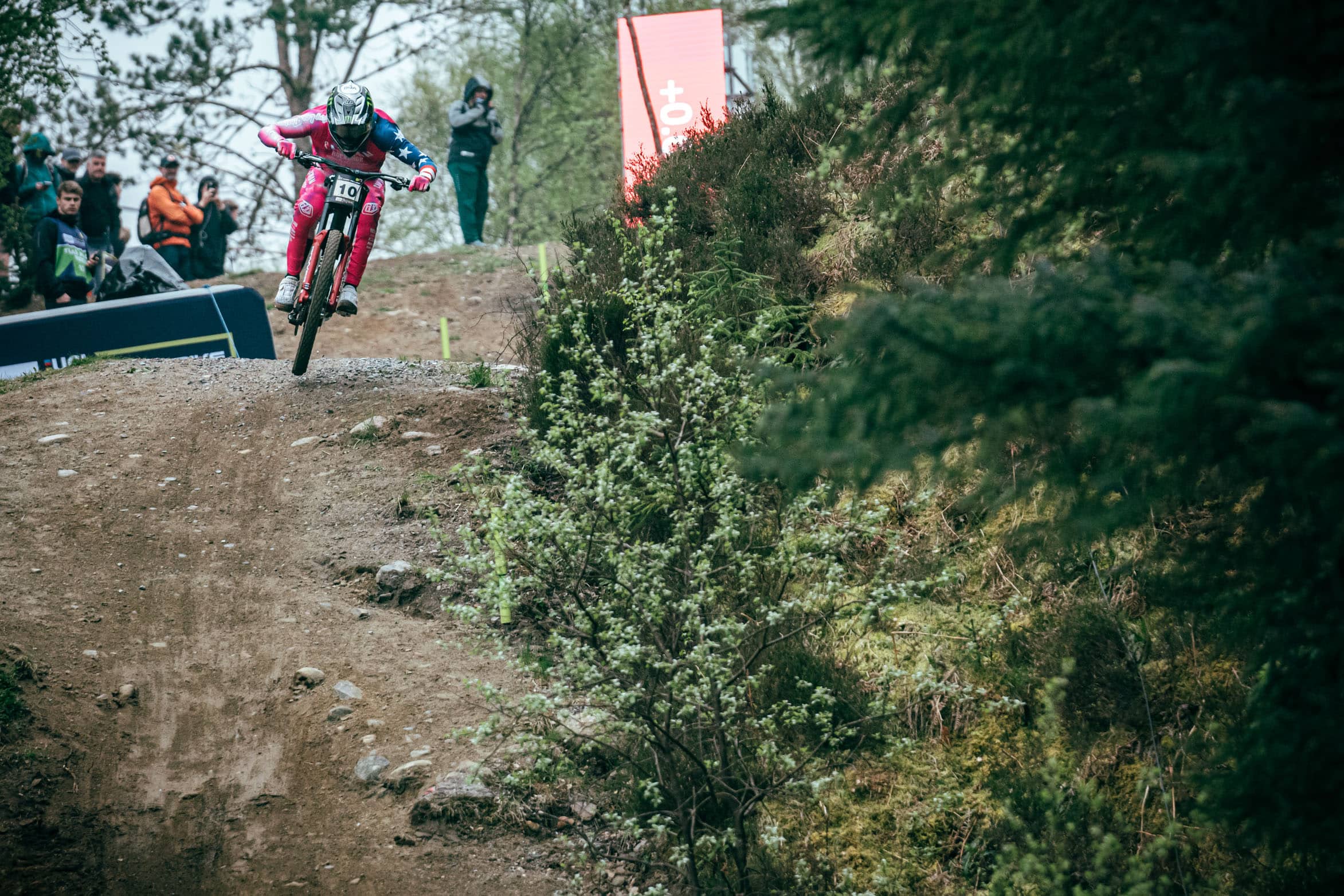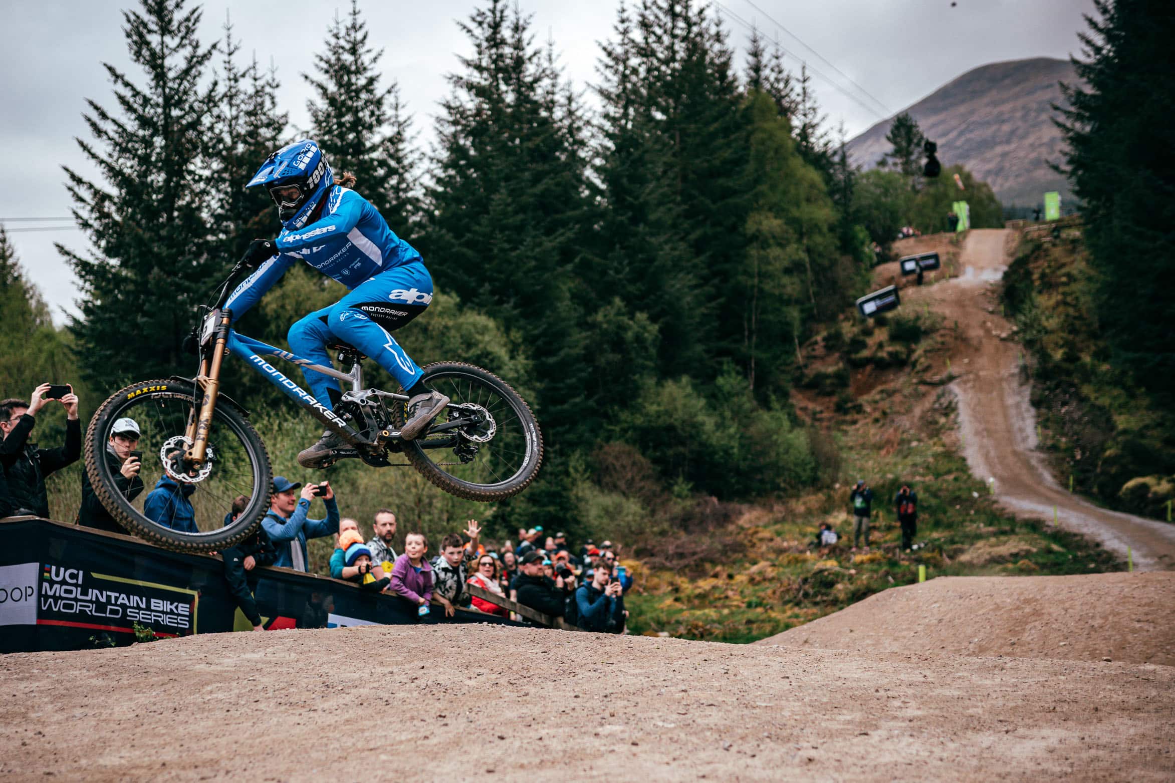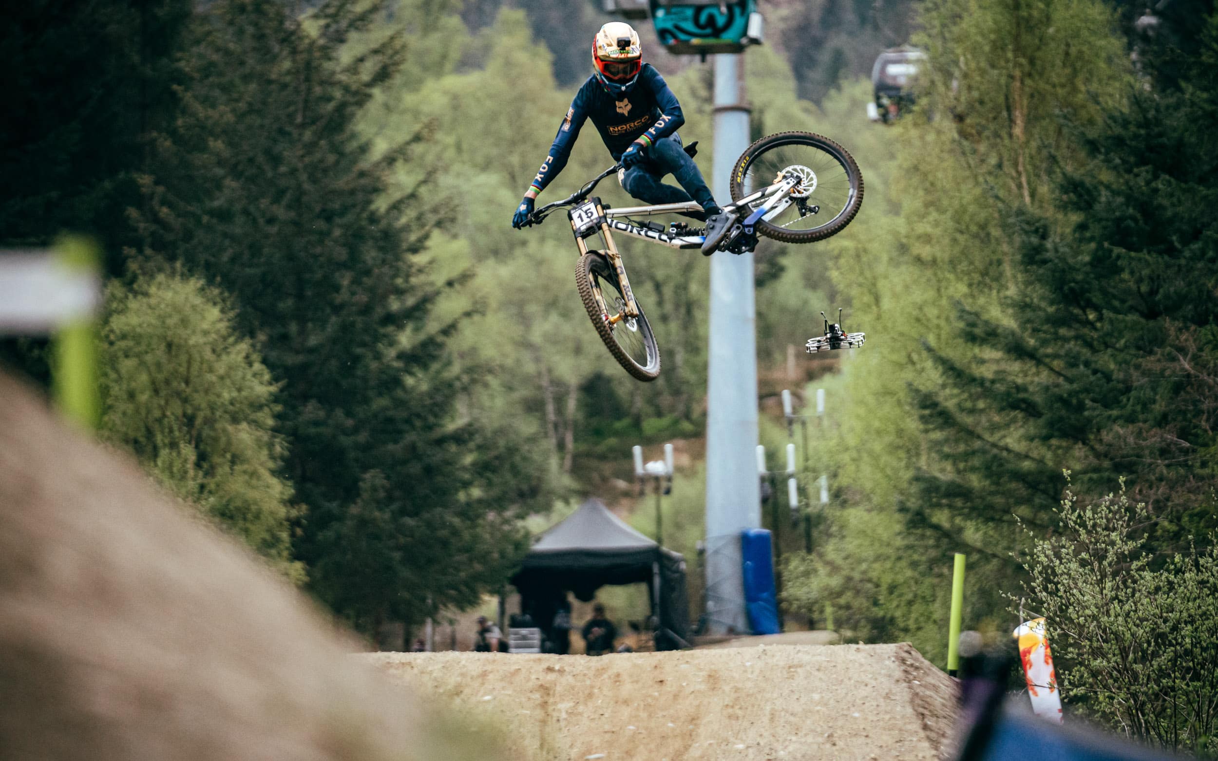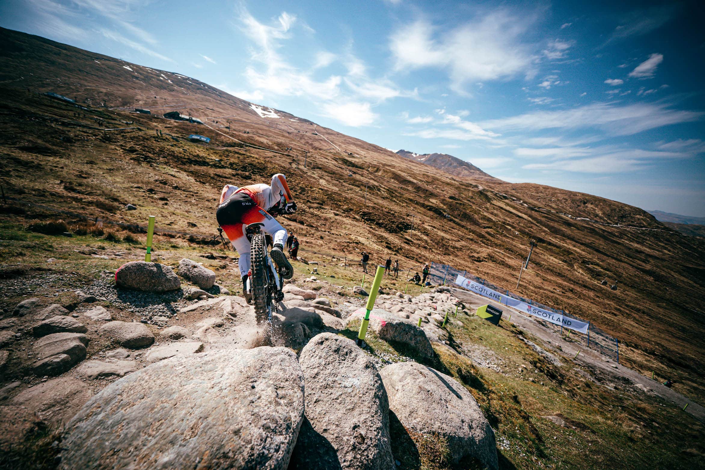 L’exigeante et piégeuse piste écossaise surprendra également Henry Kerr, qui part à la faute juste après avoir signé un rapide premier secteur. Le pilote du Canyon CLLCTV Pirelli se relèvera lui aussi rapidement pour terminer son run, sans pouvoir encore toutefois prétendre à la victoire.