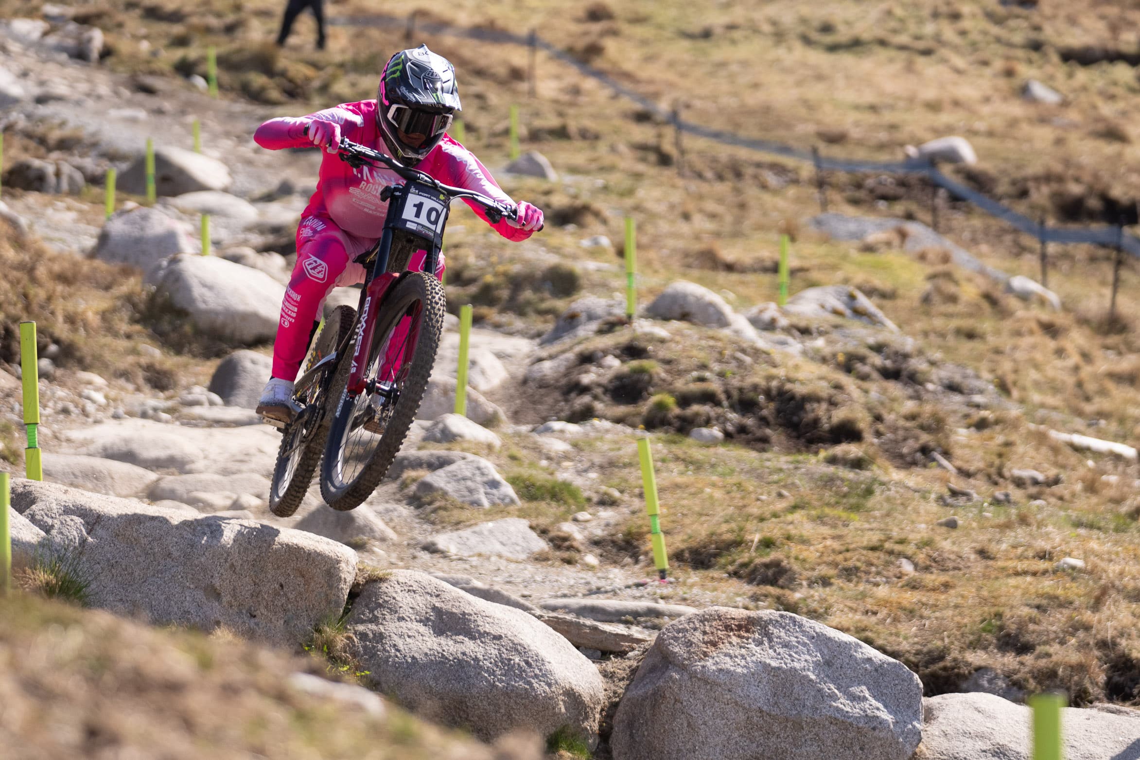 Avec quelques changements de tracé et un important travail d’entretien, la piste desservie par la télécabine du Nevis Range s’annonçait encore plus rapide qu’auparavant, avec une vitesse moyenne aux alentours des 40 km/h. Quoi qu’il en soit, cette piste écossaise conservait sa particularité première : être (très) physique de par sa longueur – 4min26s747 en finale des Mondiaux 2023 – mais également par son exigence pour le matériel, pour le corps et pour le mental avec ses nombreux obstacles et lignes à retenir et en constante évolution.