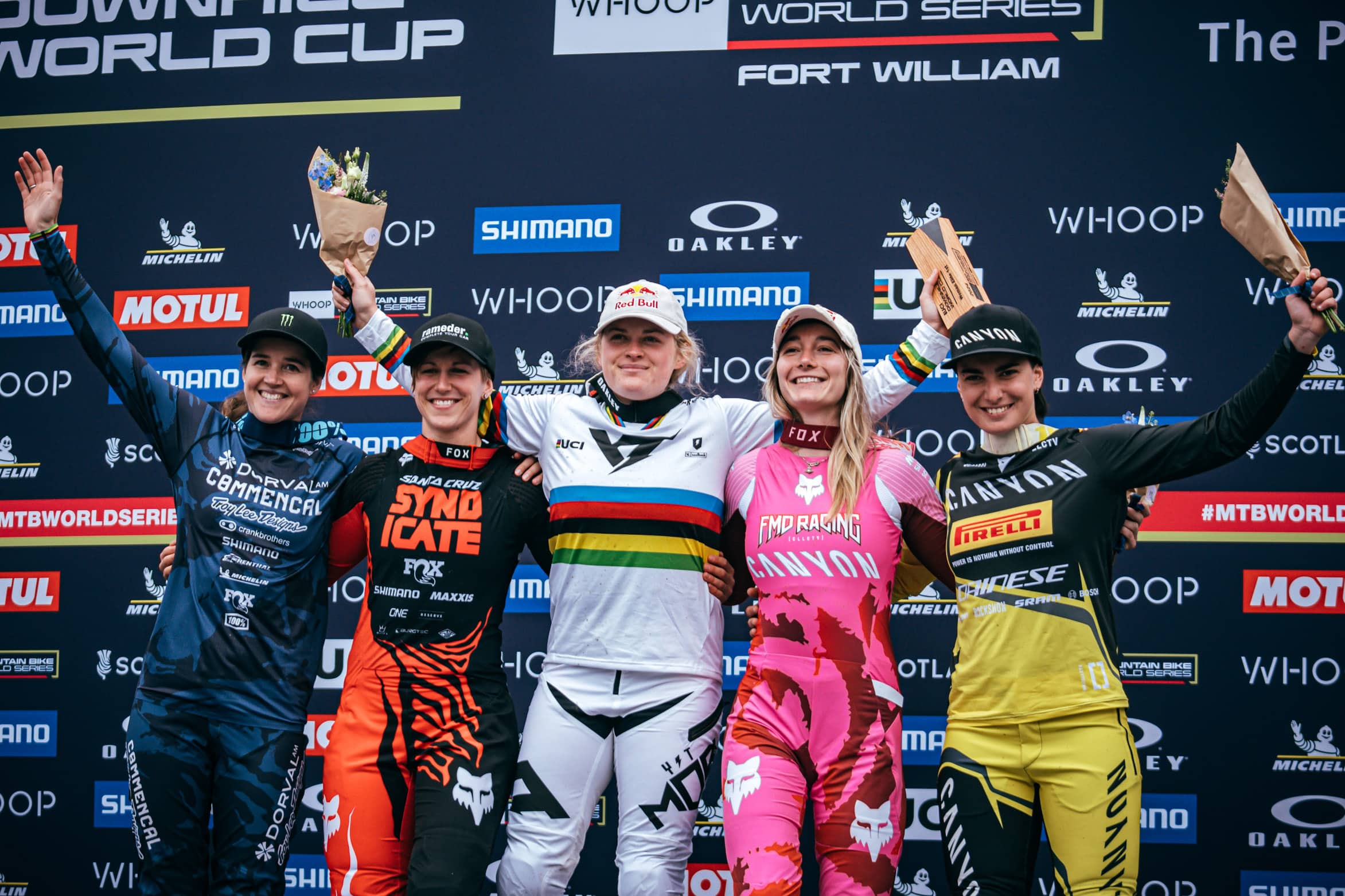 Et voici le podium au complet pour entourer Vali Höll, avec dans l’ordre Nina Hoffmann (2e), Tahnée Seagrave (3e), Camille Balanche (4e) et Gloria Scarsi (5e). Marine Cabirou échoue au pied de celui-ci en 6e position.