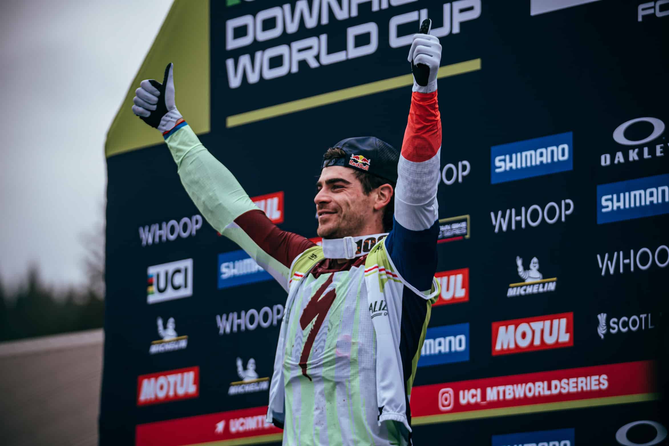 « Je n’ai jamais réussi à être très bon ici. J’étais un peu en difficulté avec les portions mouillées lors des derniers jours, mais aujourd’hui je me sentais bien. C’est un vrai accomplissement cette course. Je suis super heureux. La partie mentale de cette piste est si dure à gérer, mais aujourd’hui j’ai eu l’impression de survoler les rochers. J’ai tout donné et ça s’est bien passé. Finn Iles termine 3e, notre vélo fonctionne bien, on est là avec le team Specialized Gravity cette saison ! » confie le vainqueur du jour dans la raquette d’arrivée.