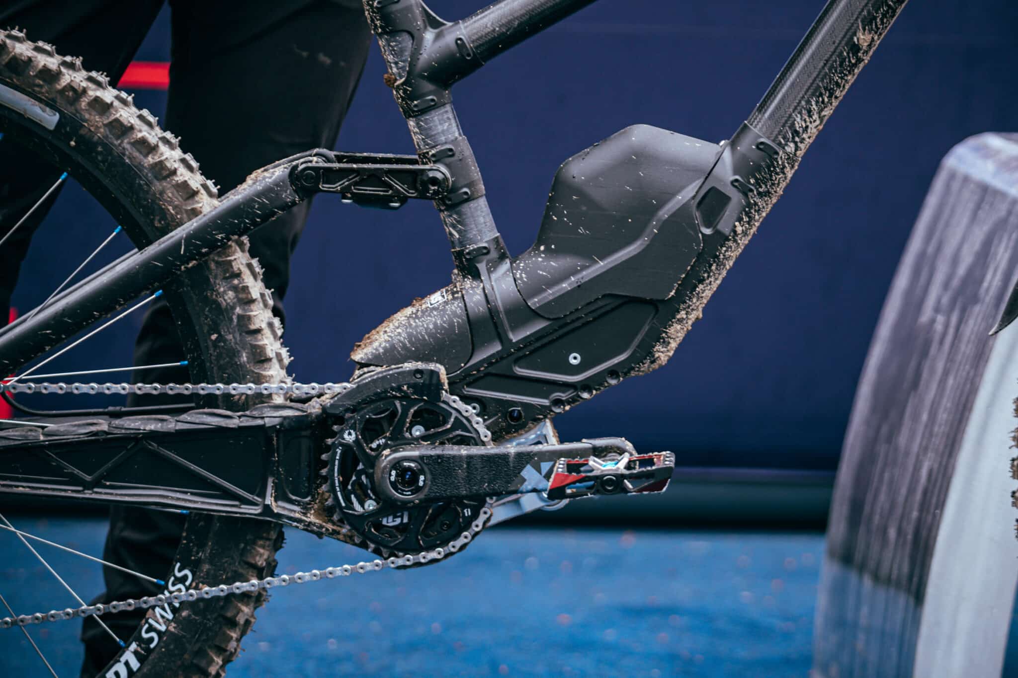 Un petit coup d’oeil au curieux Canyon Sender, au cadre différent du modèle actuel de série, et équipé de suspensions Rockshox disposant de la gestion électronique Flight Attendant.