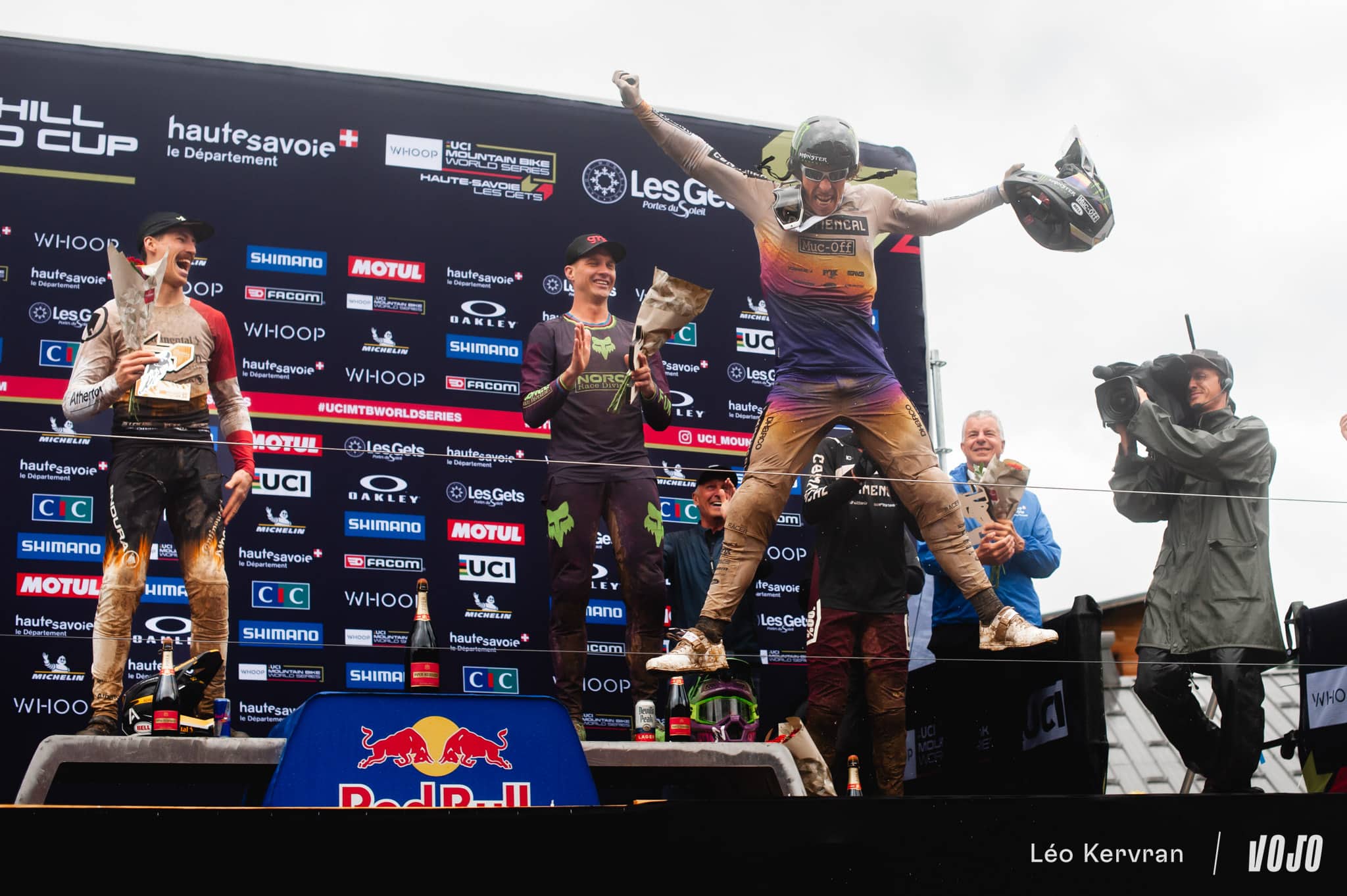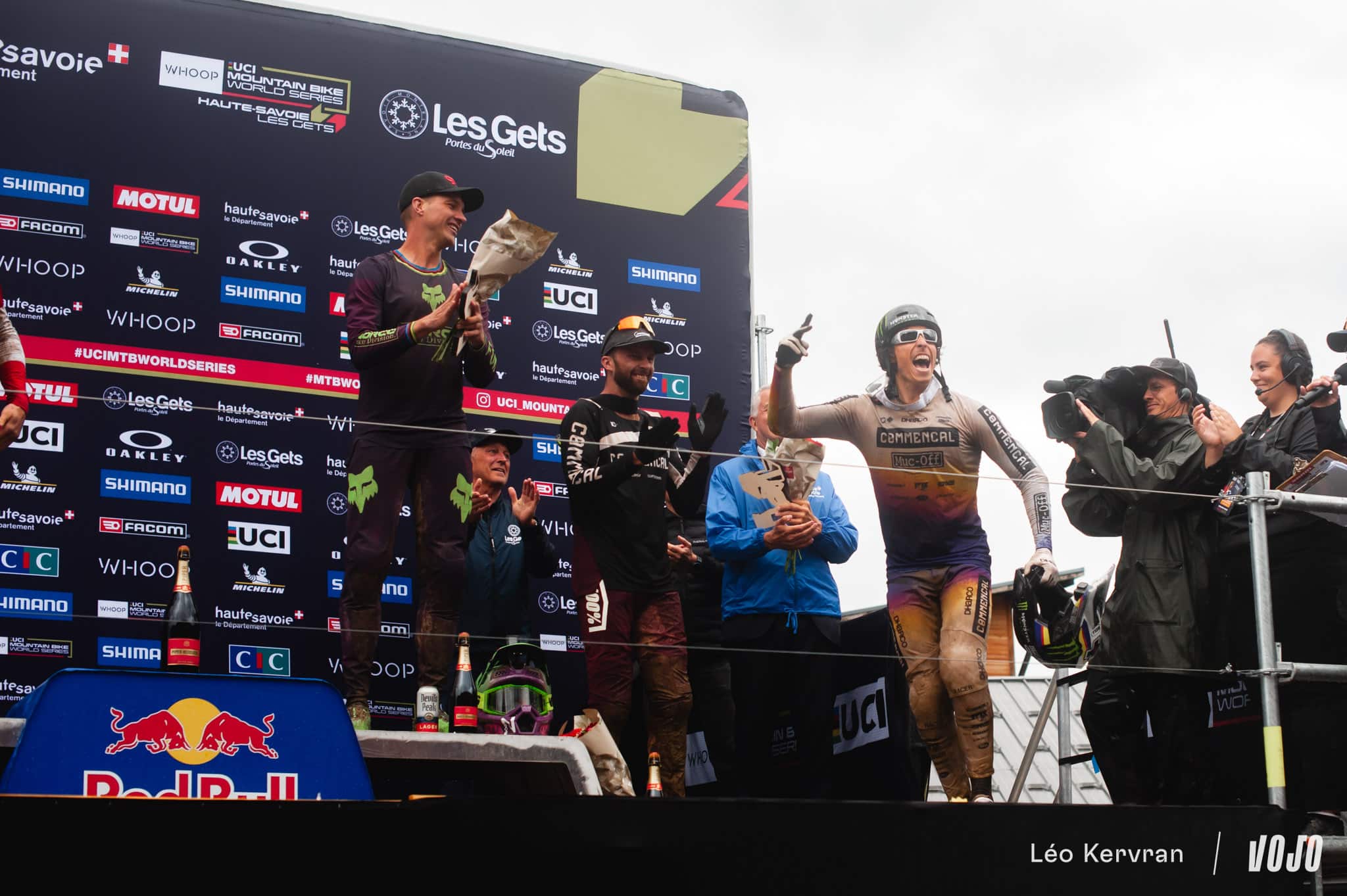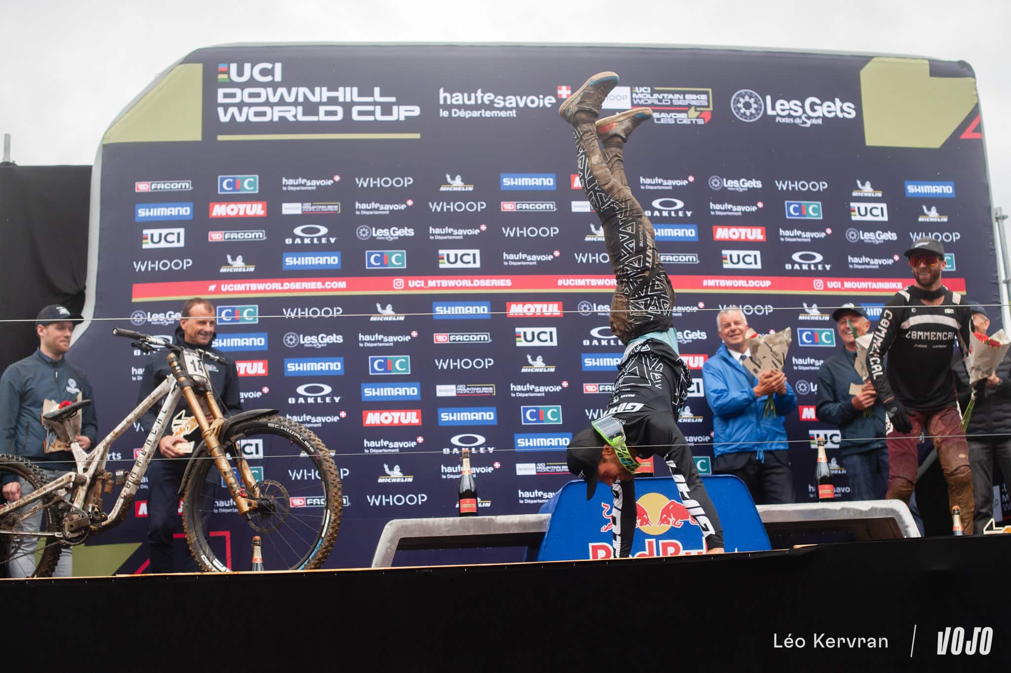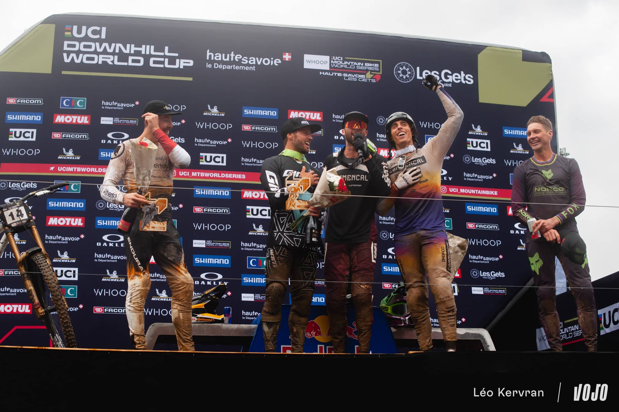 Et pour clôturer la journée en beauté, Loïc Bruni aura lui aussi droit à son passage sur le podium pour endosser le maillot de leader de la coupe du monde, qu’il mène devant… Amaury Pierron. Avec sa victoire, Pierron remonte en effet de la 4e à la 2e position, délogeant Finn Iles qui fait le chemin inverse. Troy Brosnan reste à la 3e place.
