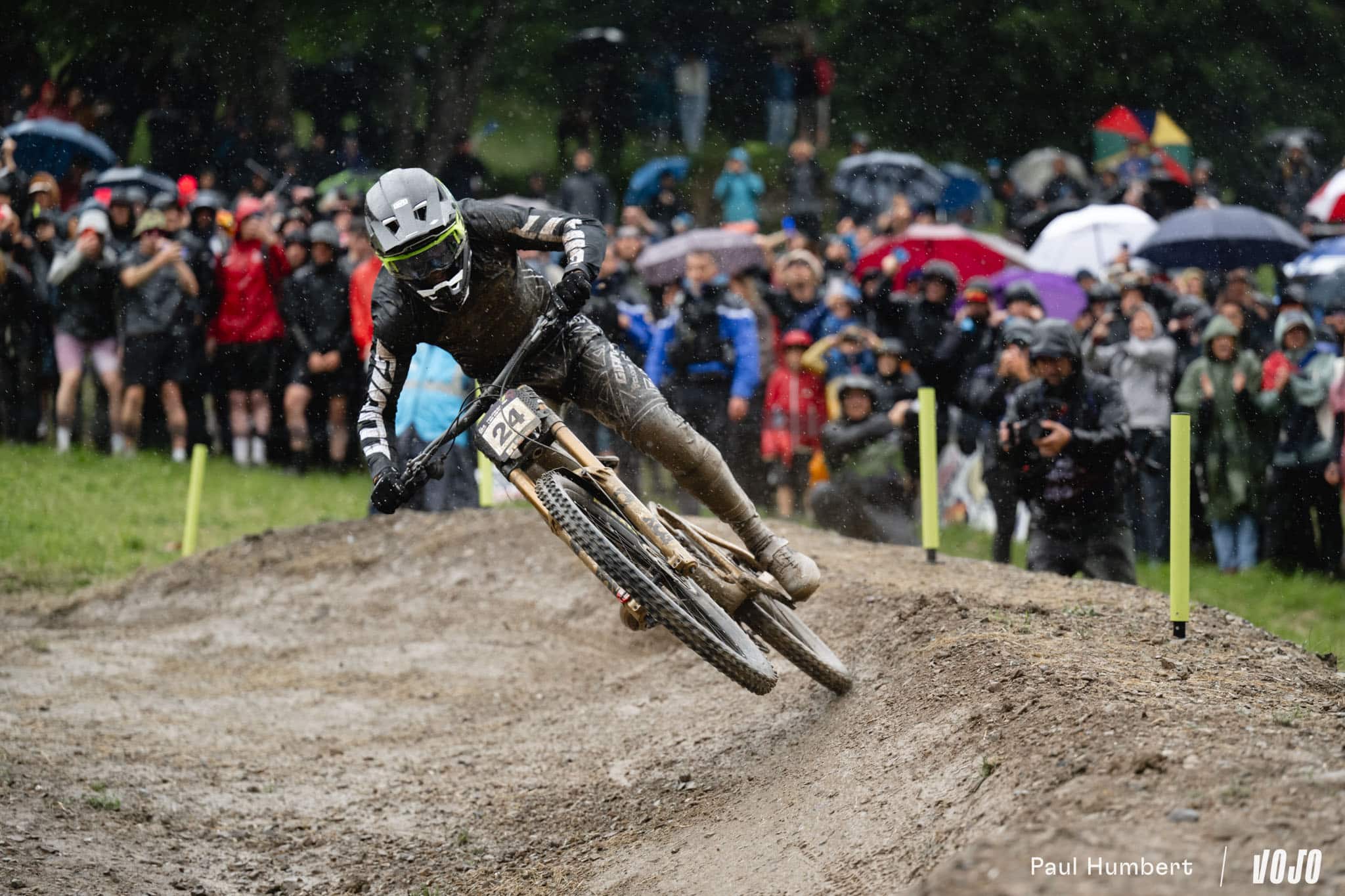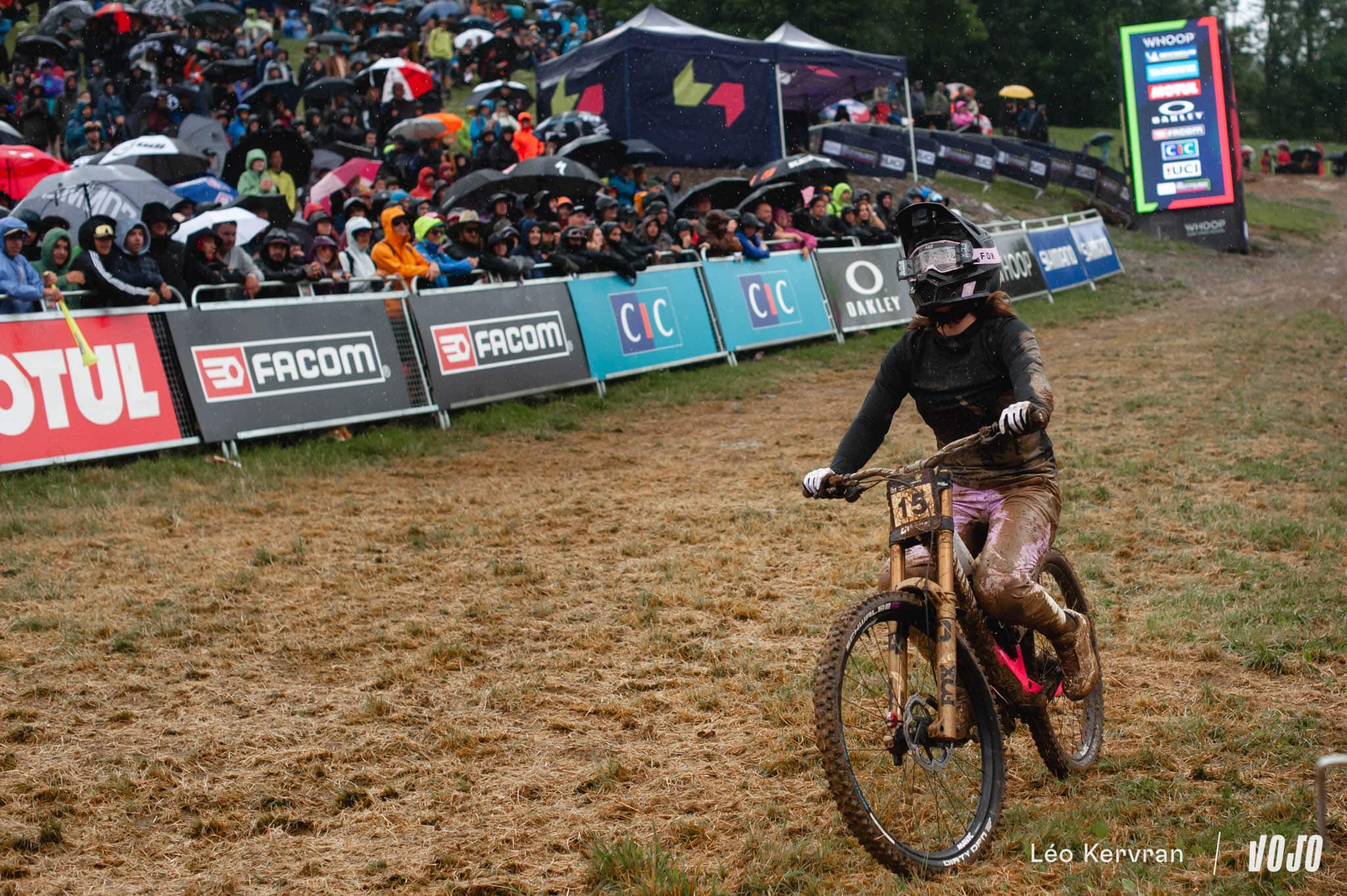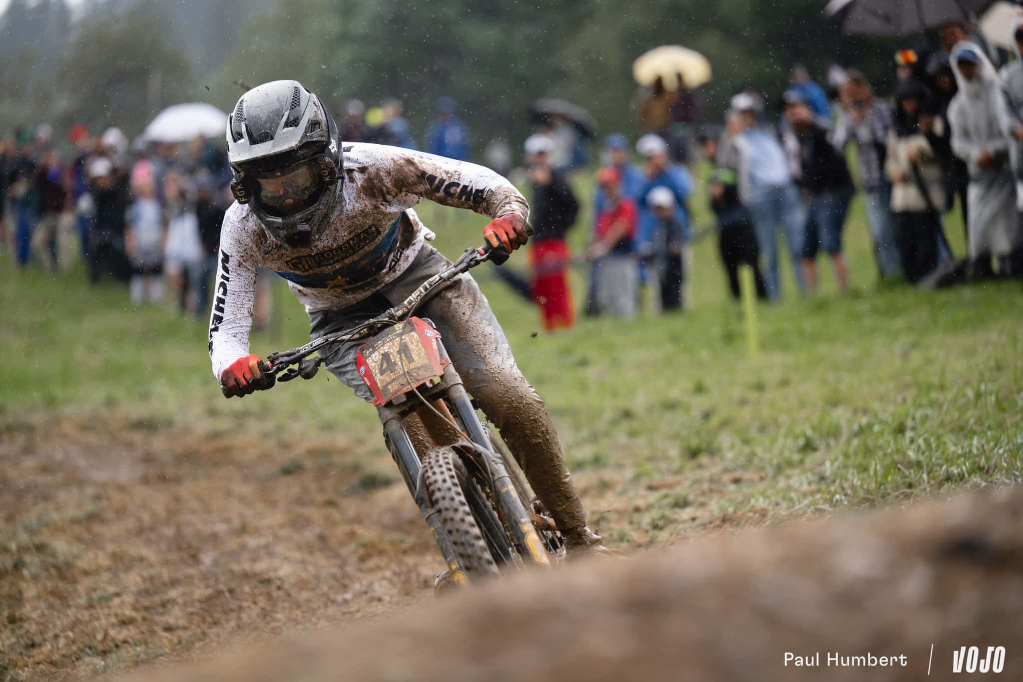 Peu après son passage, la pluie qui avait un peu faibli pour les dernières femmes forcit à nouveau et finit de tremper piste et spectateurs. Côté pilotes, le champion du monde Charlie Hatton part à la faute tout comme Bodhi Kuhn, Stefano Introzzi, Jack Piercy (qui disputait là sa toute première finale Elites), Davide Palazzari, Max Hartenstern, Bernard Kerr… Comme chez les femmes, l’hécatombe.