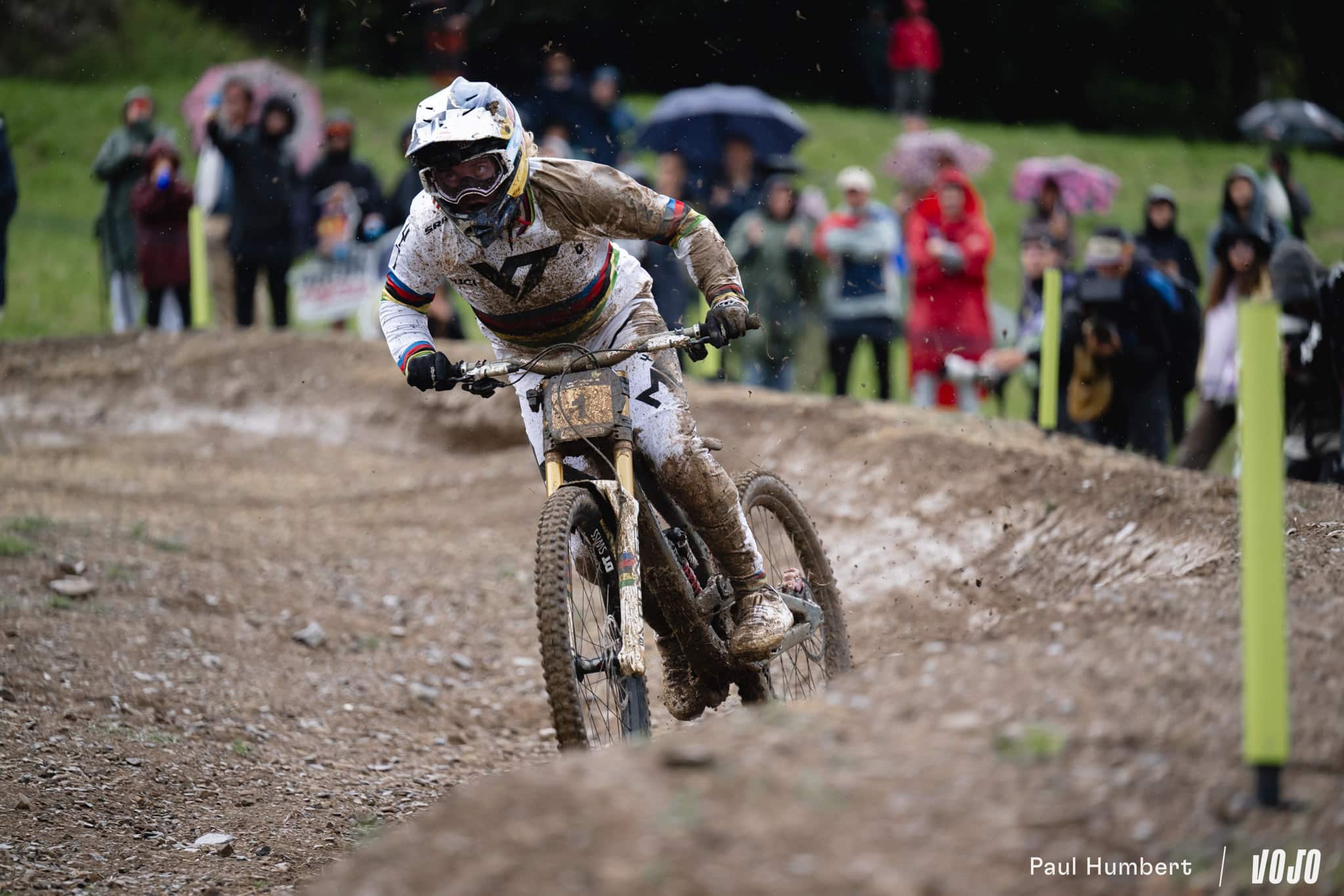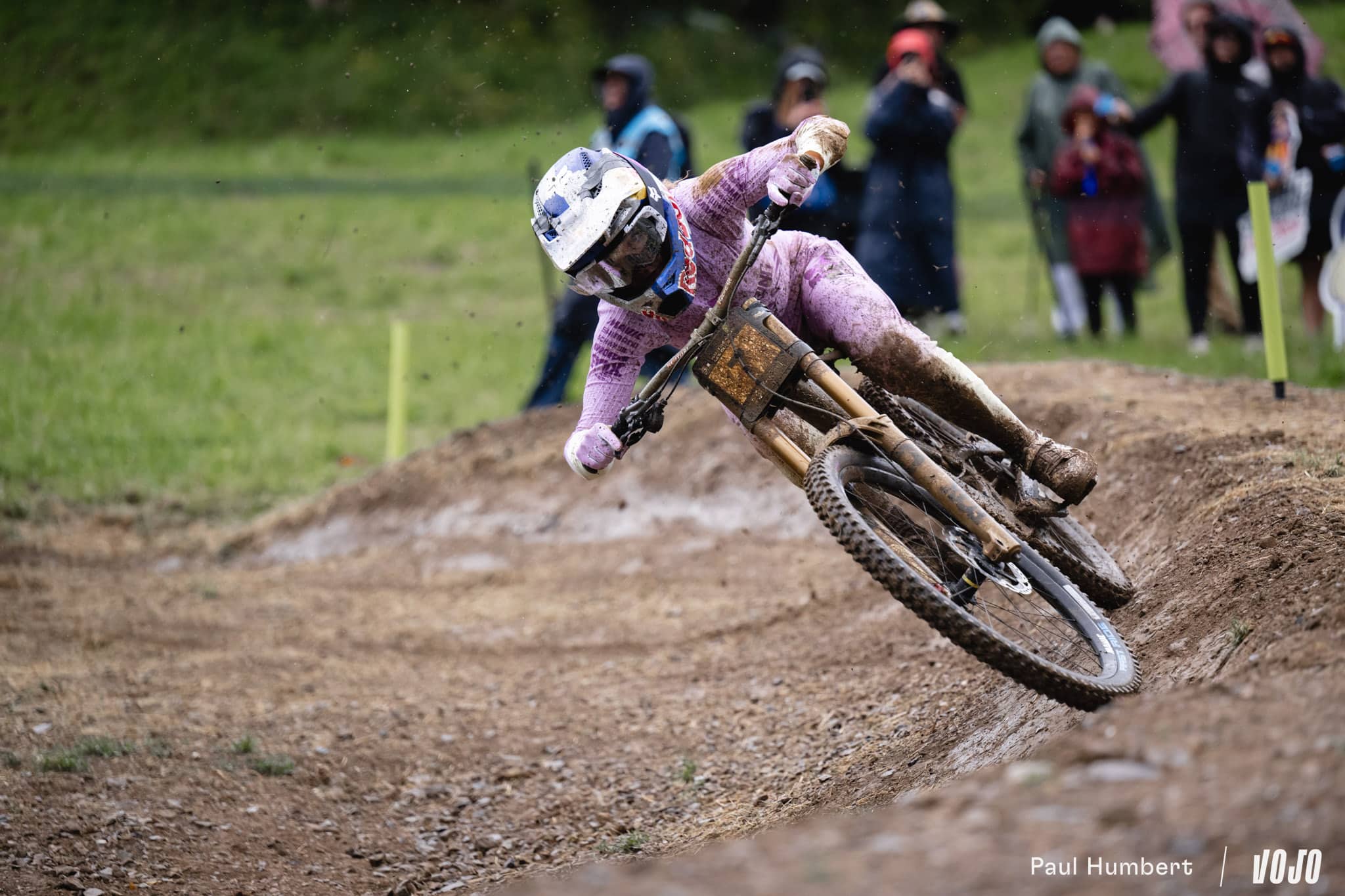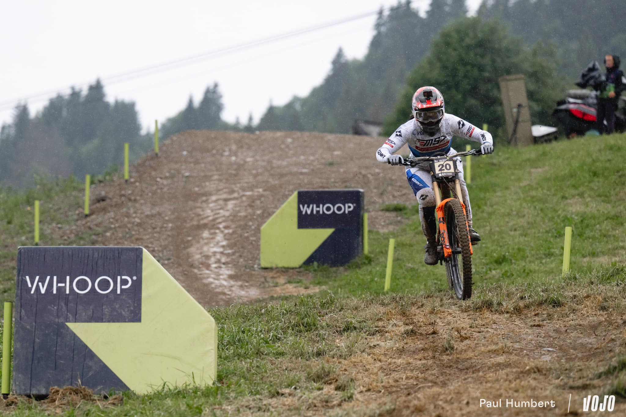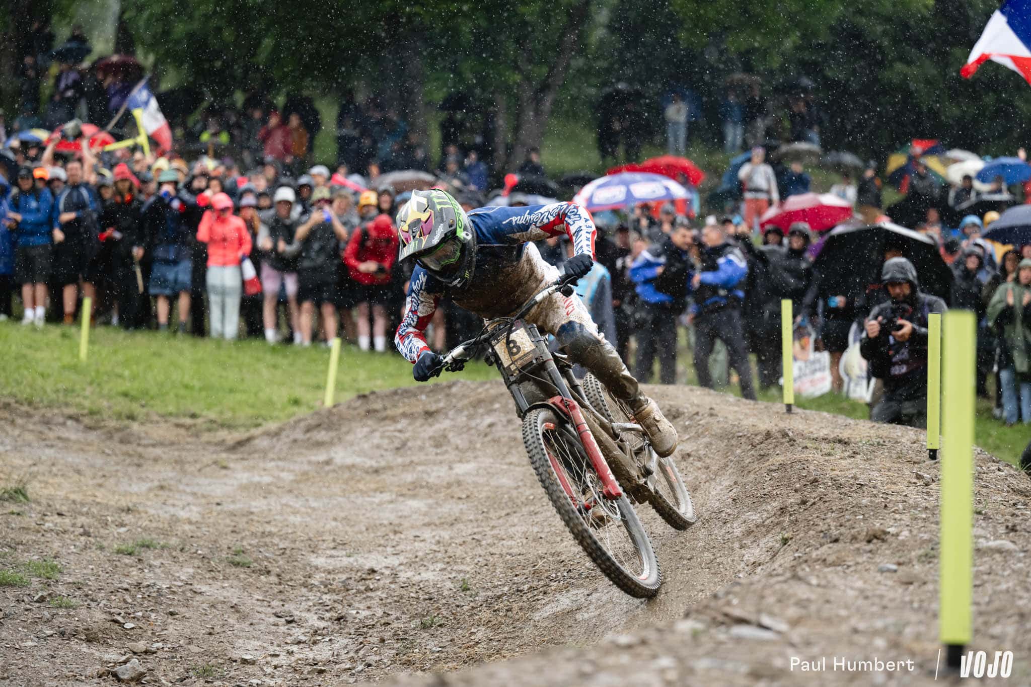 Peu après son passage, la pluie qui avait un peu faibli pour les dernières femmes forcit à nouveau et finit de tremper piste et spectateurs. Côté pilotes, le champion du monde Charlie Hatton part à la faute tout comme Bodhi Kuhn, Stefano Introzzi, Jack Piercy (qui disputait là sa toute première finale Elites), Davide Palazzari, Max Hartenstern, Bernard Kerr… Comme chez les femmes, l’hécatombe.