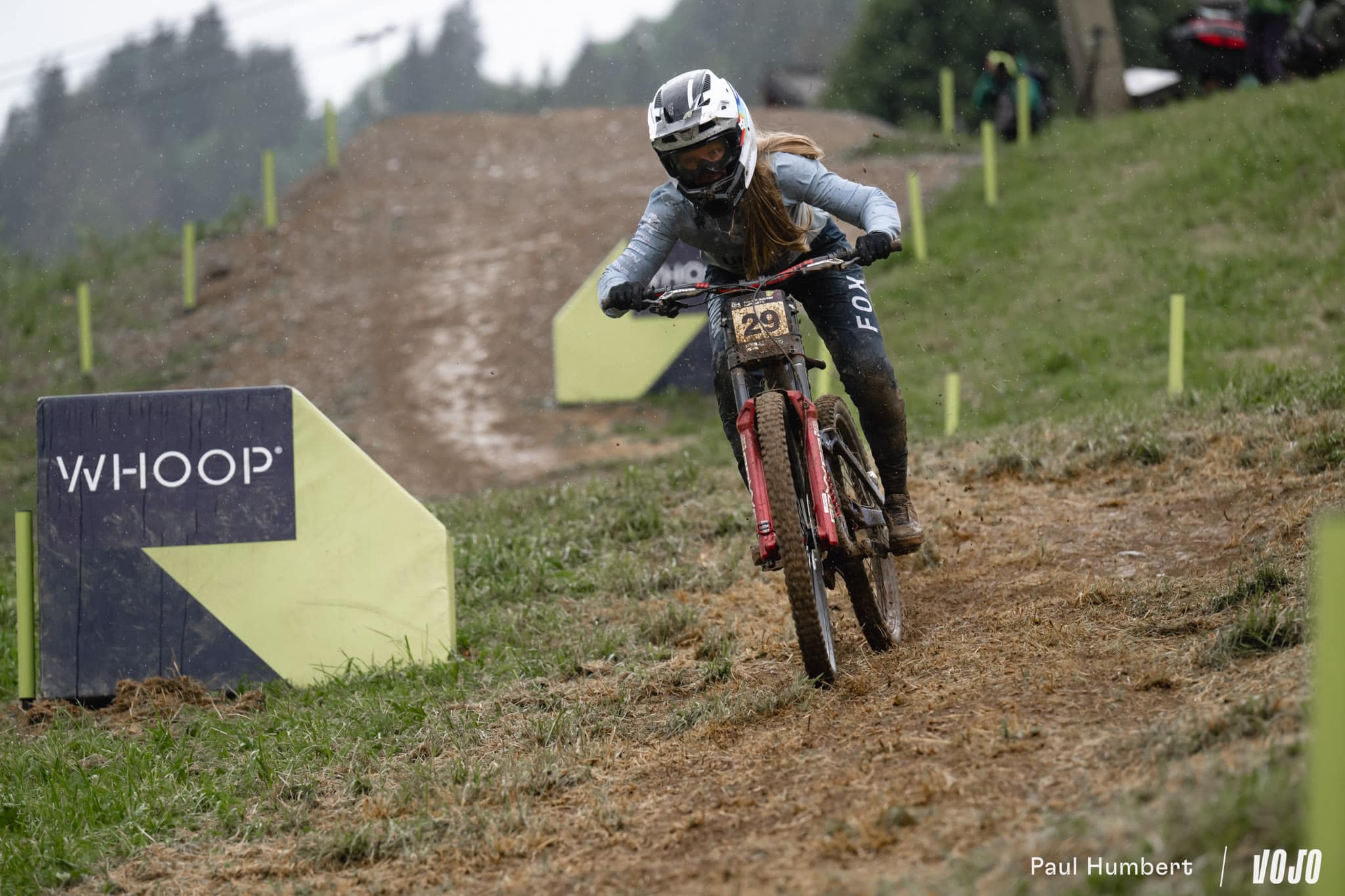 Deux chutes pour Rønning, une pour Ferguson… Si la piste apparaît encore poussiéreuse à certains endroits dans les bois, on comprend vite qu’elle est déjà une patinoire entre les racines saillantes et les sections exposées à la pluie.
