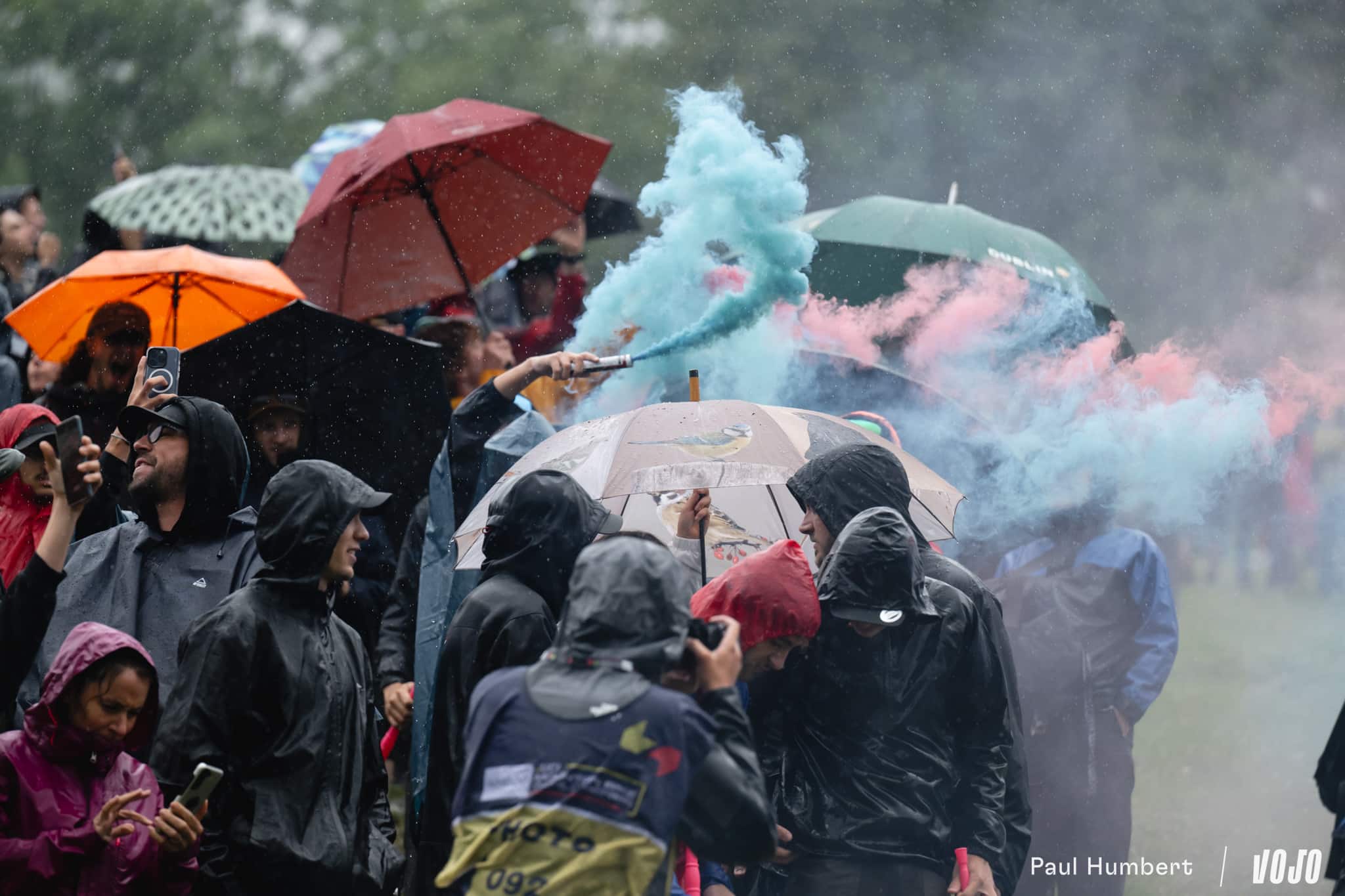 Néanmoins, la pluie n’a pas attendu la fin des finales pour s’inviter aux Gets et dès le milieu de matinée, environ une demi-heure avant le début de l’épreuve femmes, les parapluies et capuches commençaient déjà à apparaître. D’abord fine, elle a peu à peu gagné en intensité et ne s’est jamais réellement arrêtée avant les podiums en début d’après-midi.