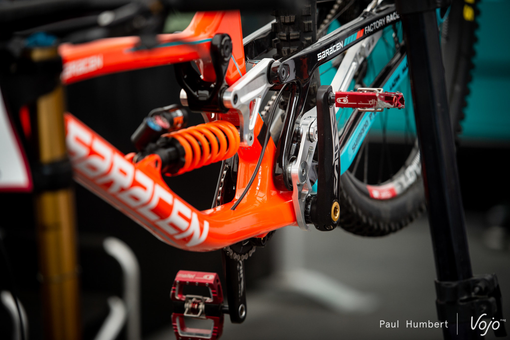 Chez Saracen, l’équipe qui accueille – entre autres – Danny Hart, c’est un étrier de frein arrière flottant qui équipe les vélos des pilotes. Le retour d’un système déjà vu en coupe du Monde de DH ?