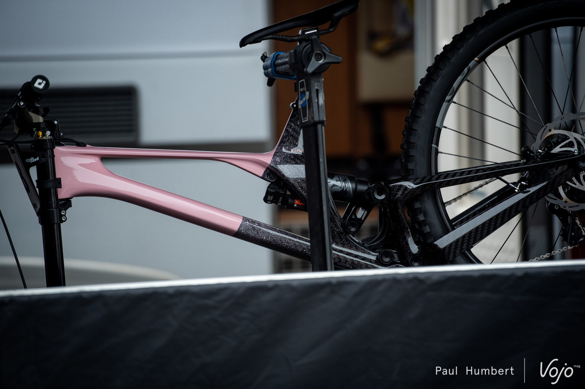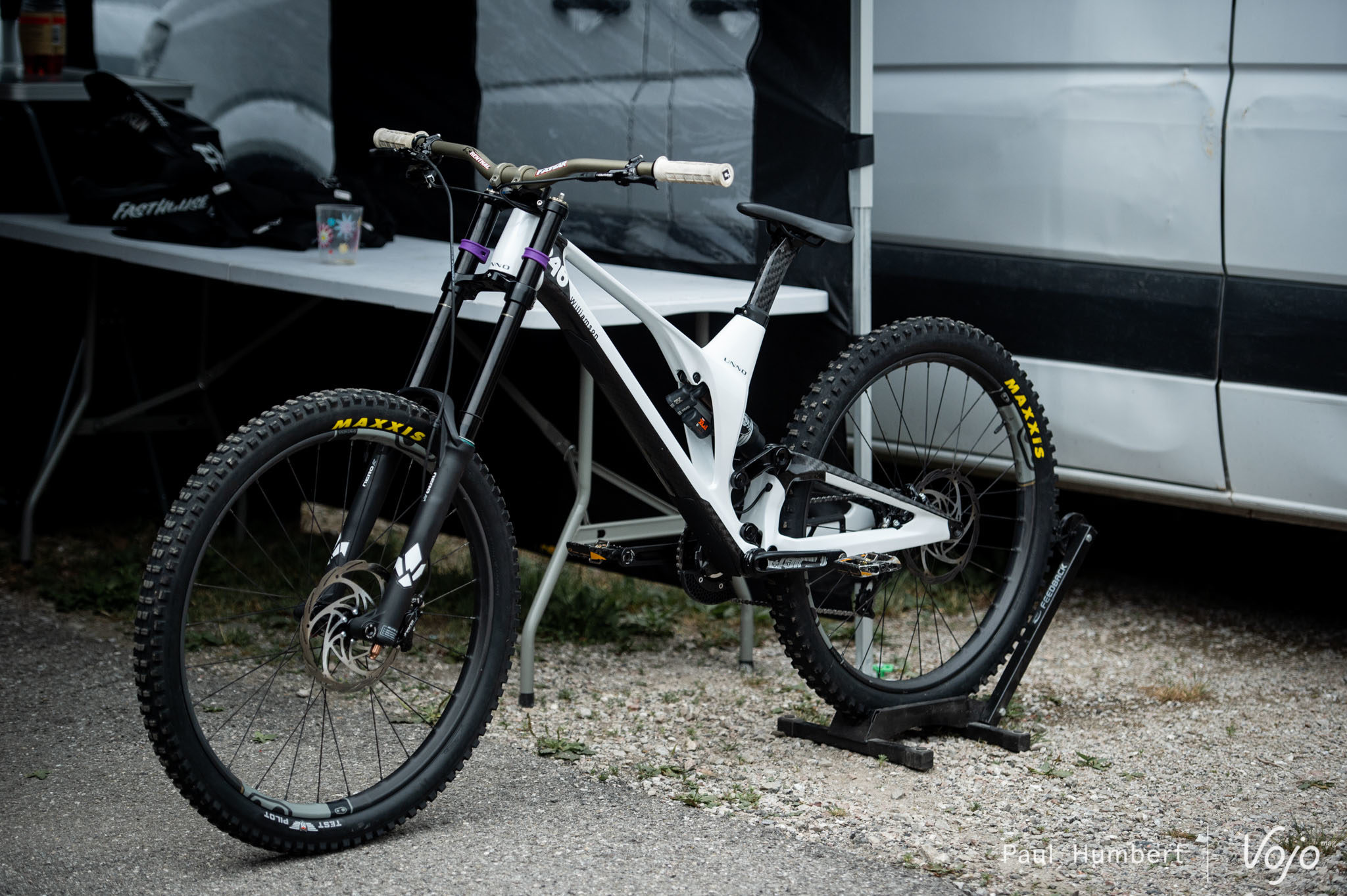 Chez Unno, là encore, rien de nouveau mais on ne peut qu’admirer le vélo de Greg Williamson. Noir et rose aux Gets, il était blanc et noir en Andorre la semaine passée.