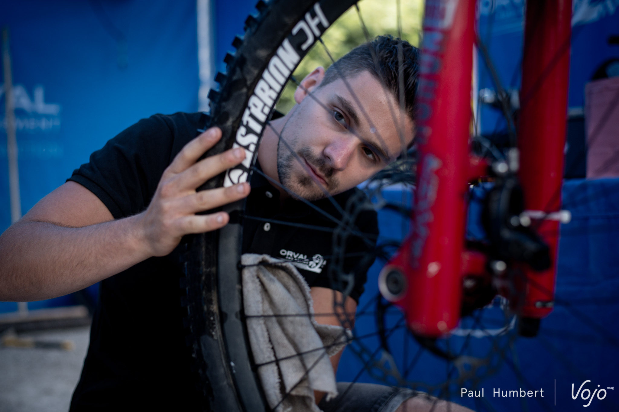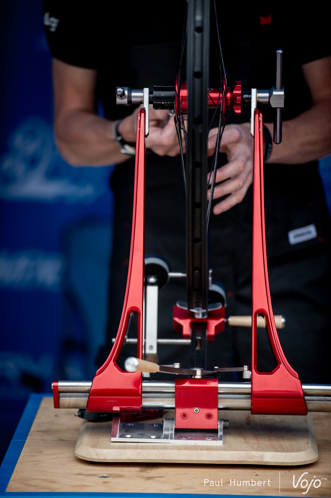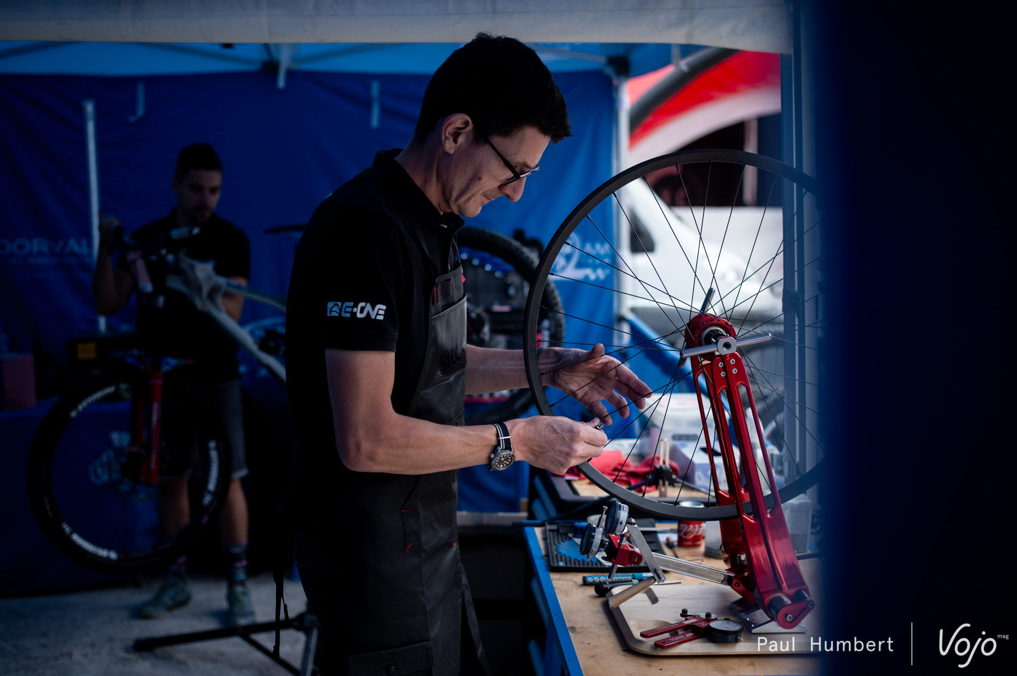 Sur le stand de l’équipe Dorval, le monteur de roue Asterion, partenaire de l’équipe, est venu prêter main forte aux mécanos le temps d’une course. On les identifies immédiatement à leur superbe pied d’atelier.