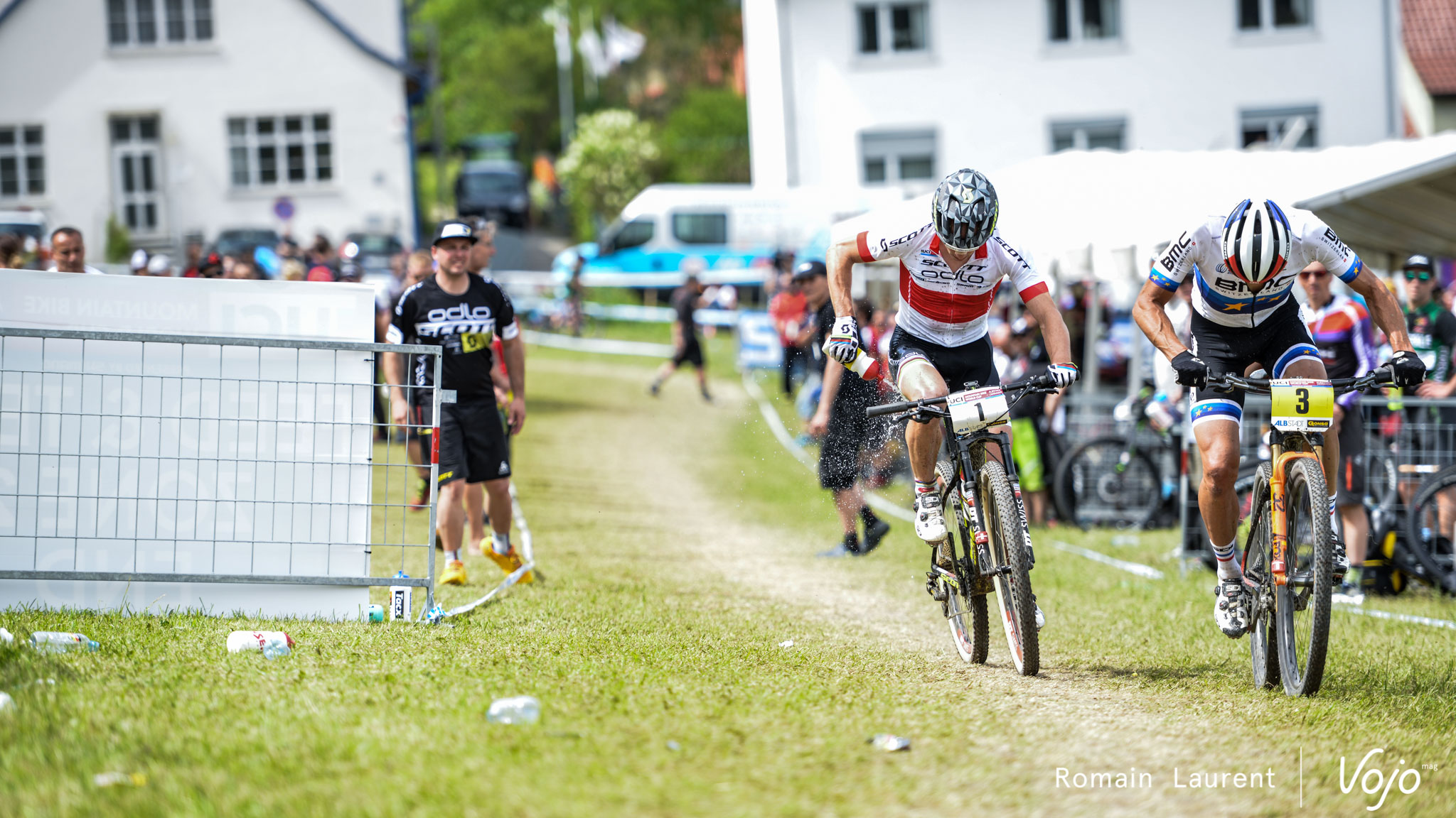 Absalon prend un peu d’avance. Dans le public et entre journalistes présents sur la ligne d’arrivée, on parie sur une victoire du Français. Mais Nino Schurter en remet une couche ! « Je l’ai vu ressurgir de nulle part. J’ai peut-être cru avoir gagné trop vite. Cela s’est joué à 20 centimètres, même pas. Bien sûr j’aurais préféré gagner. Mais une 2e place comme ça, ça reste un moment très particulier. »
