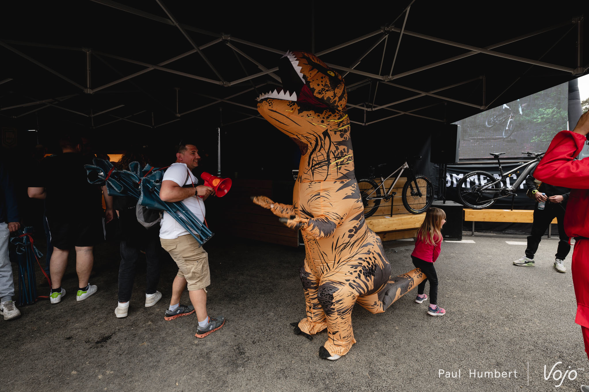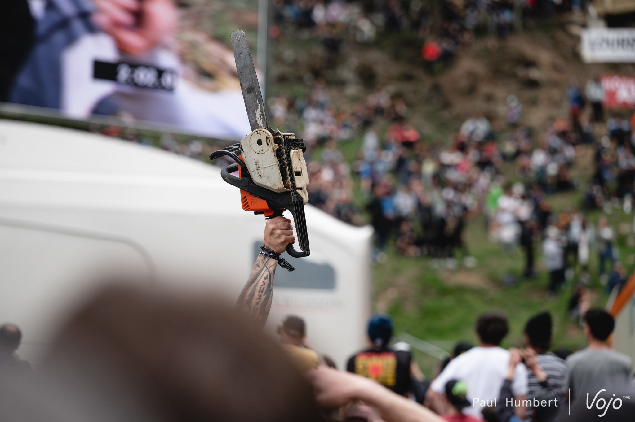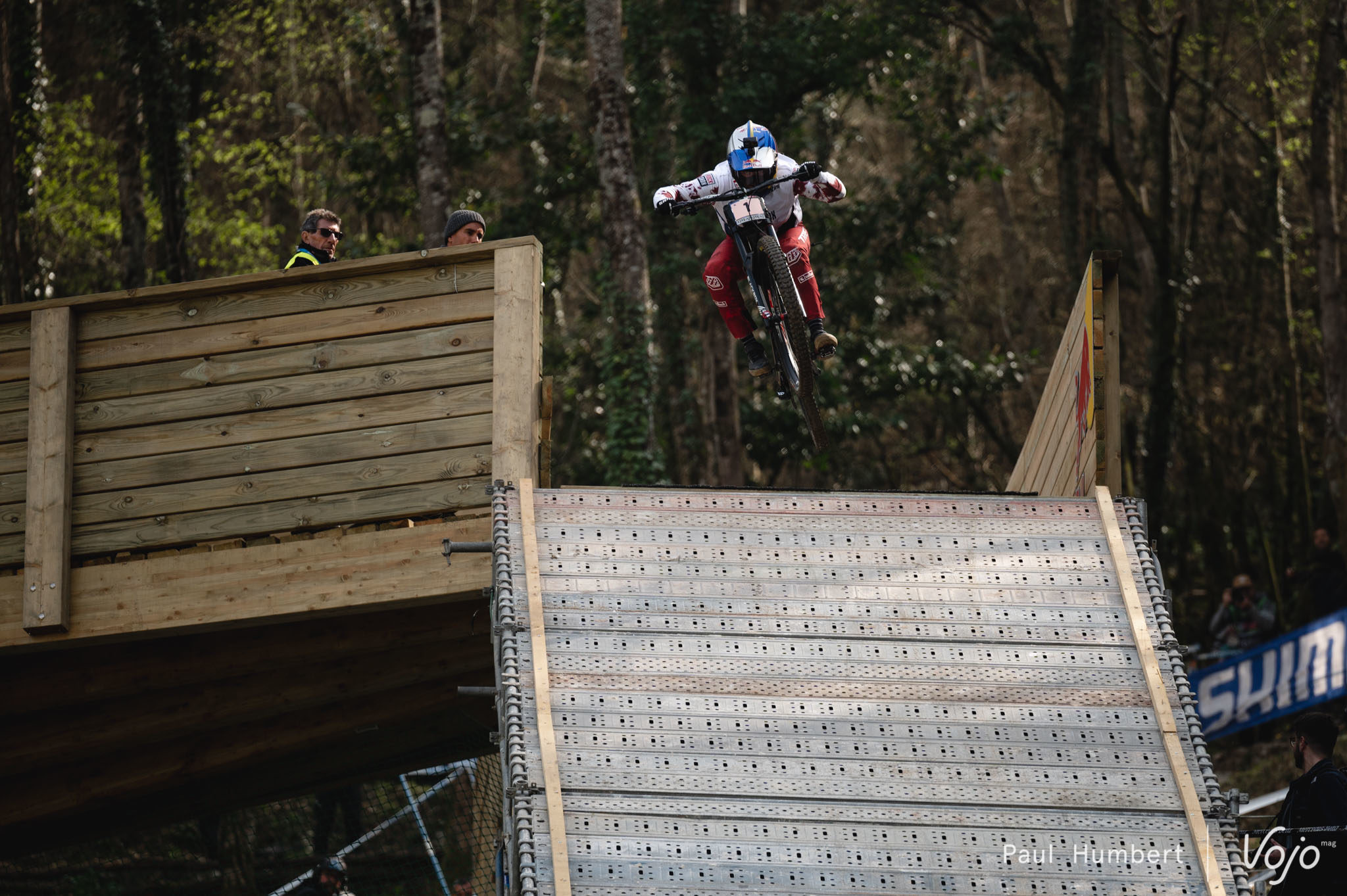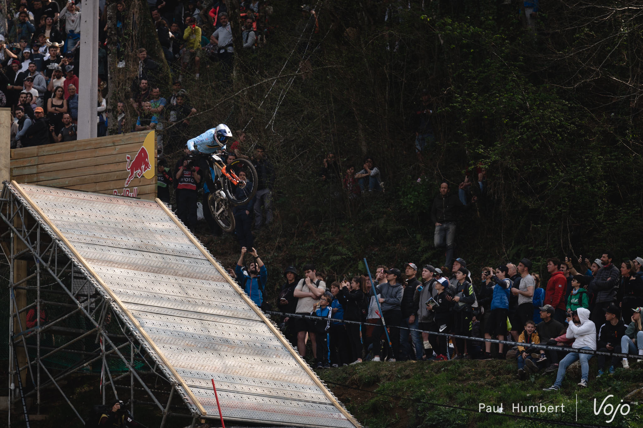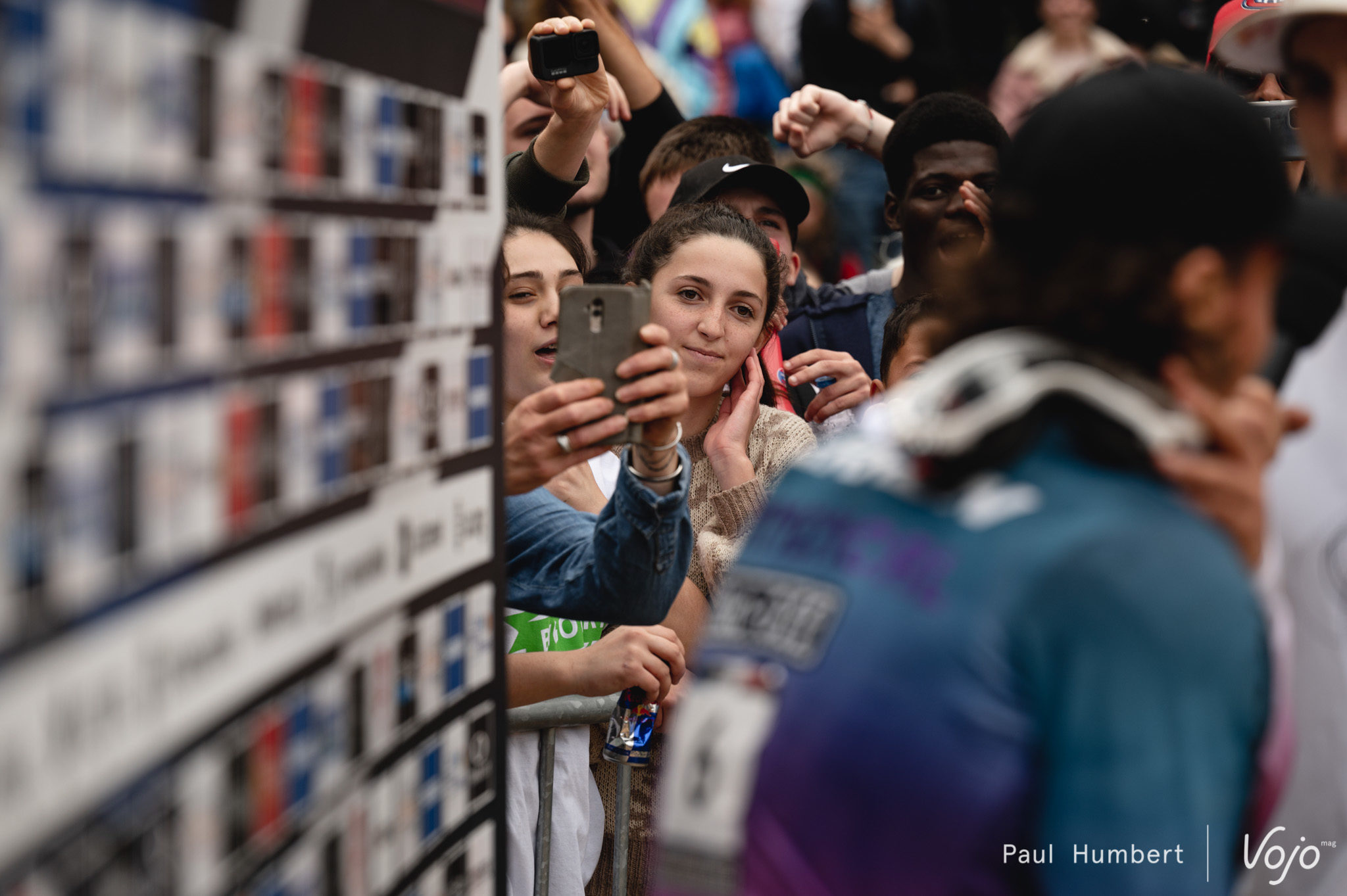 Petit moment suspendu au milieu de la finale : nous retrouvons Loris Vergier, seul au pied du funiculaire, à regarder au loin l’écran géant. Il chutera en finale mais son engagement le plaçait, d’après notre analyse, sur le podium si il évitait la faute.